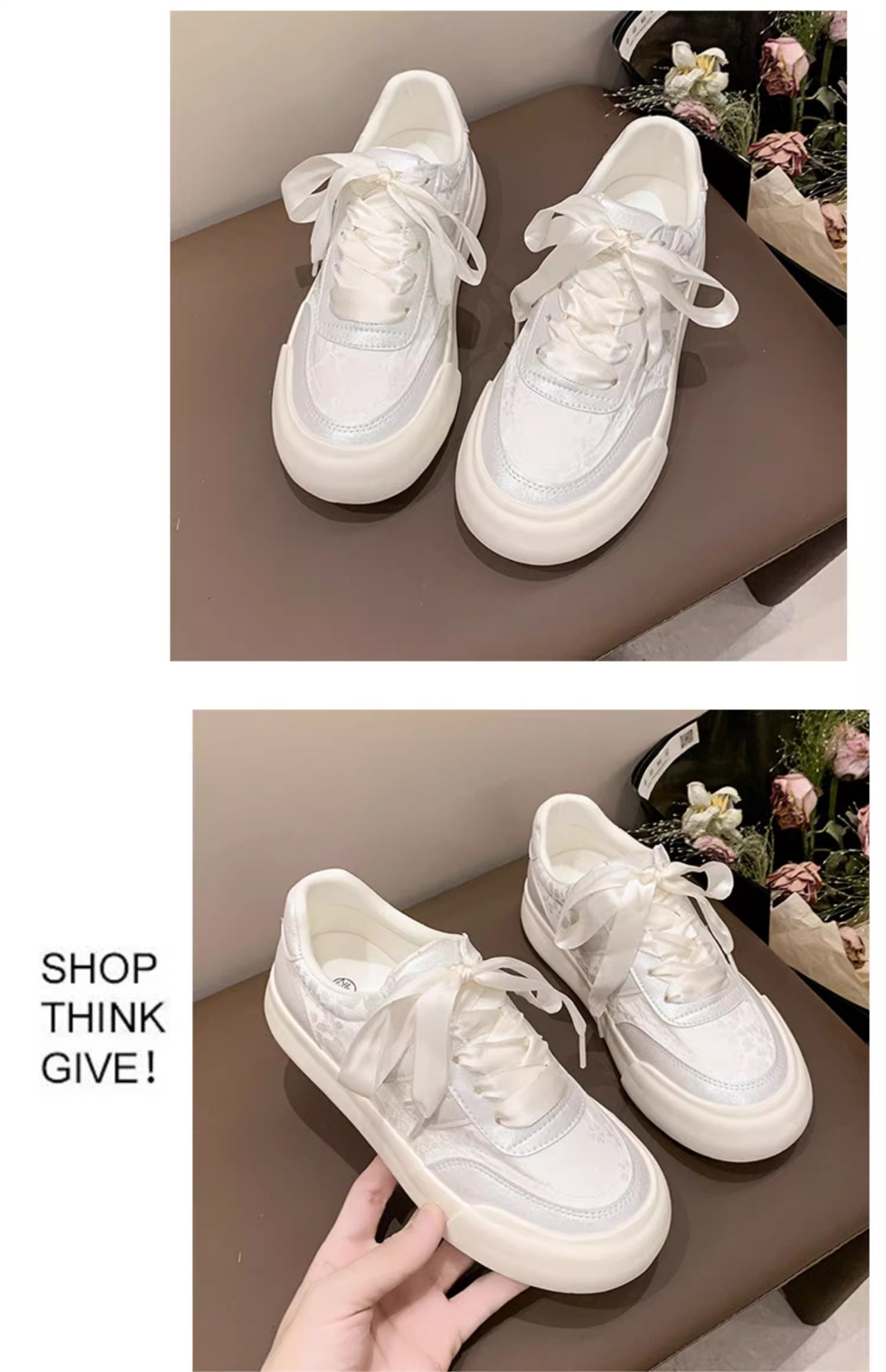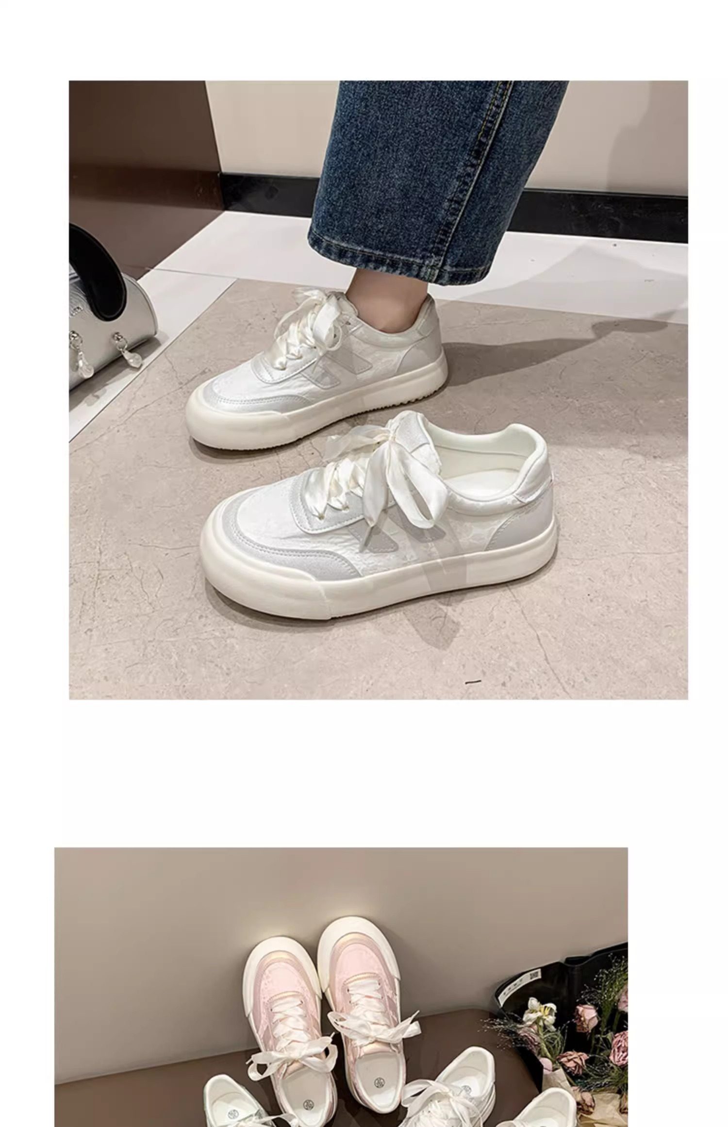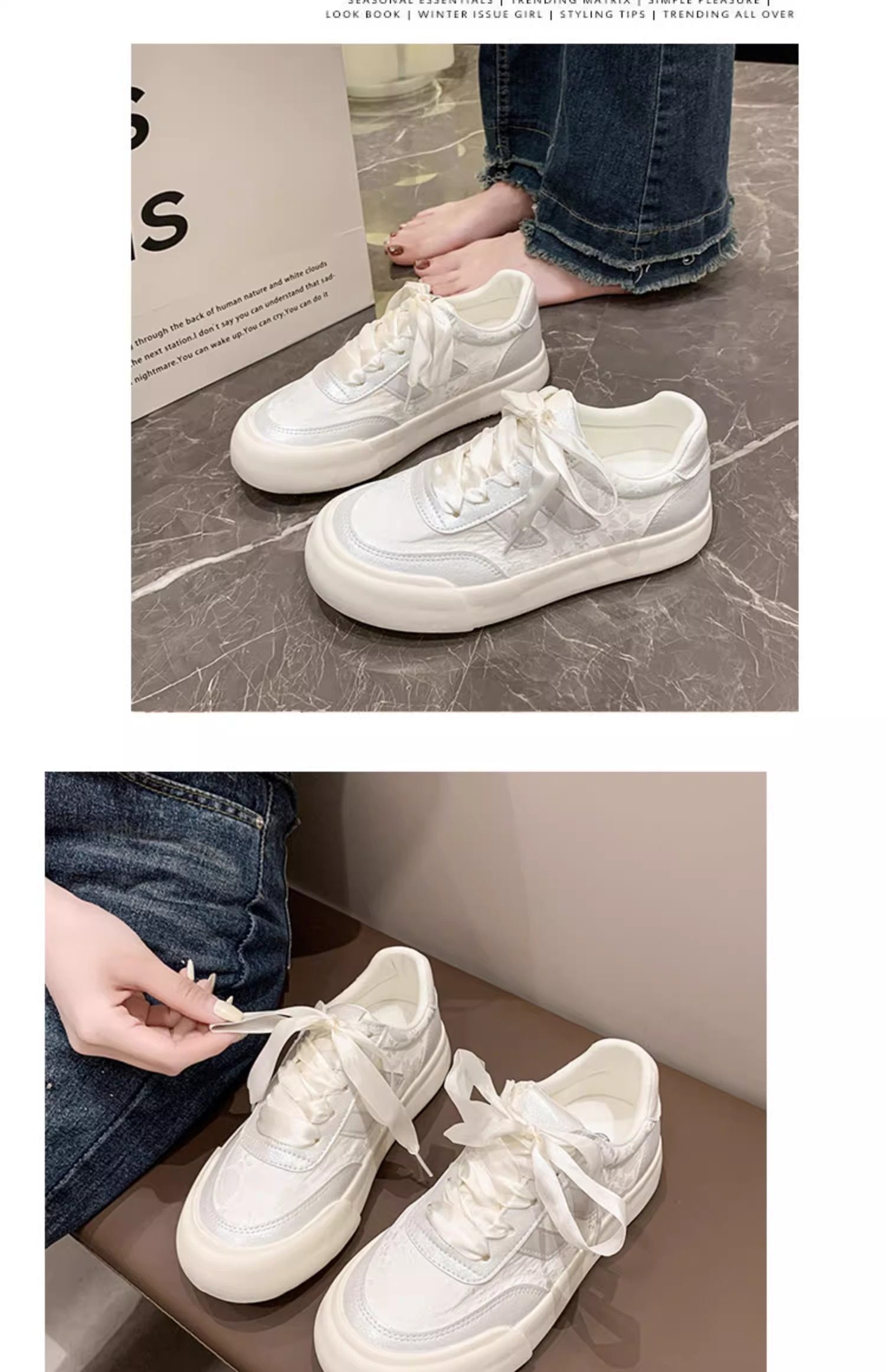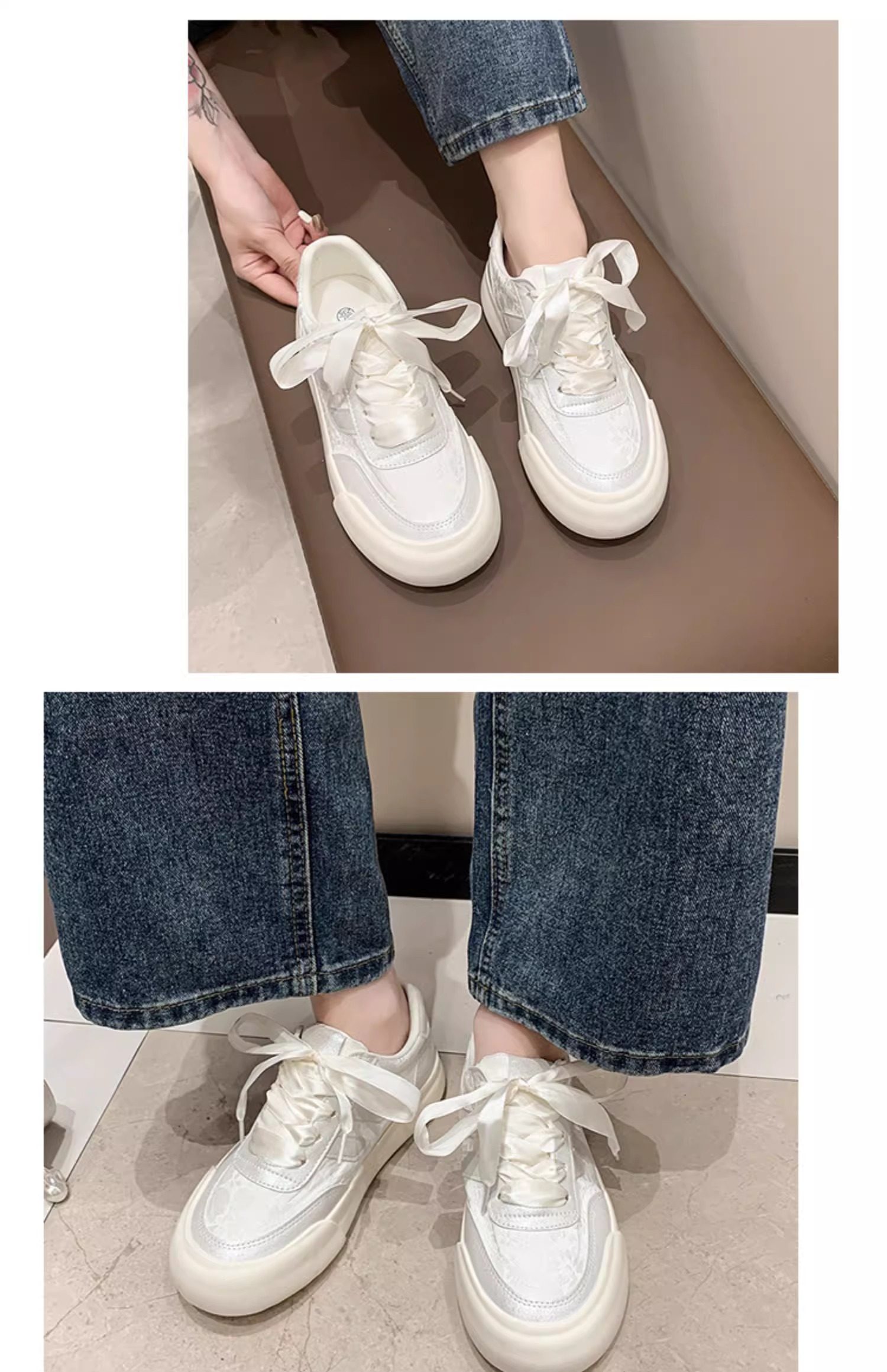 Zapatos blancos para mujer 2025 primavera y otoño nuevos zapatos populares de suela gruesa con faldas, zapatillas casuales versátiles, zapatos de mujer de moda