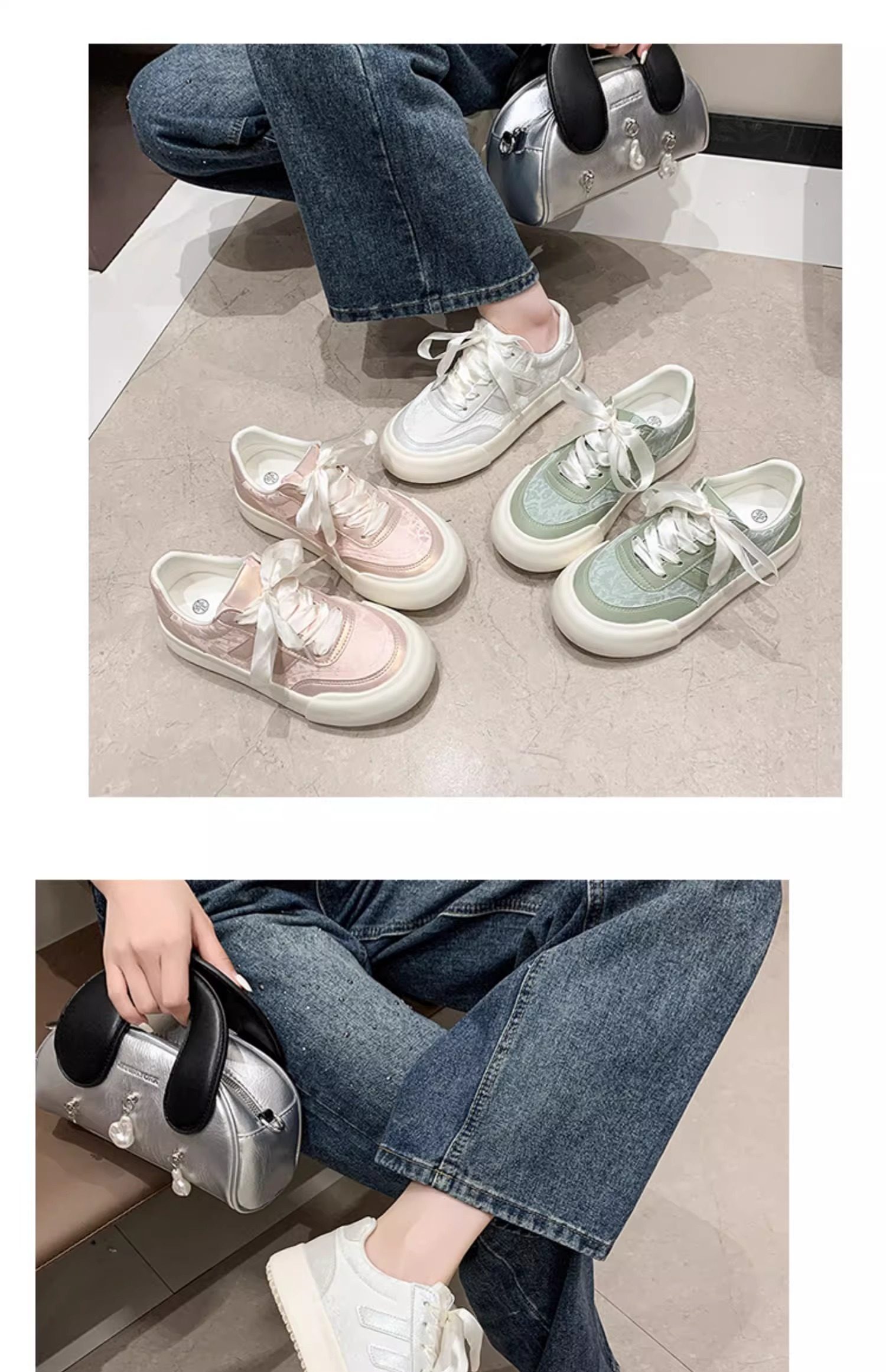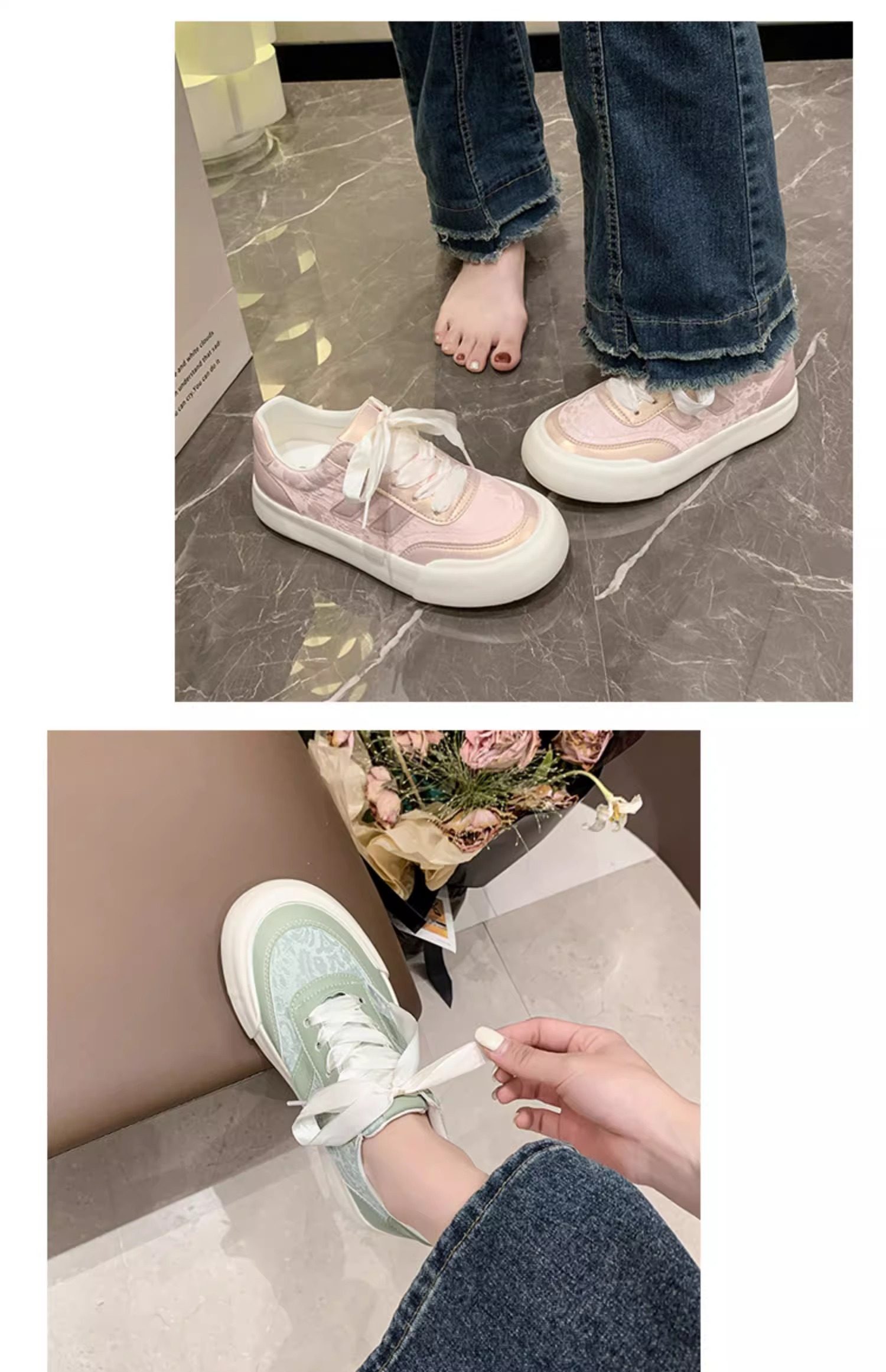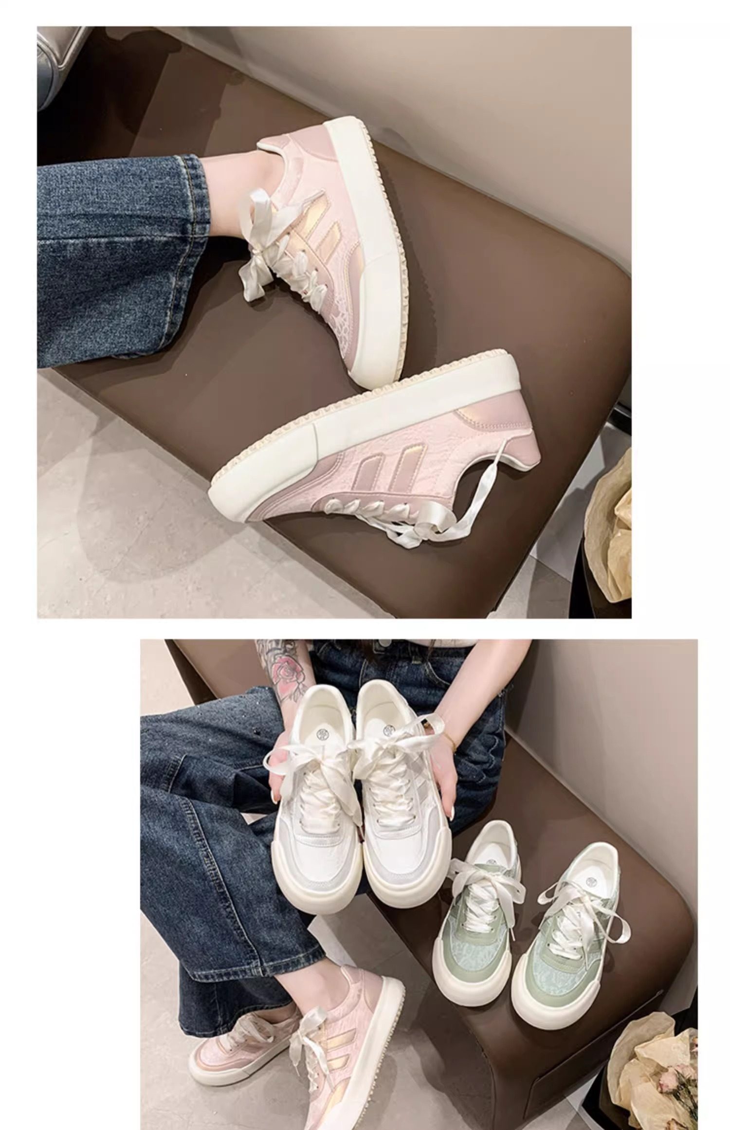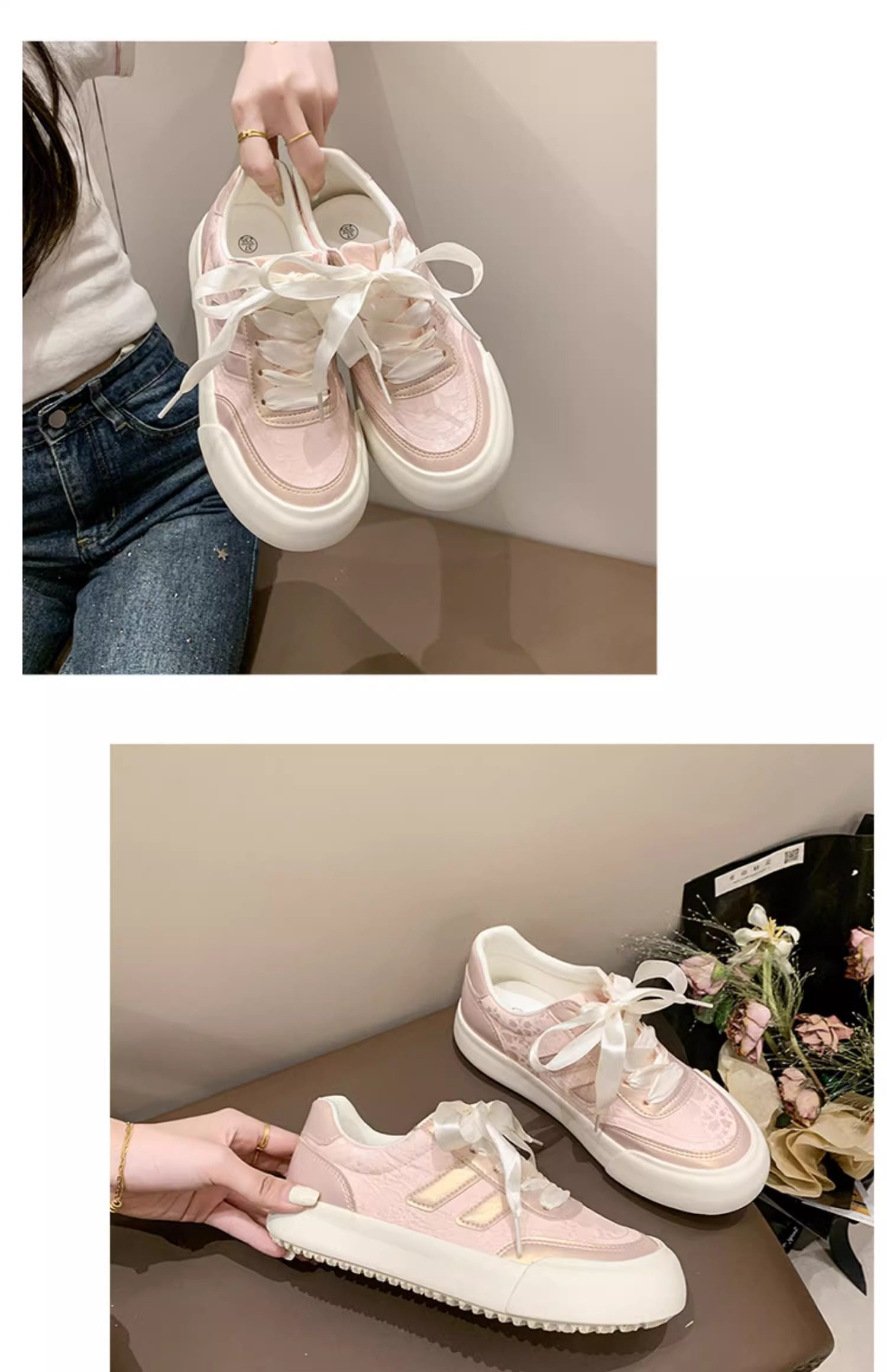 Zapatos blancos para mujer 2025 primavera y otoño nuevos zapatos populares de suela gruesa con faldas, zapatillas casuales versátiles, zapatos de mujer de moda