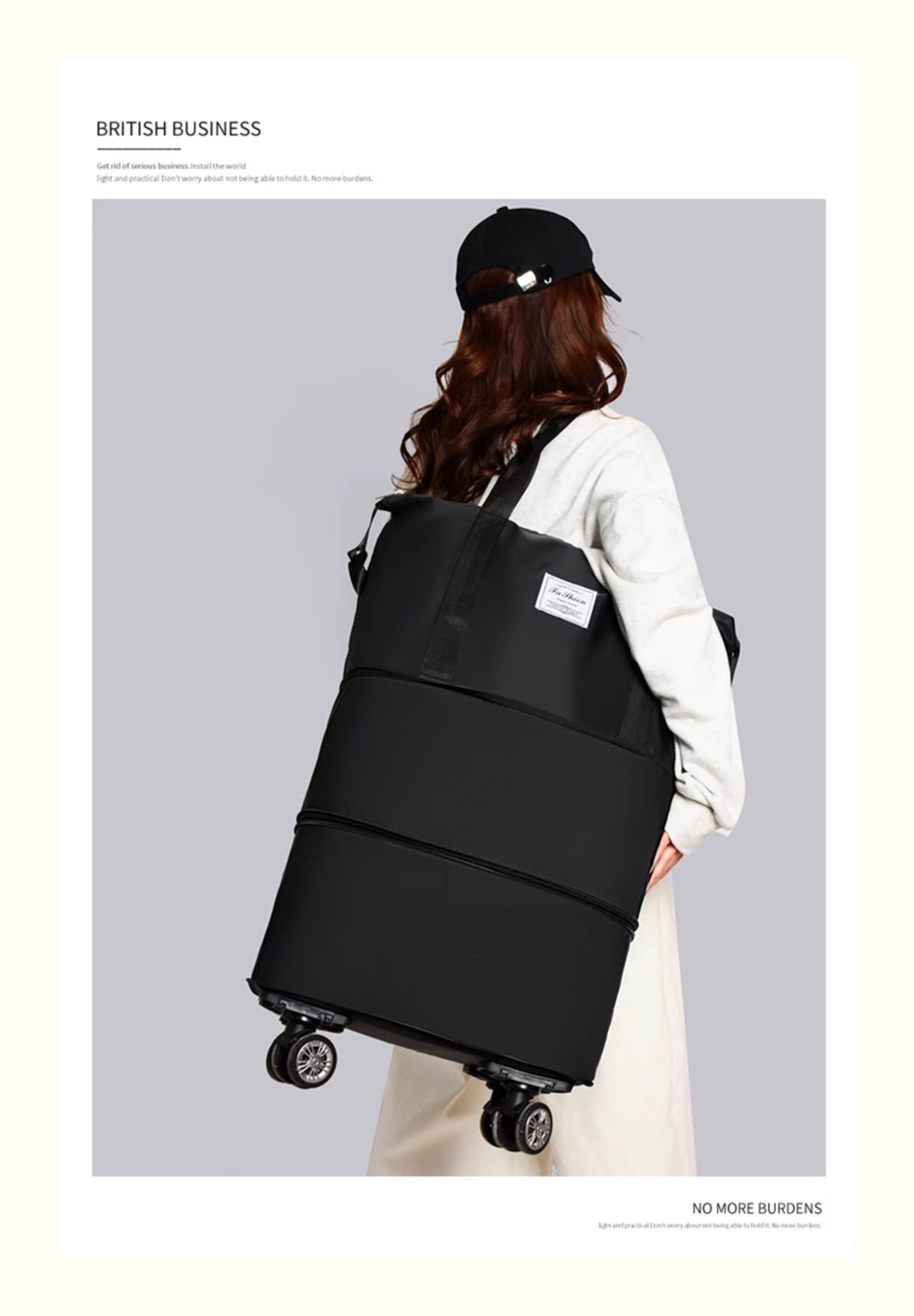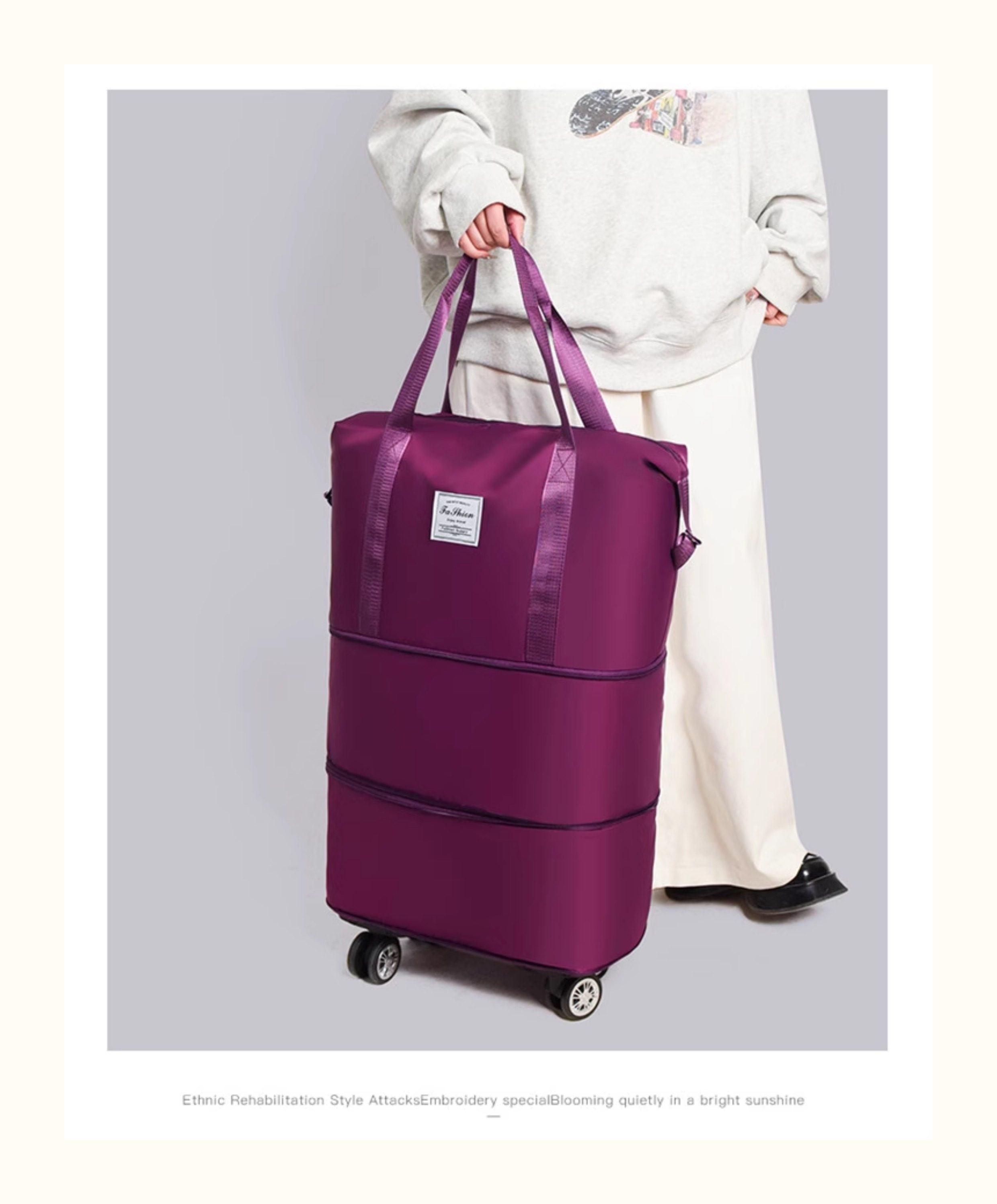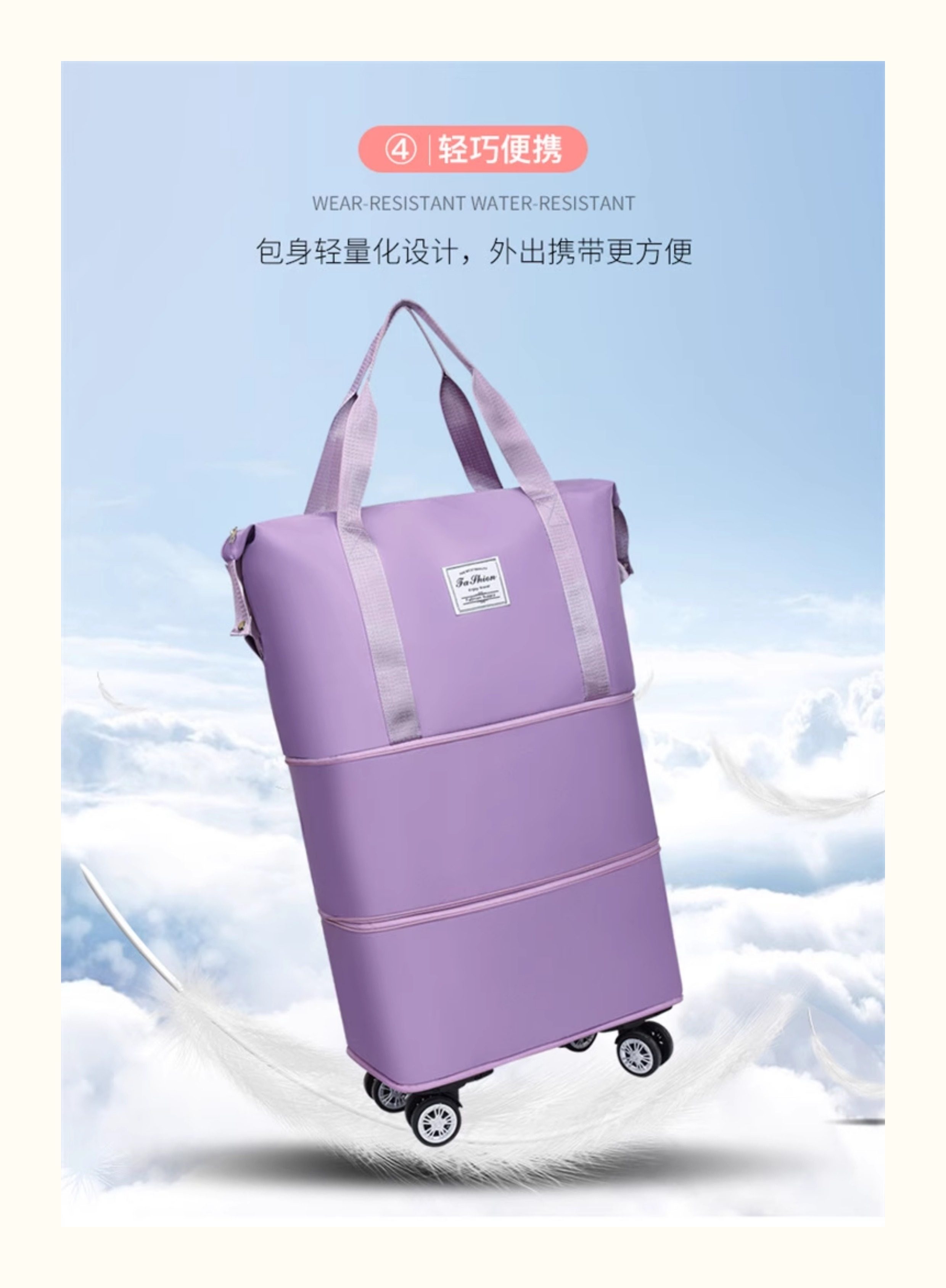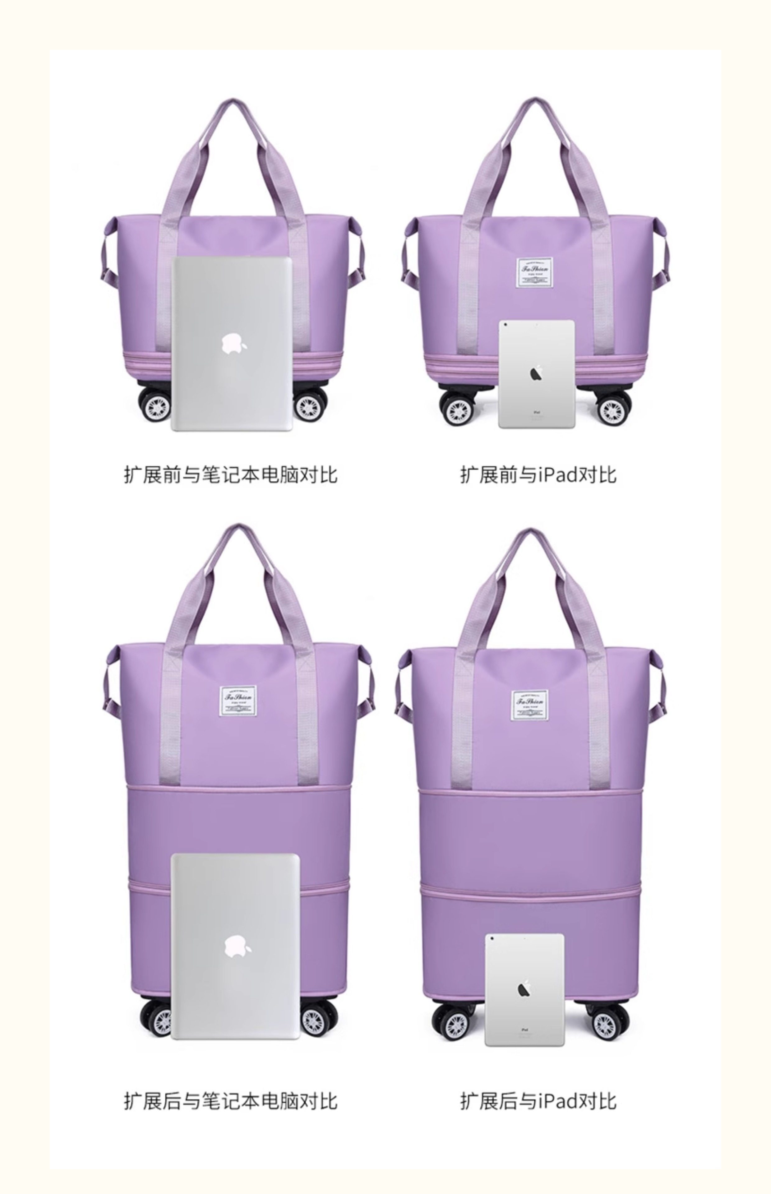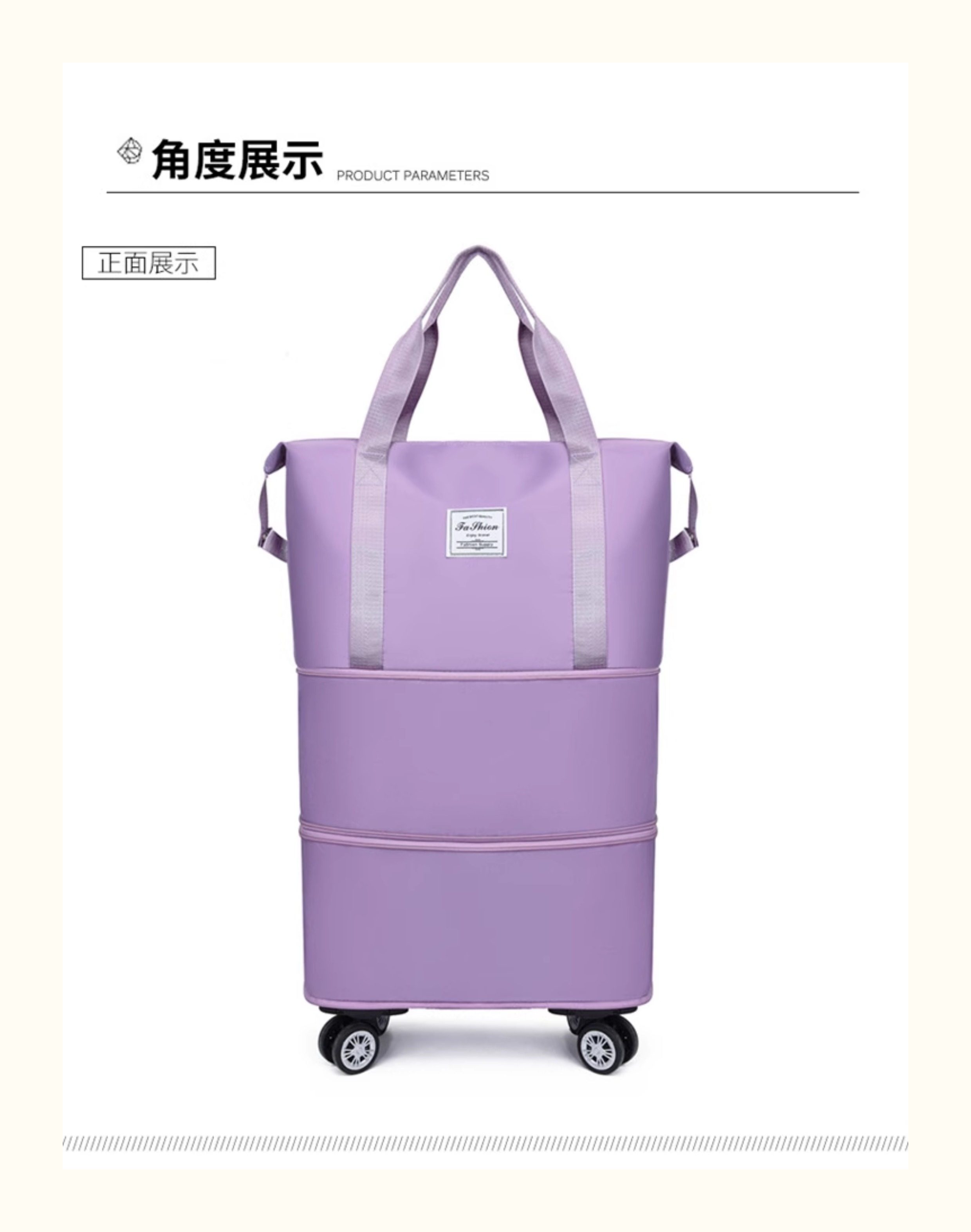 Large-Capacity Foldable Travel Bag, Wheeled Tote Bag, Moving and Maternity Bag, Business Trip and Travel Bag, Can Be Attached to a Trolley, Storage Bag