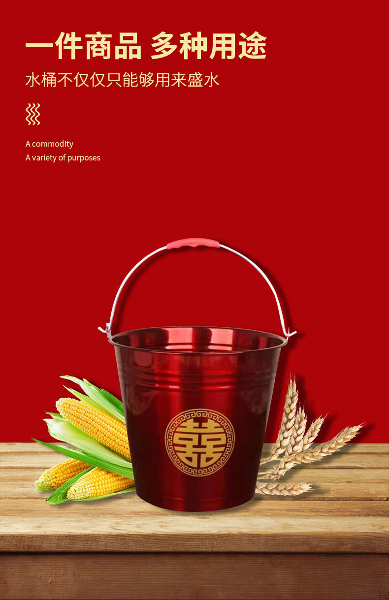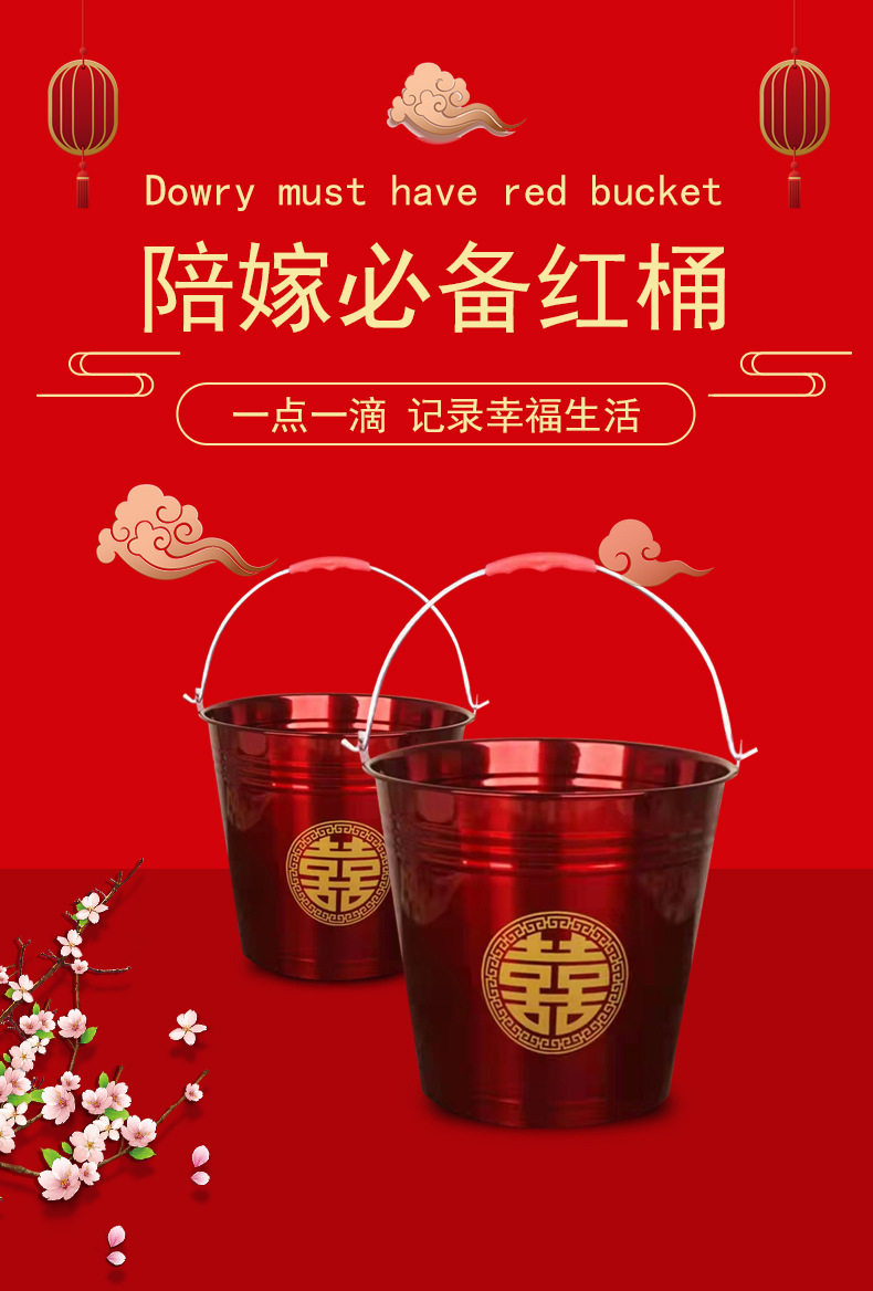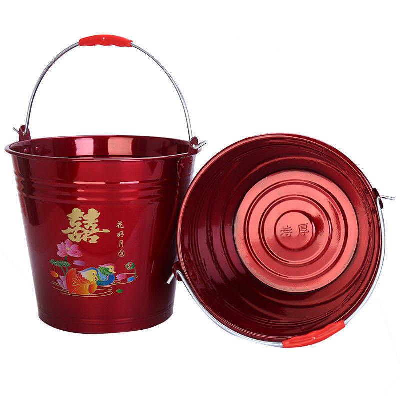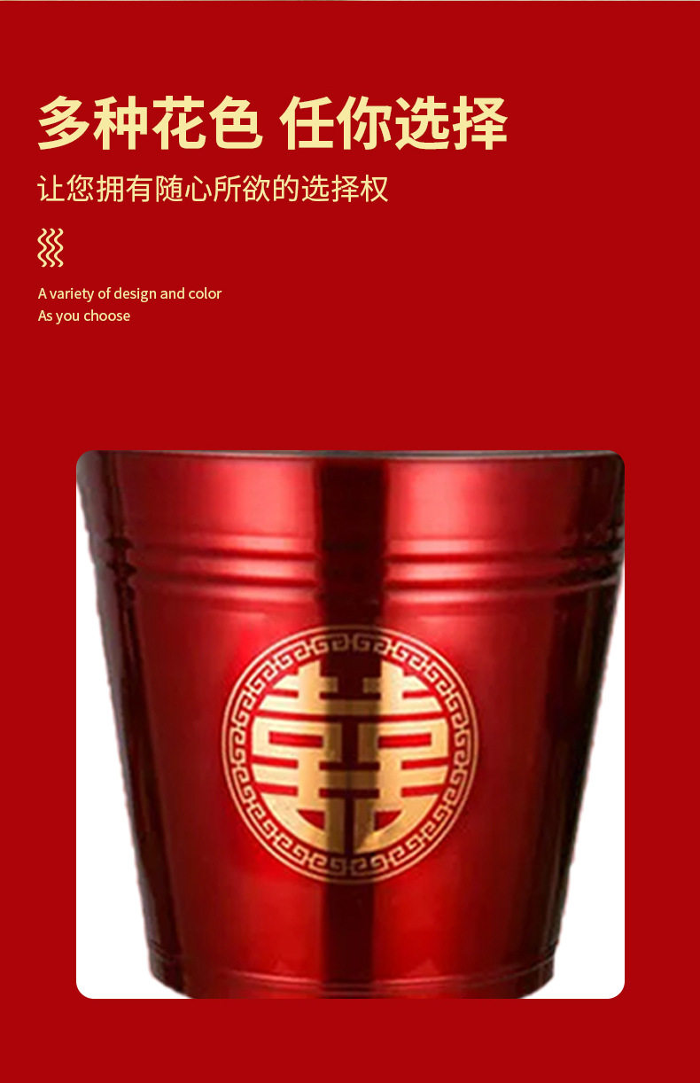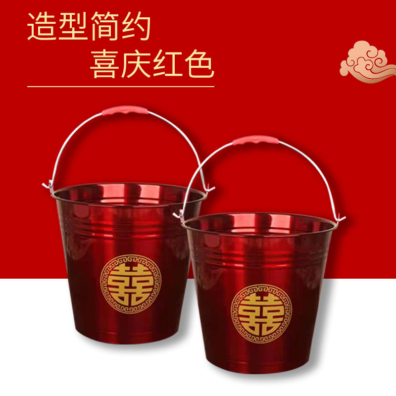 不锈钢喜桶结婚子孙桶一对新娘陪嫁用品红色水桶婚庆红桶桶子