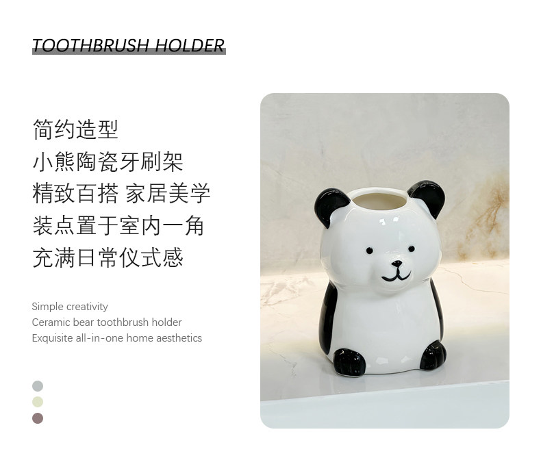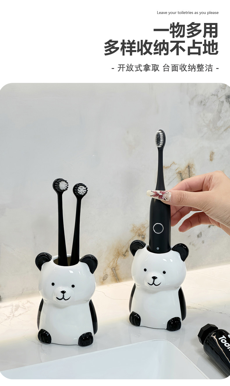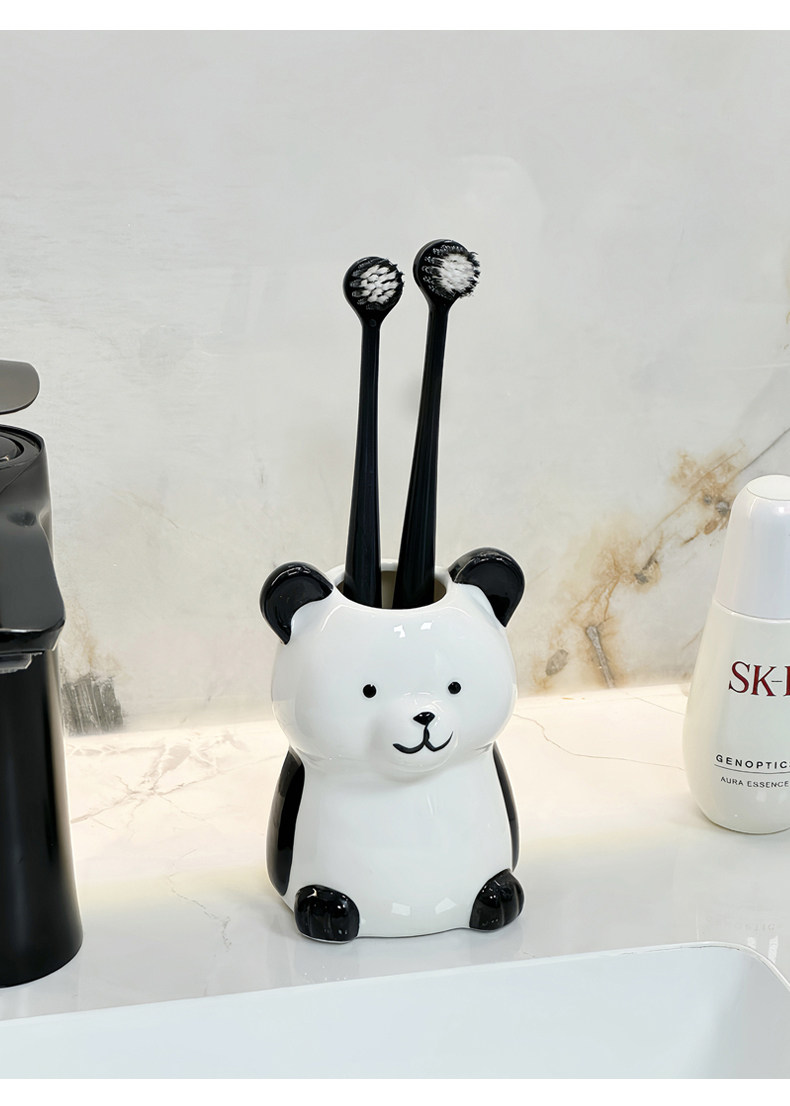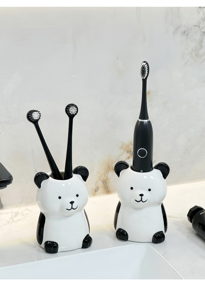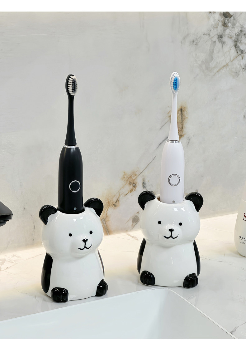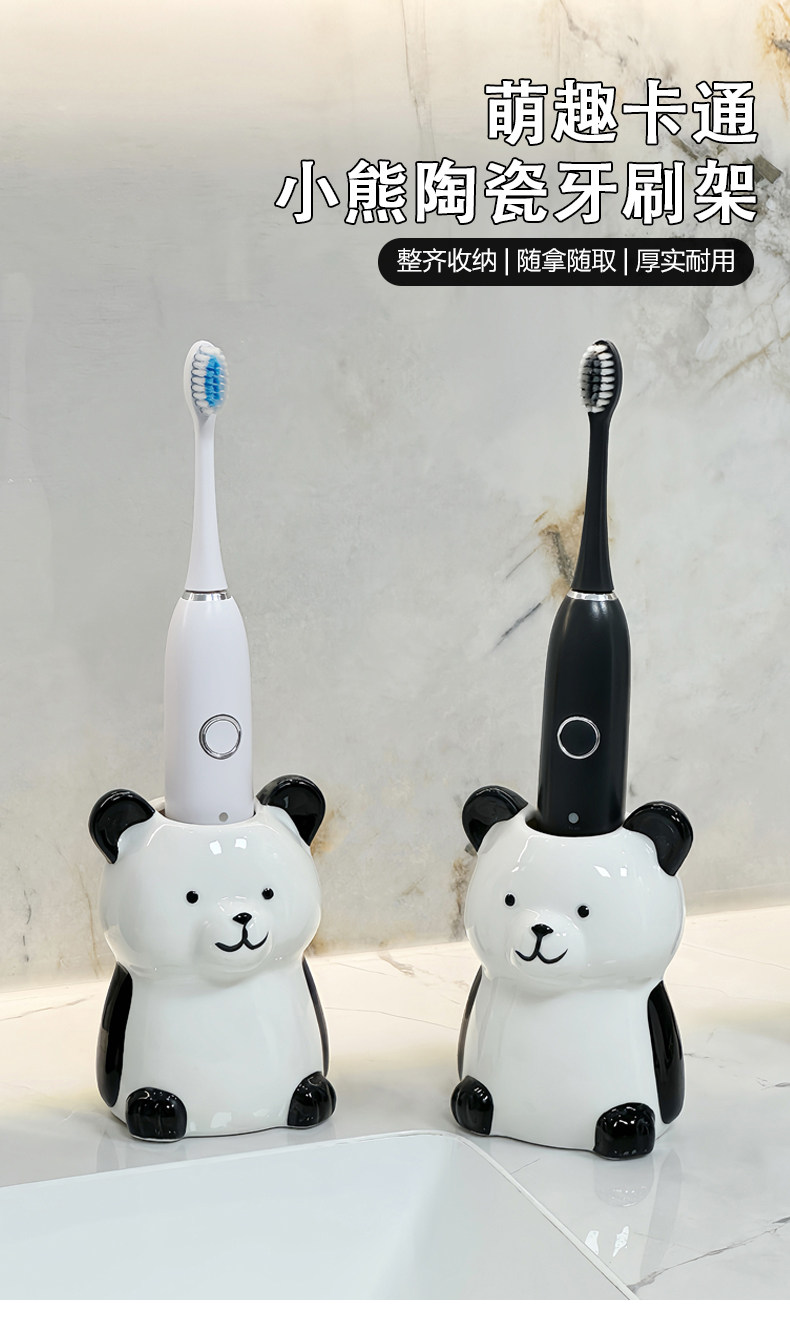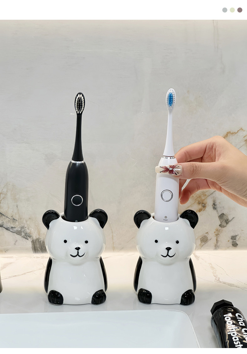 Creative Bear Toothbrush Holder Electric Toothbrush Storage Rack Bathroom Household Couple Toothbrush Organizer Ceramic Base