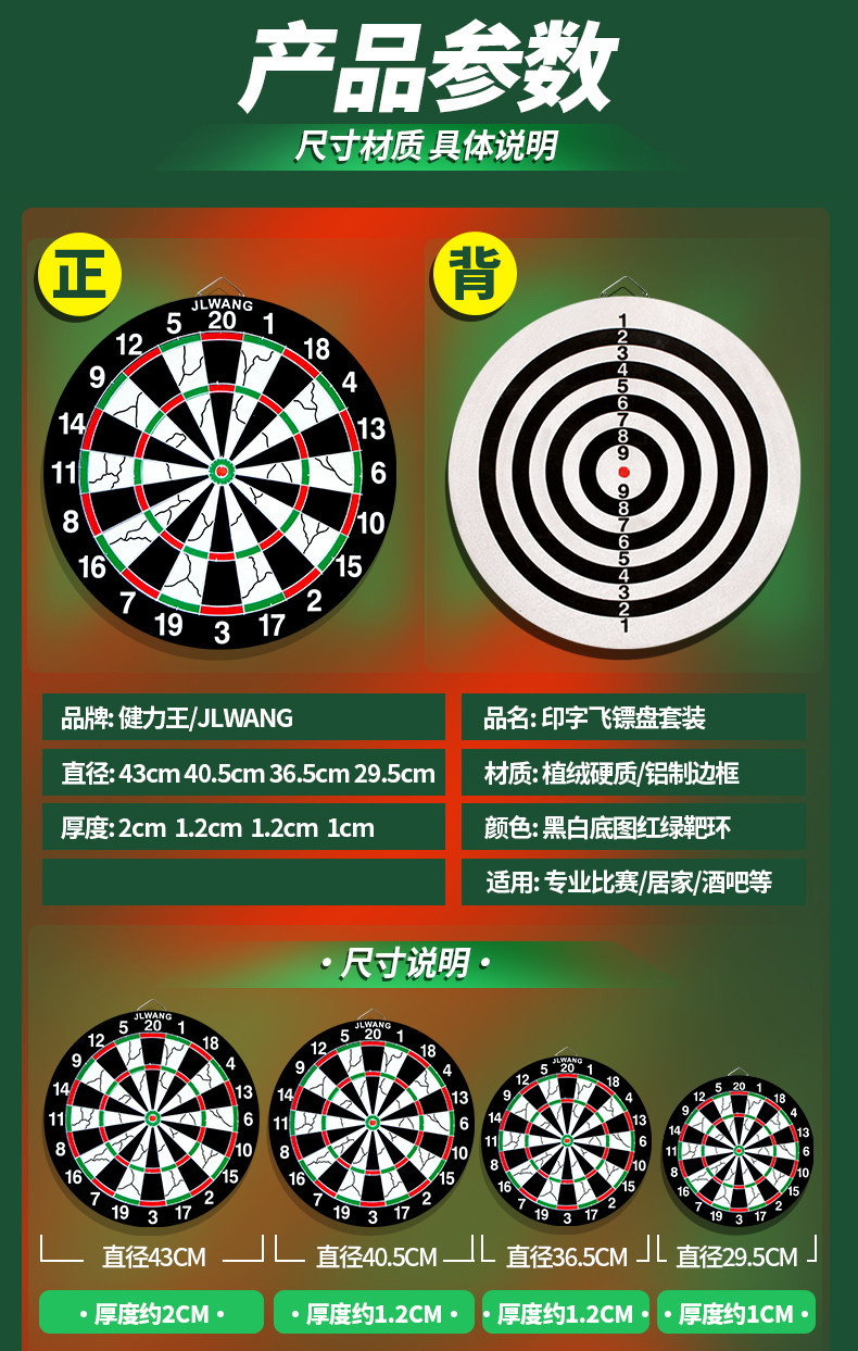 健力王飞镖盘室内家用靶子成人玩具飞镖靶双面标靶盘练习娱乐耐打