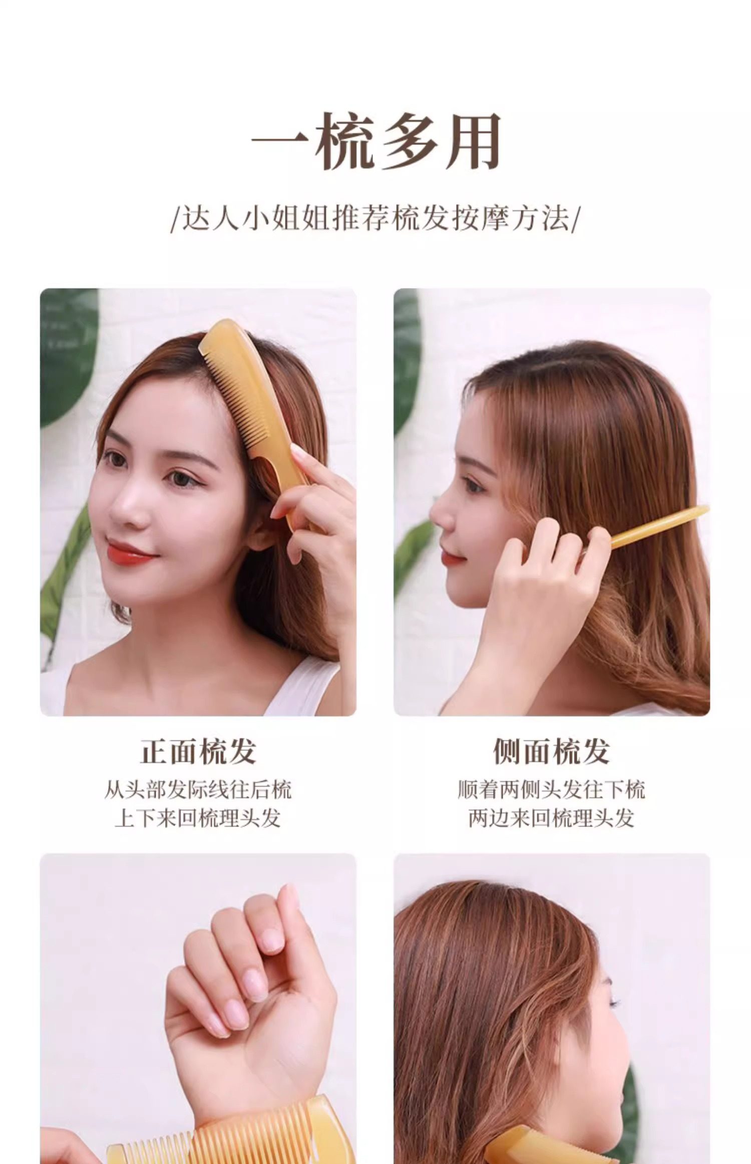 Natural Old Ox Horn Comb Official Flagship Store Genuine Product for Women with Long Hair, Special for Home Use, Anti-Static, Horn Massage