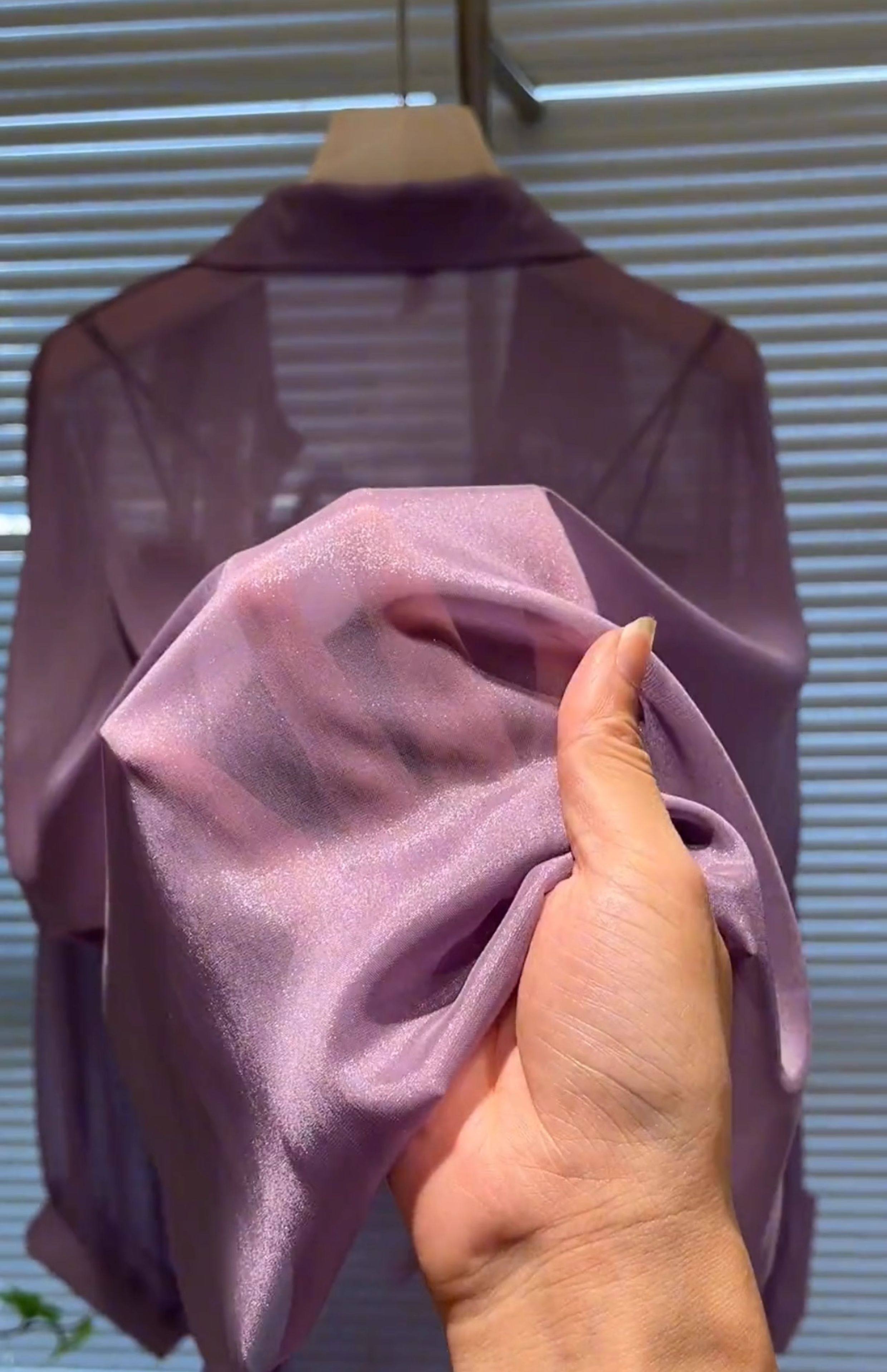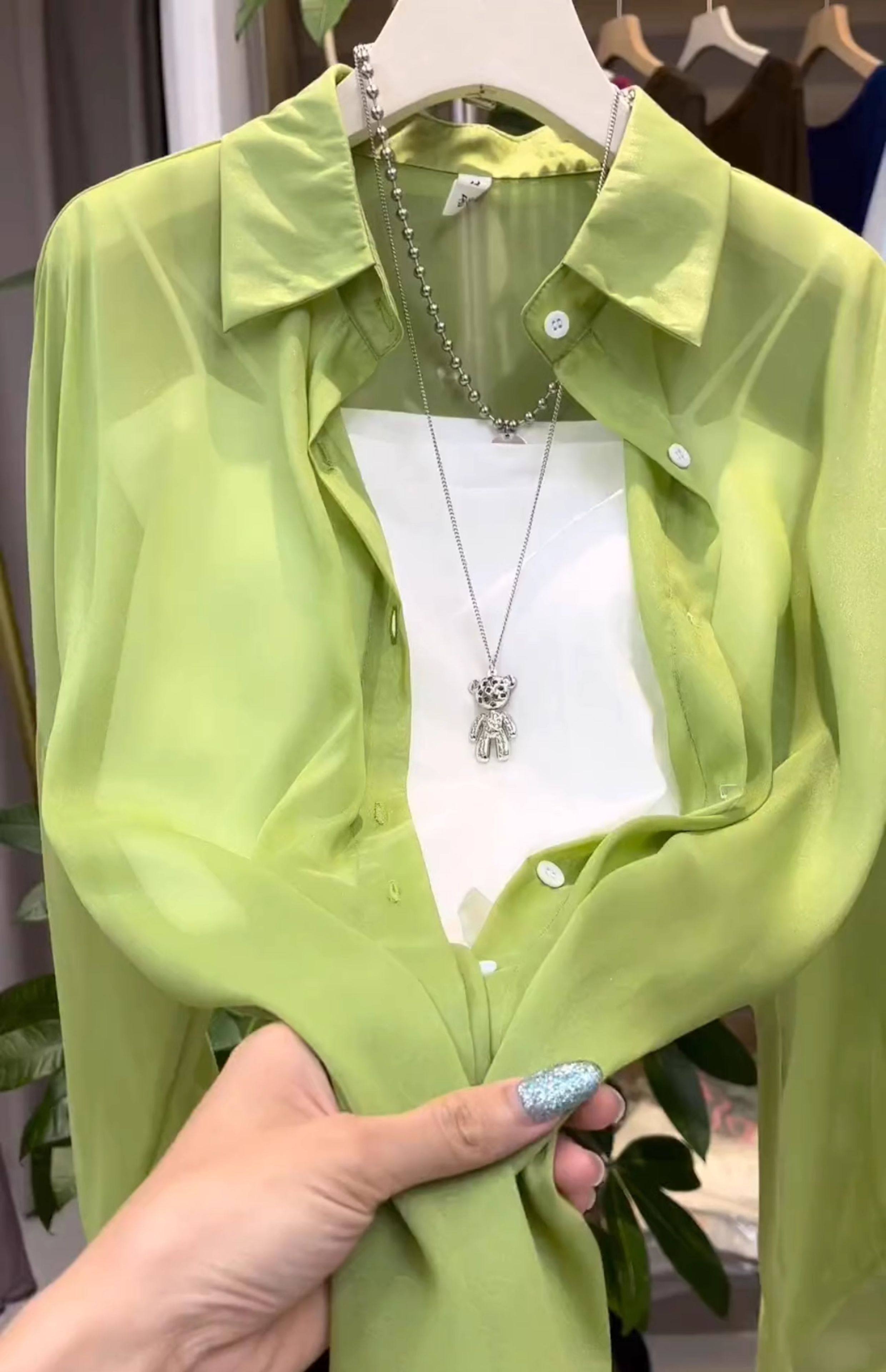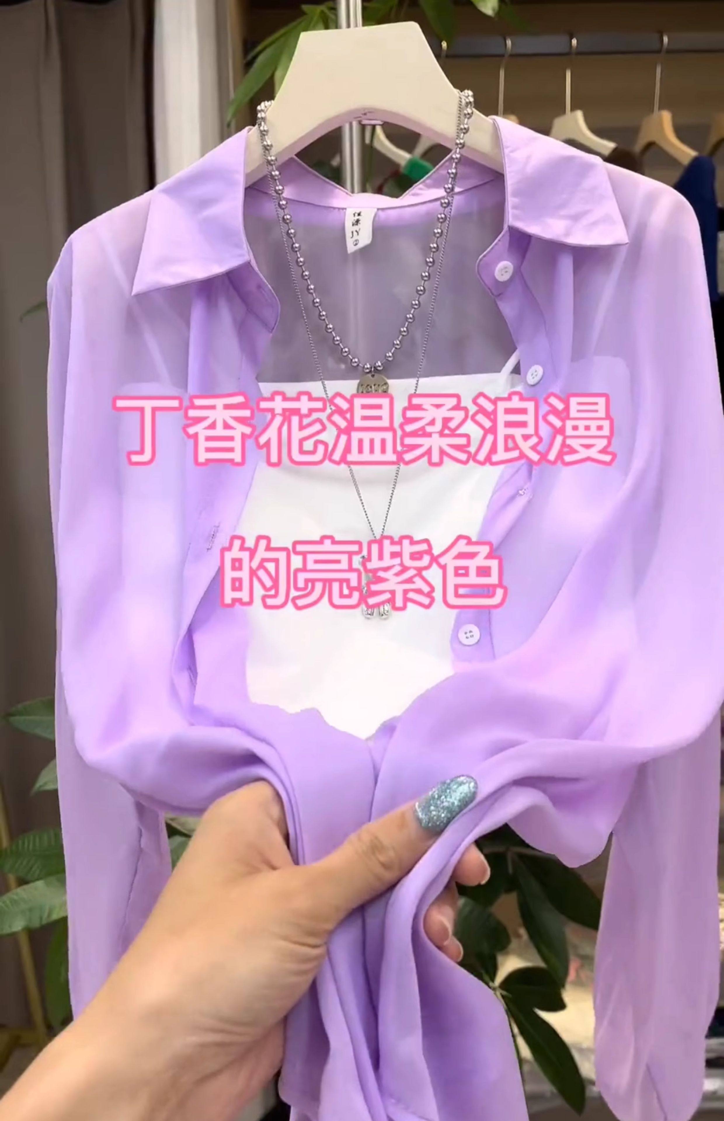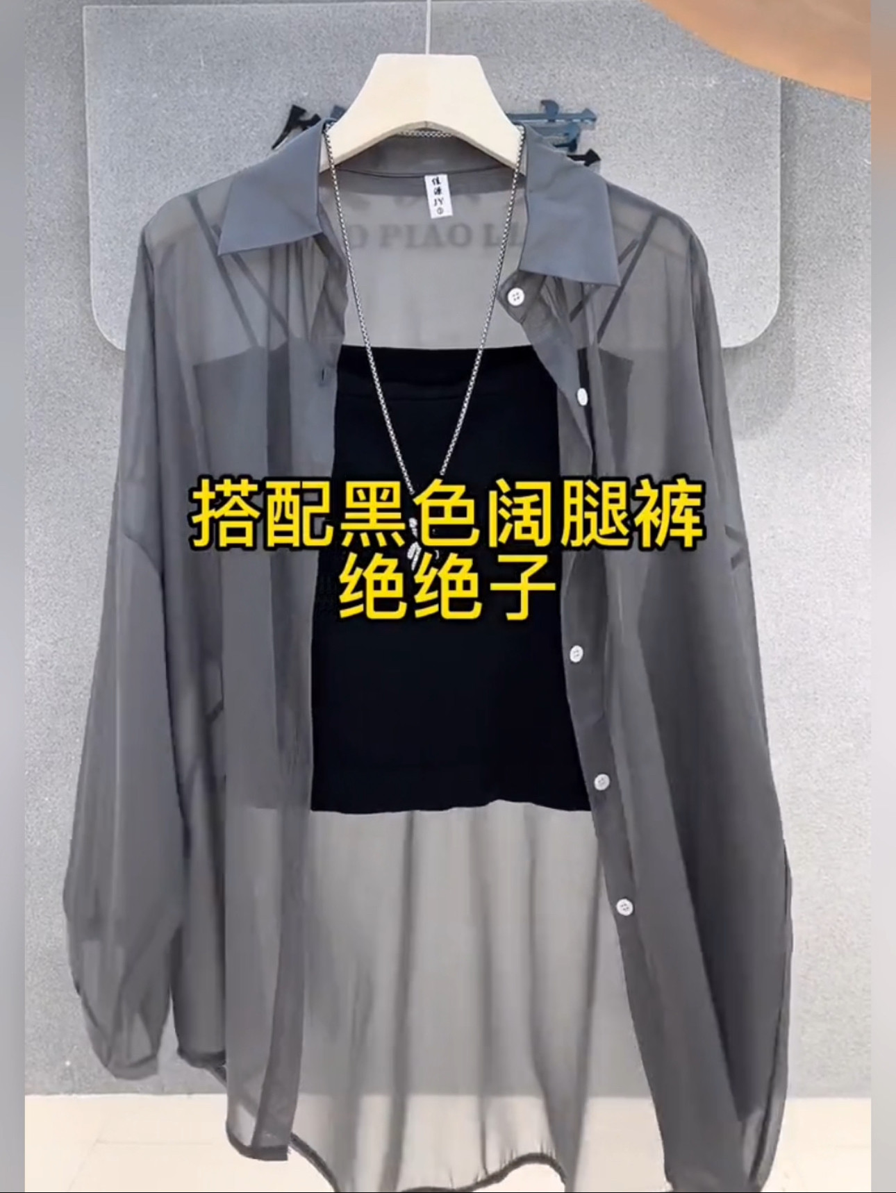 珠光砂凉感冰丝薄纱防晒衬衫女设计感洋气百搭外套纯色开衫上衣夏