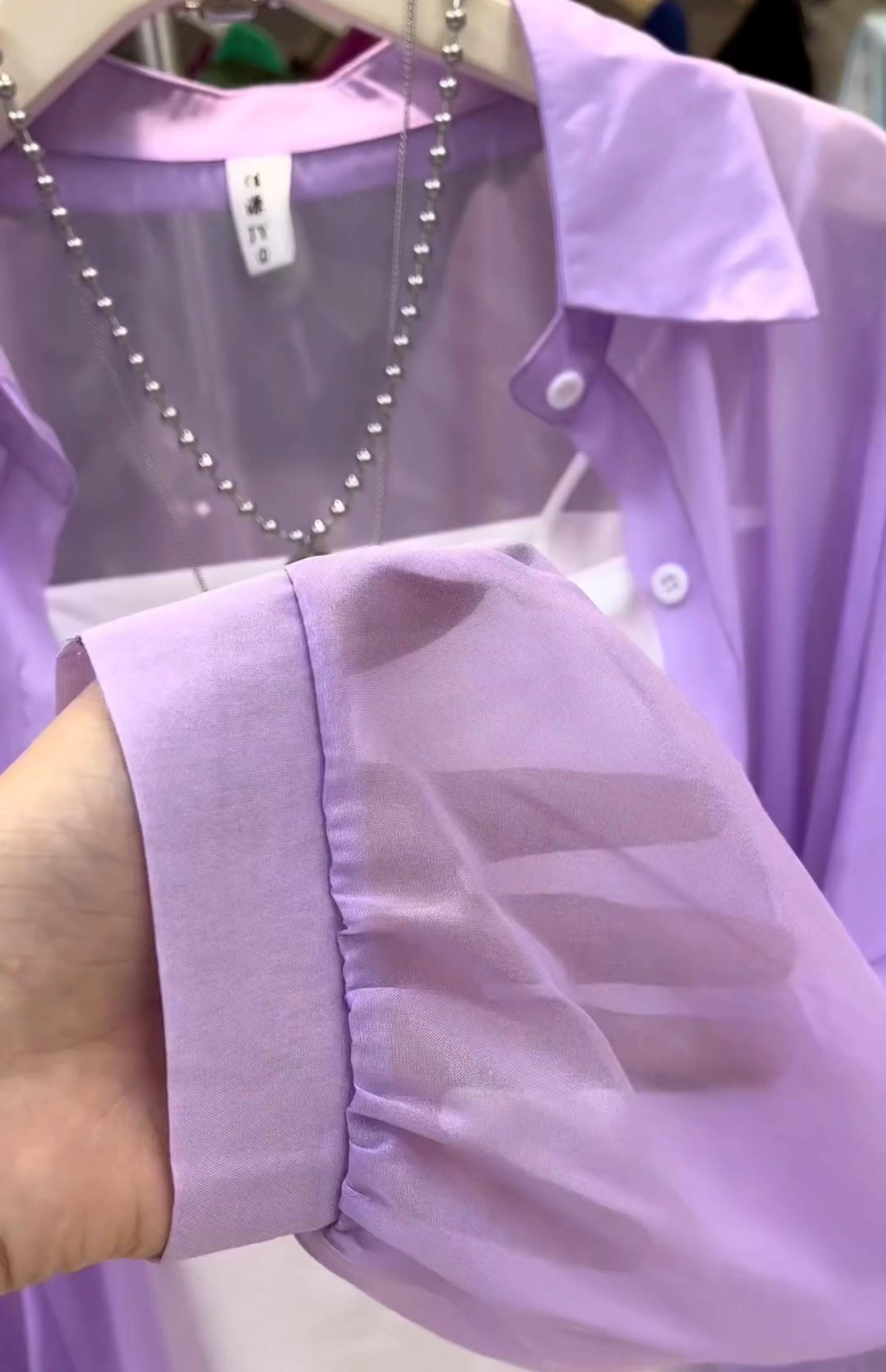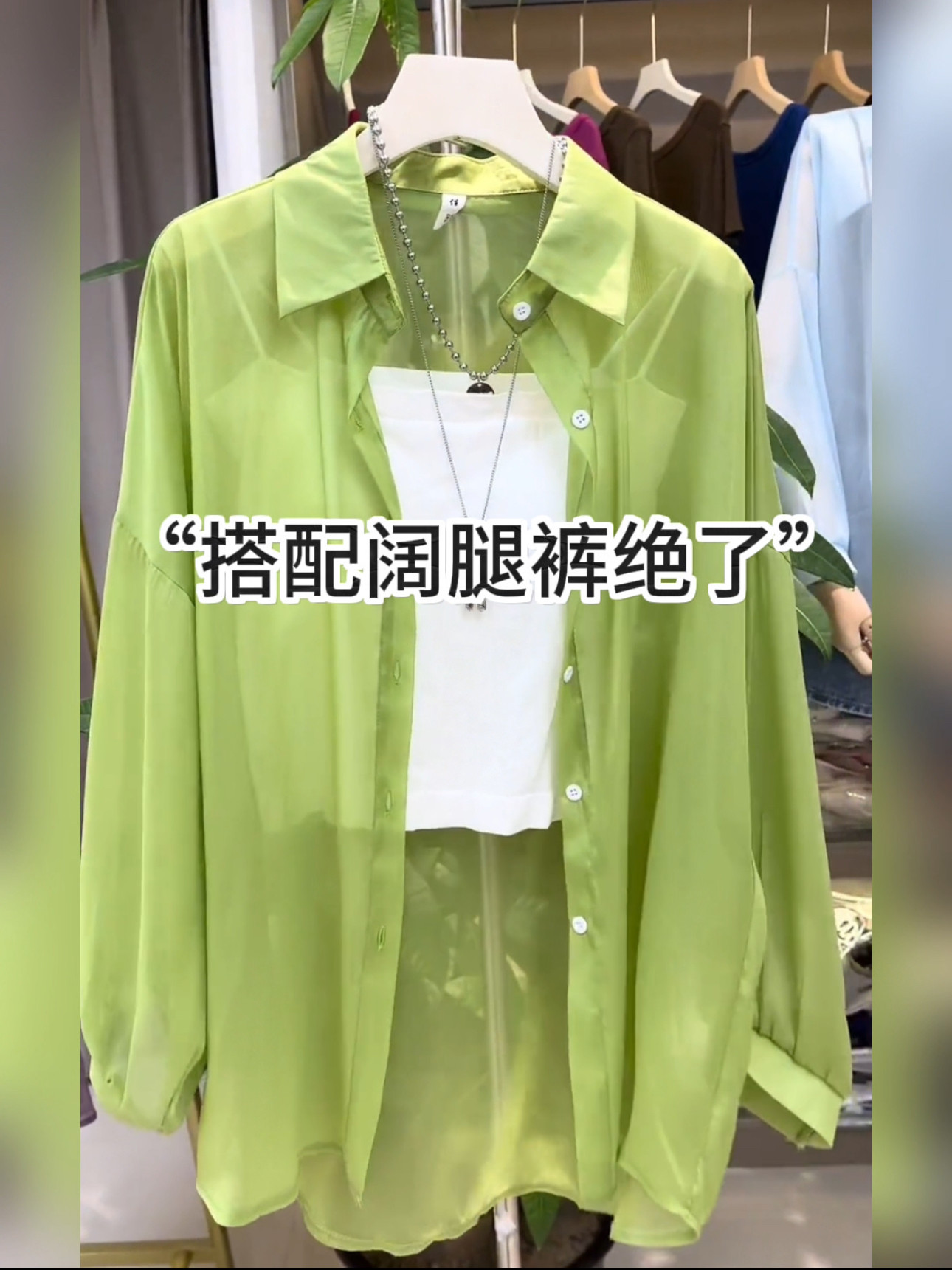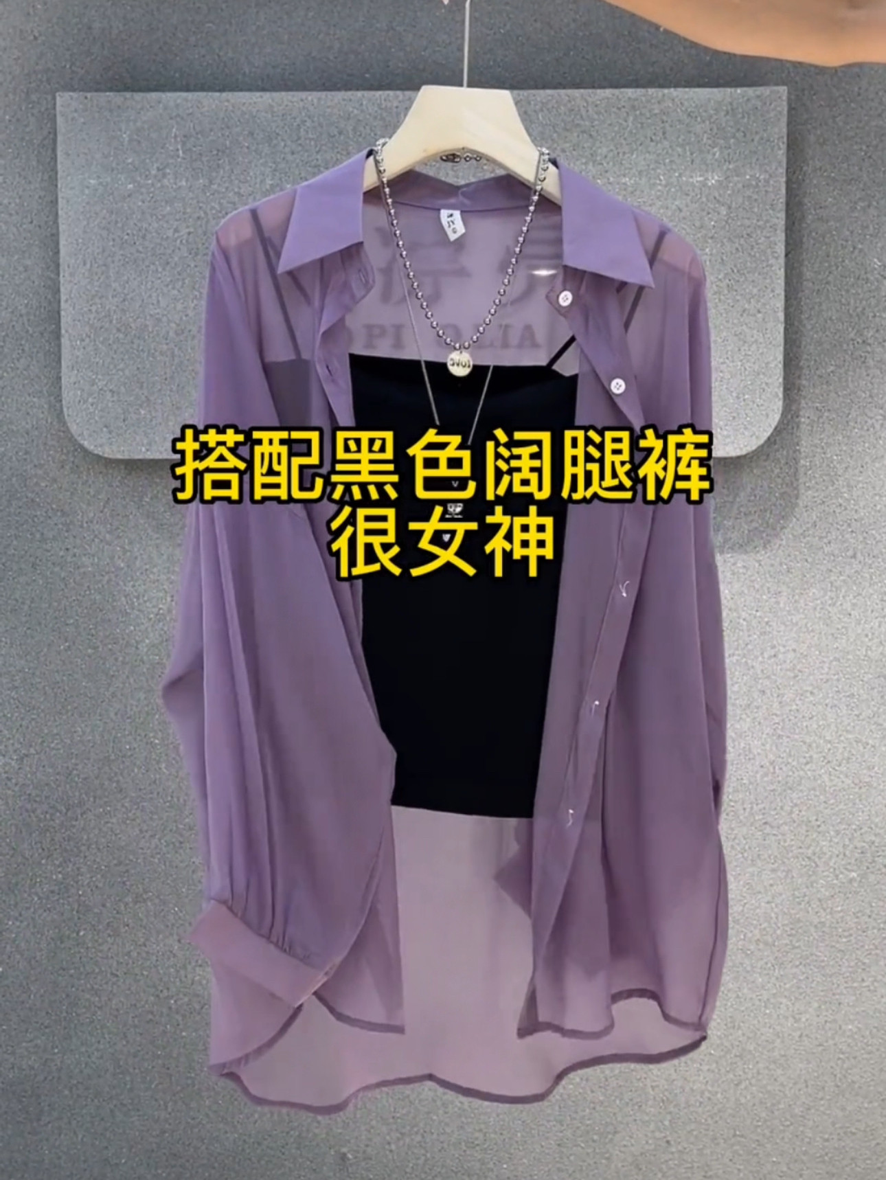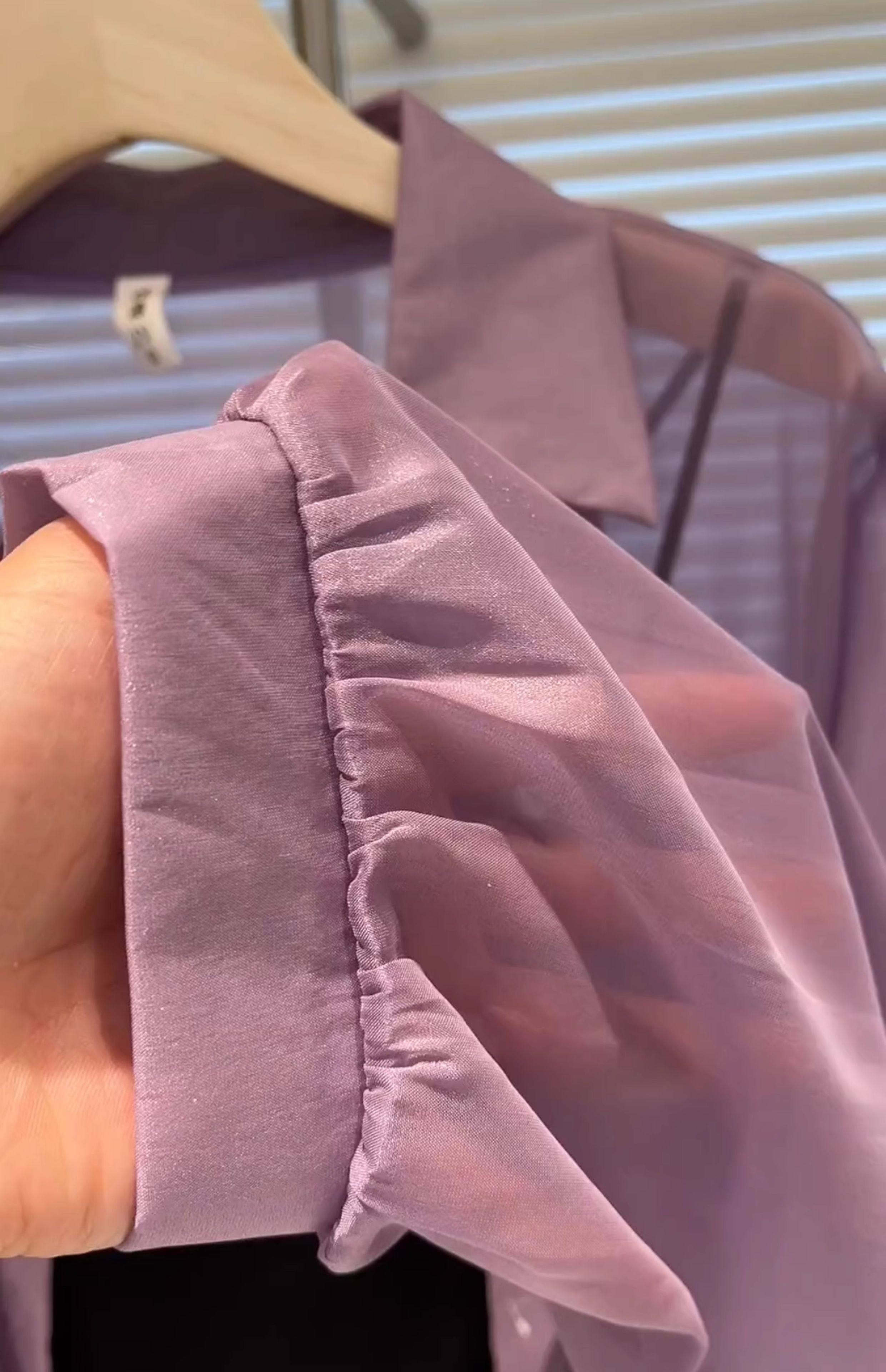 珠光砂凉感冰丝薄纱防晒衬衫女设计感洋气百搭外套纯色开衫上衣夏