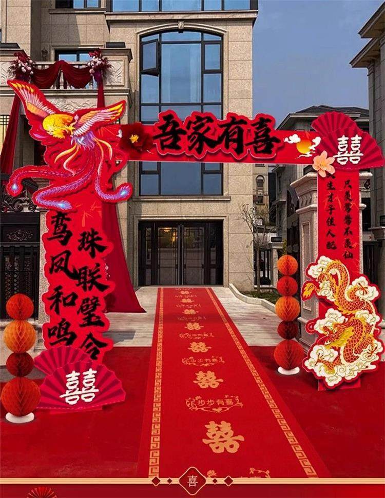 Complete Set of Courtyard Balloon Decorations for Outdoor Chinese-Style Wedding, Welcome Arch, Kt Board Columns, Entrance Site Setup for Celebration