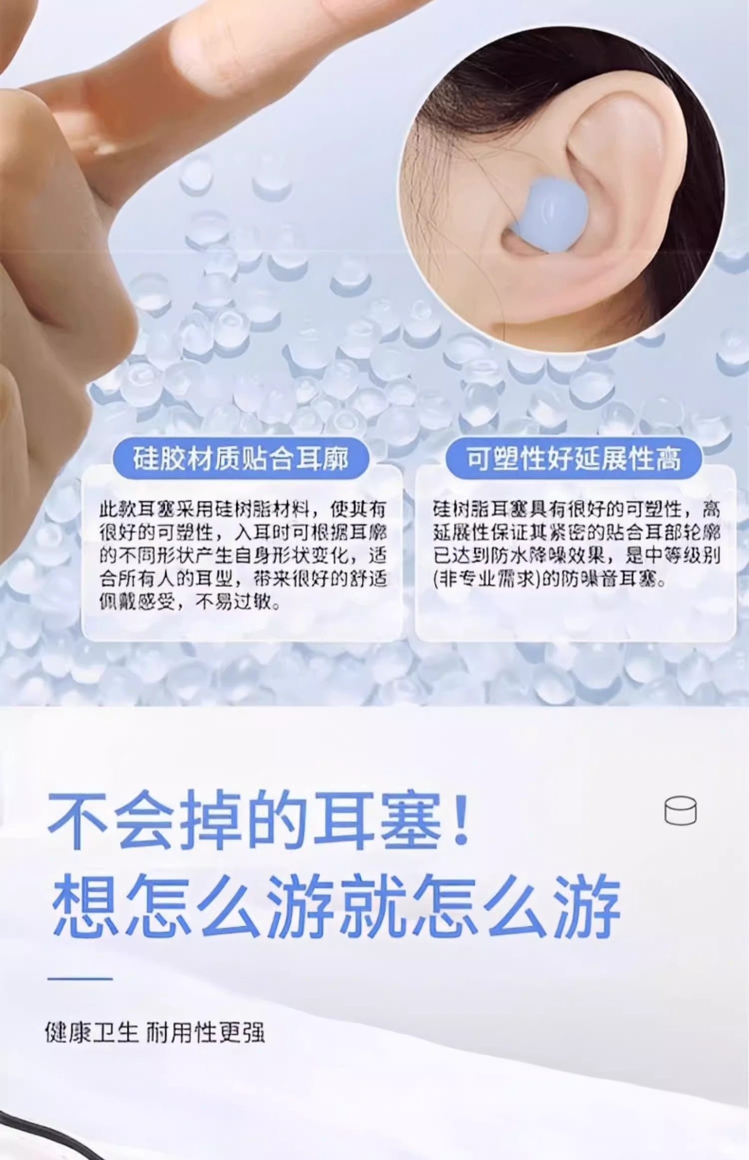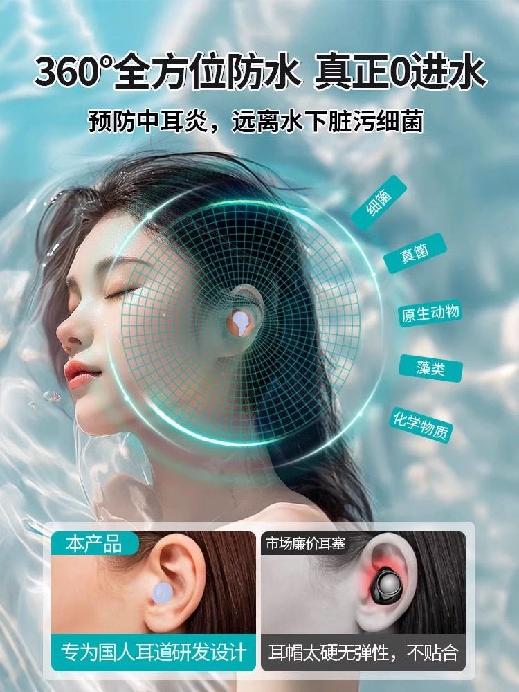 Japanese Swimming Earplugs, Waterproof, Professional, Prevent Otitis Media, Silicone, Anti-Water Intrusion, Non-Soundproof, Special for Bathing and Washing Hair