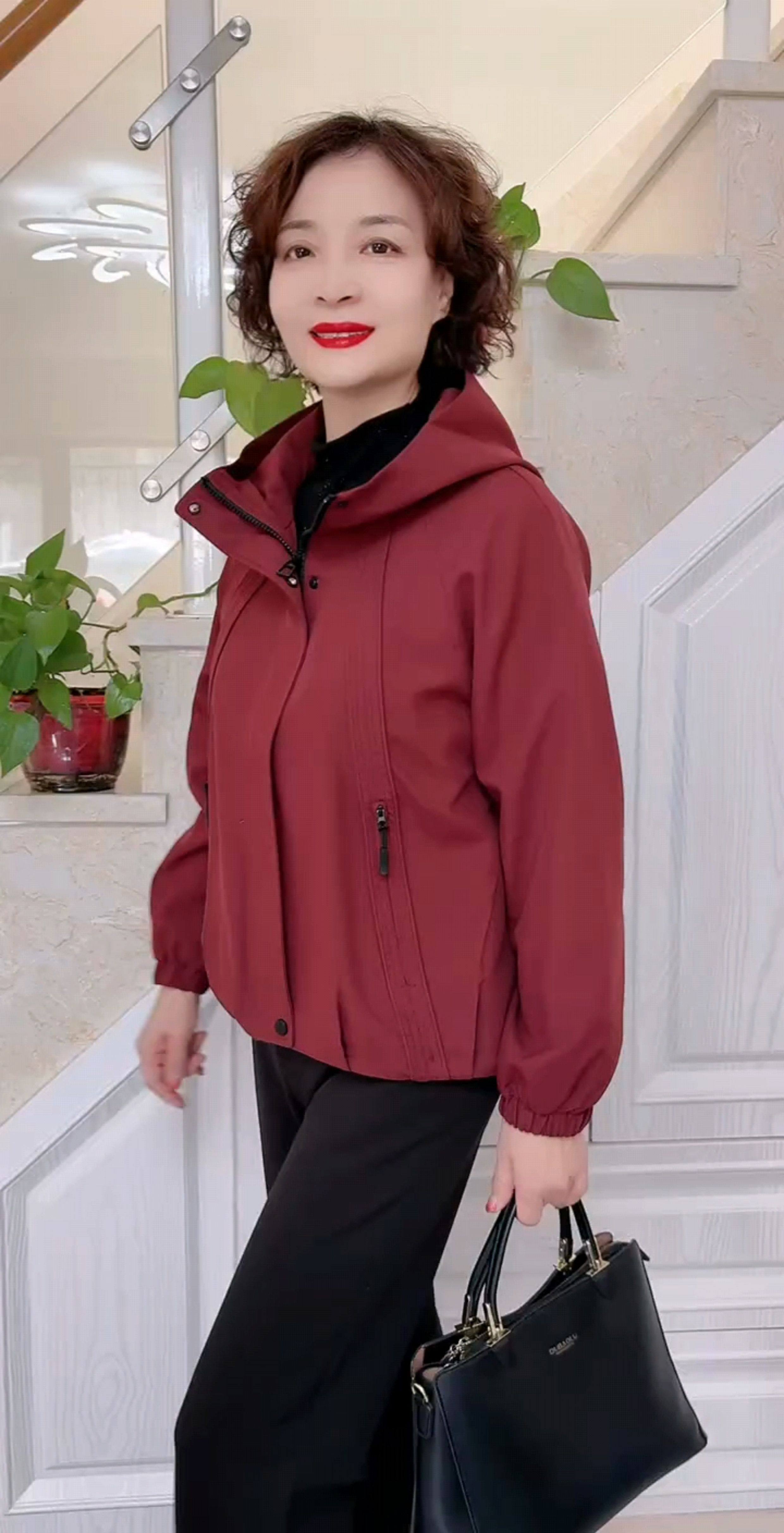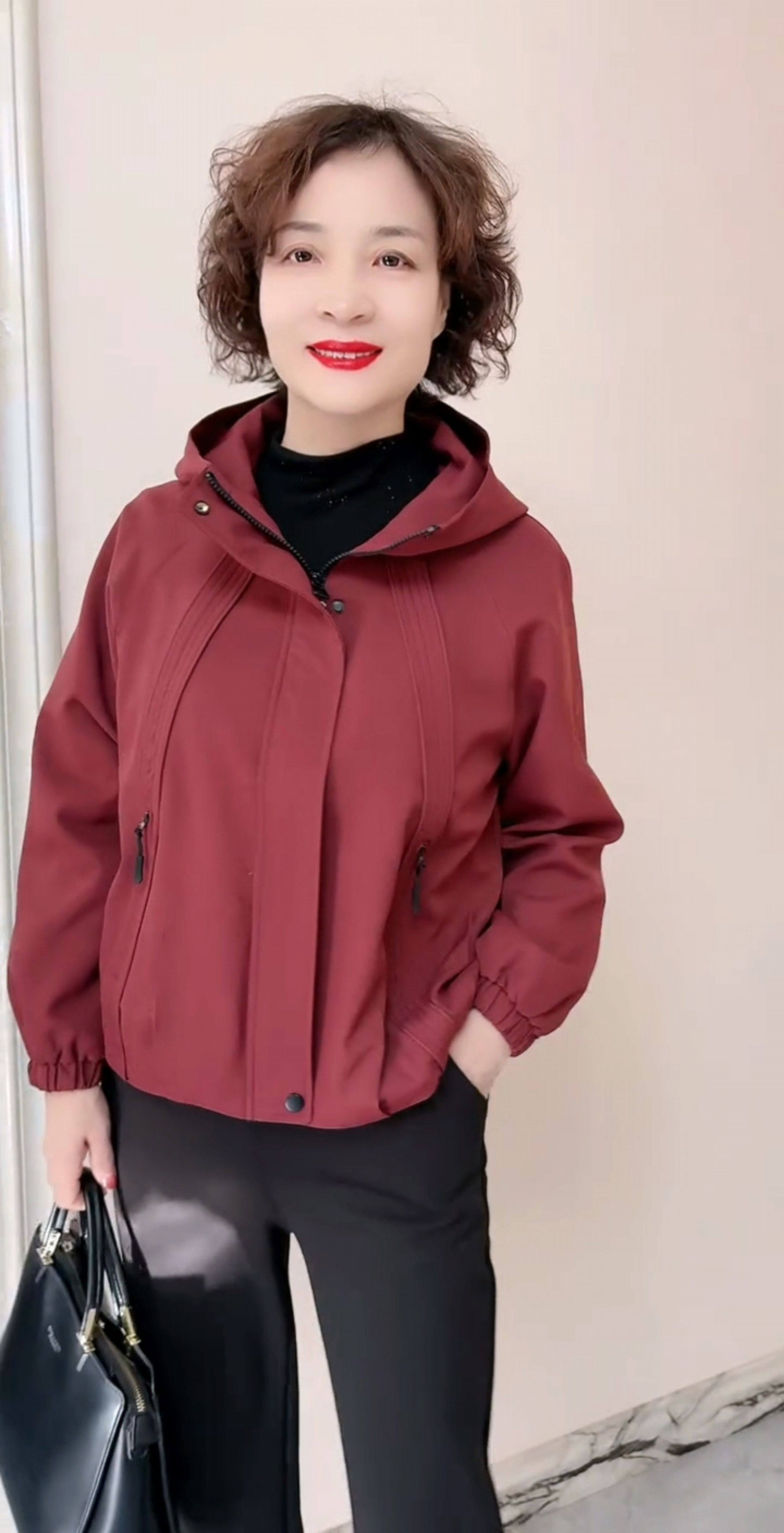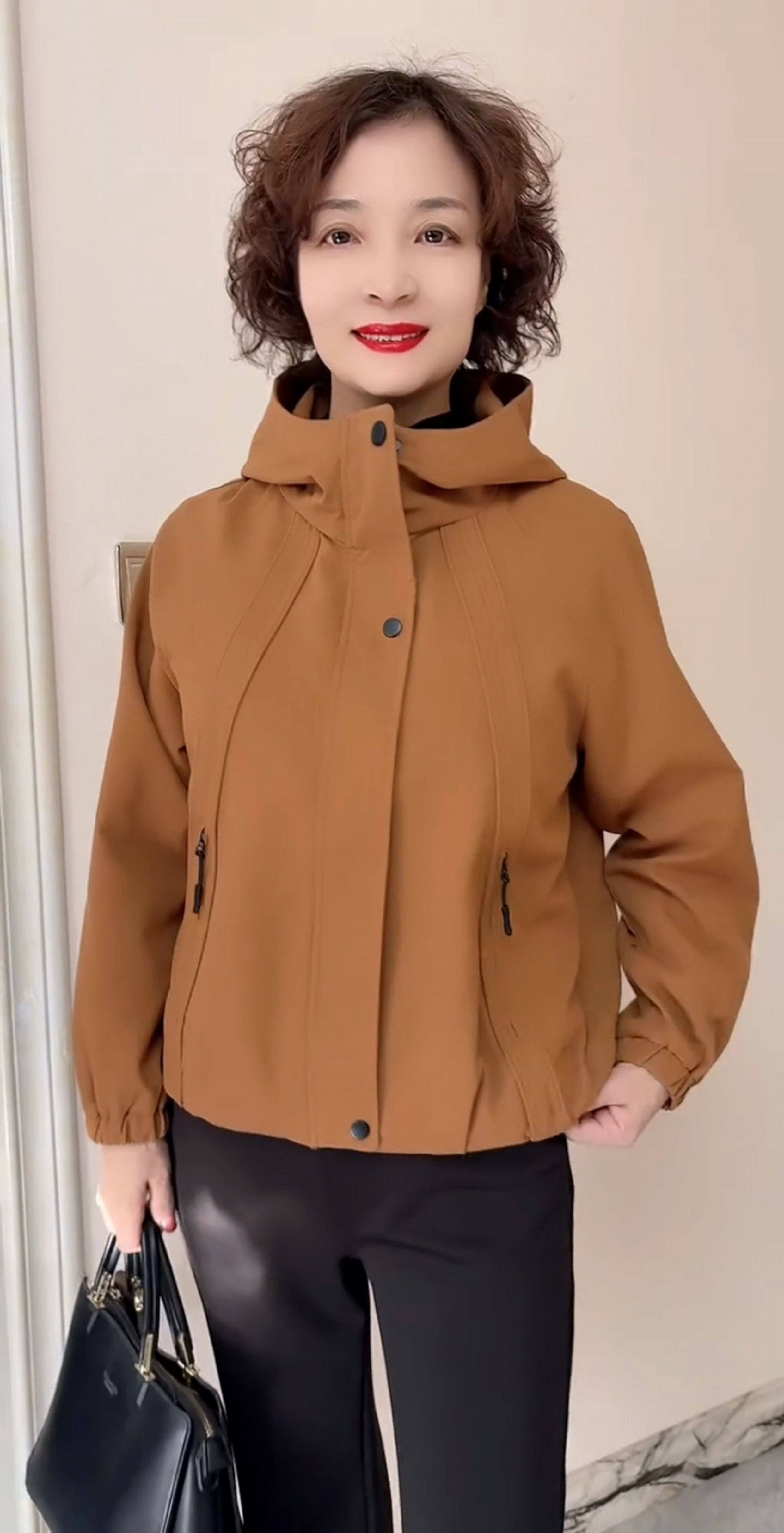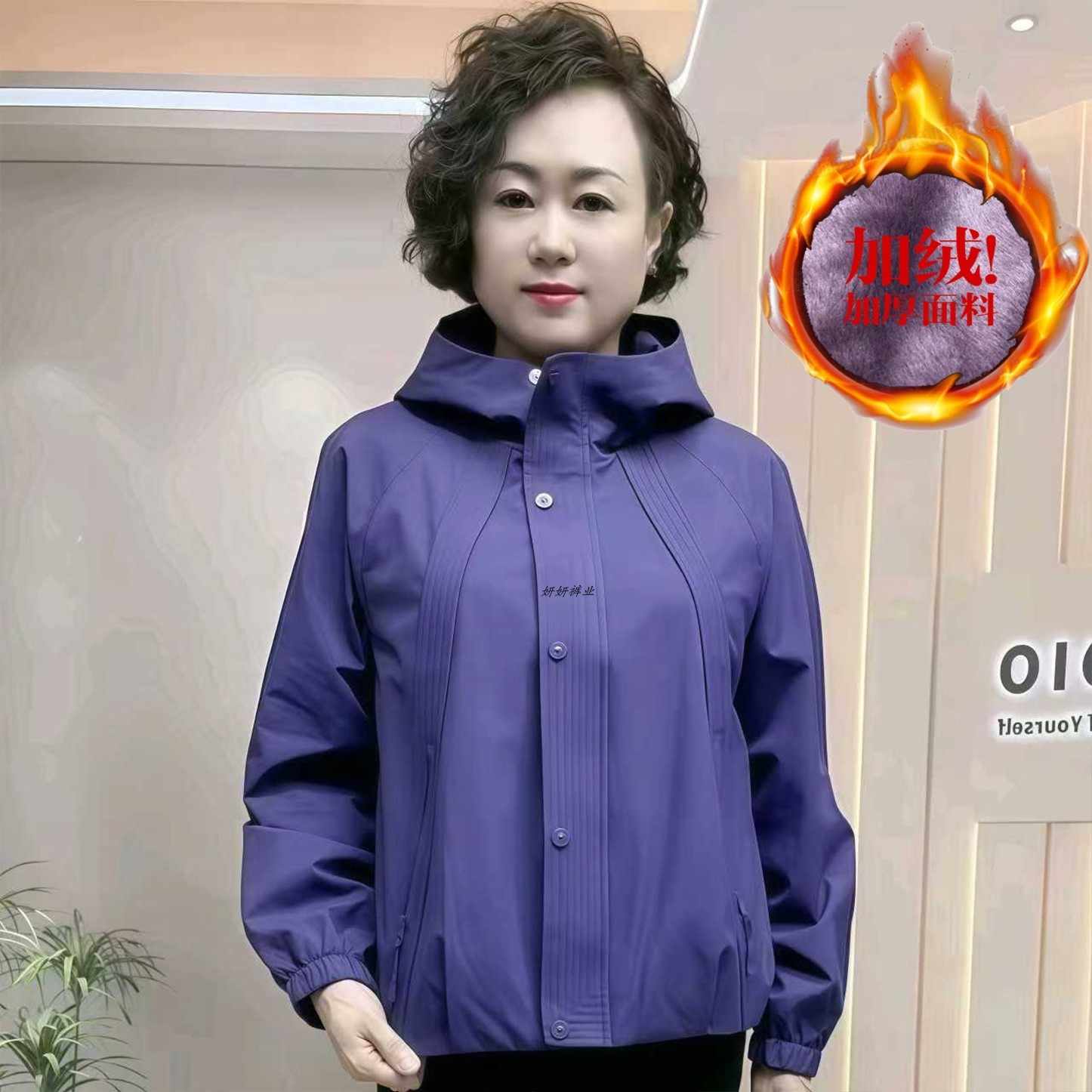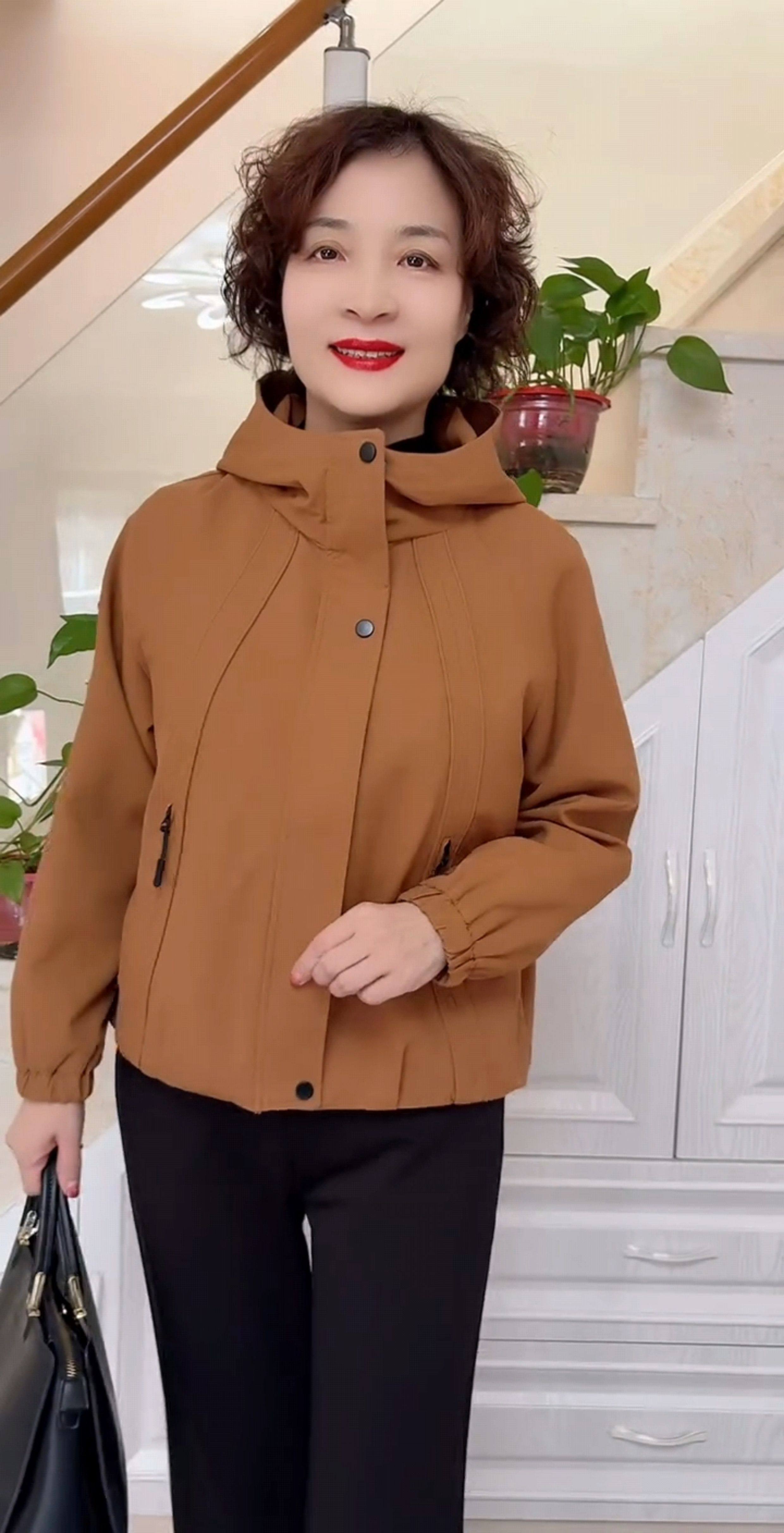 韩版连帽减龄休闲加绒夹克女专柜秋冬新款中年妈妈百搭风衣短外套