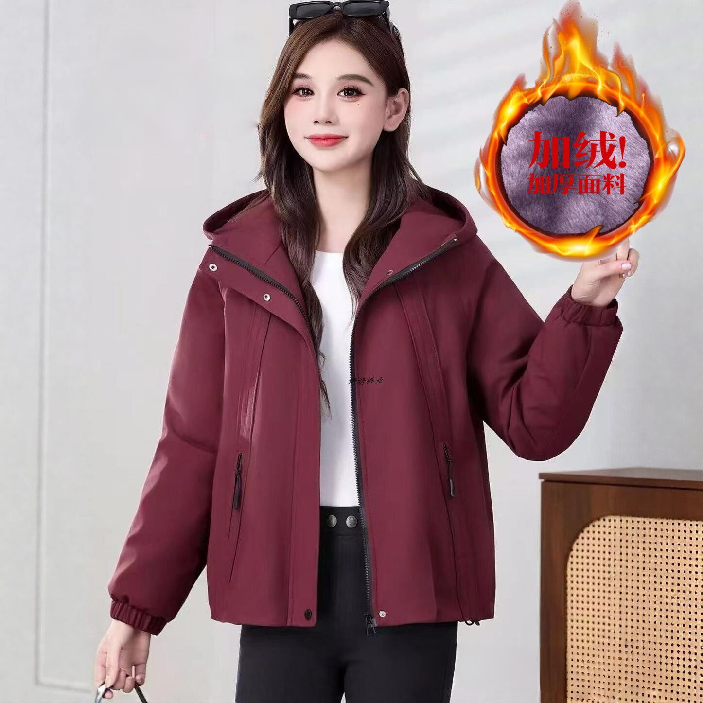 款式细节 带帽,加绒