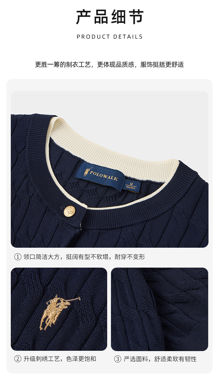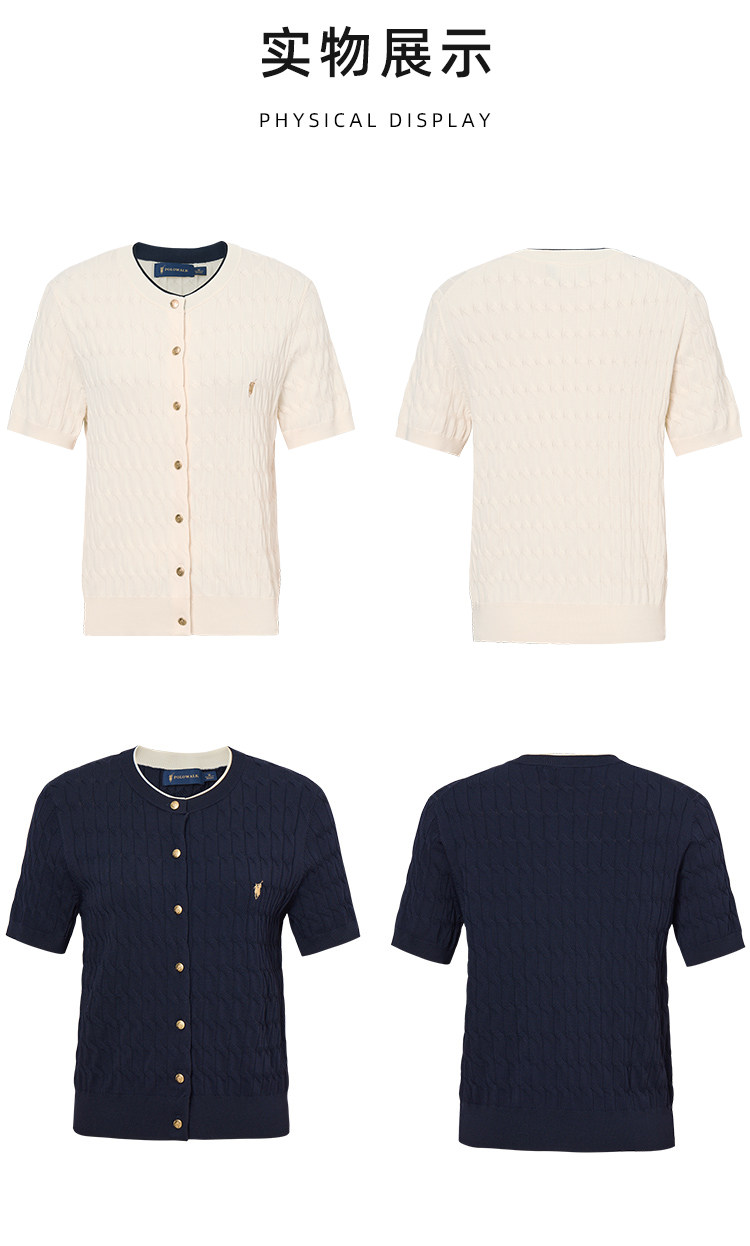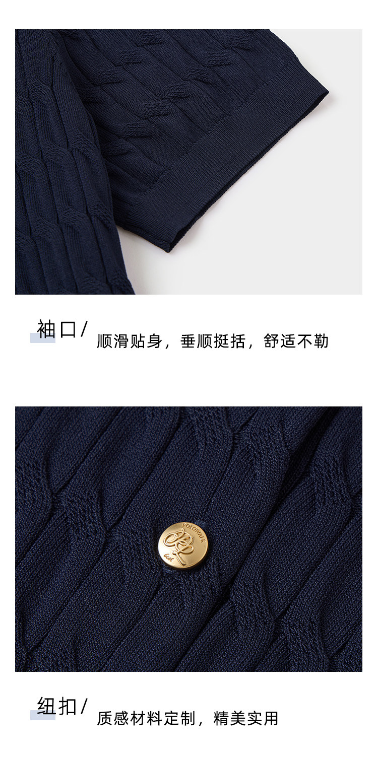 POLOWALK复古绞花短袖针织衫女春夏新款小标气质麻花圆领毛衣开衫