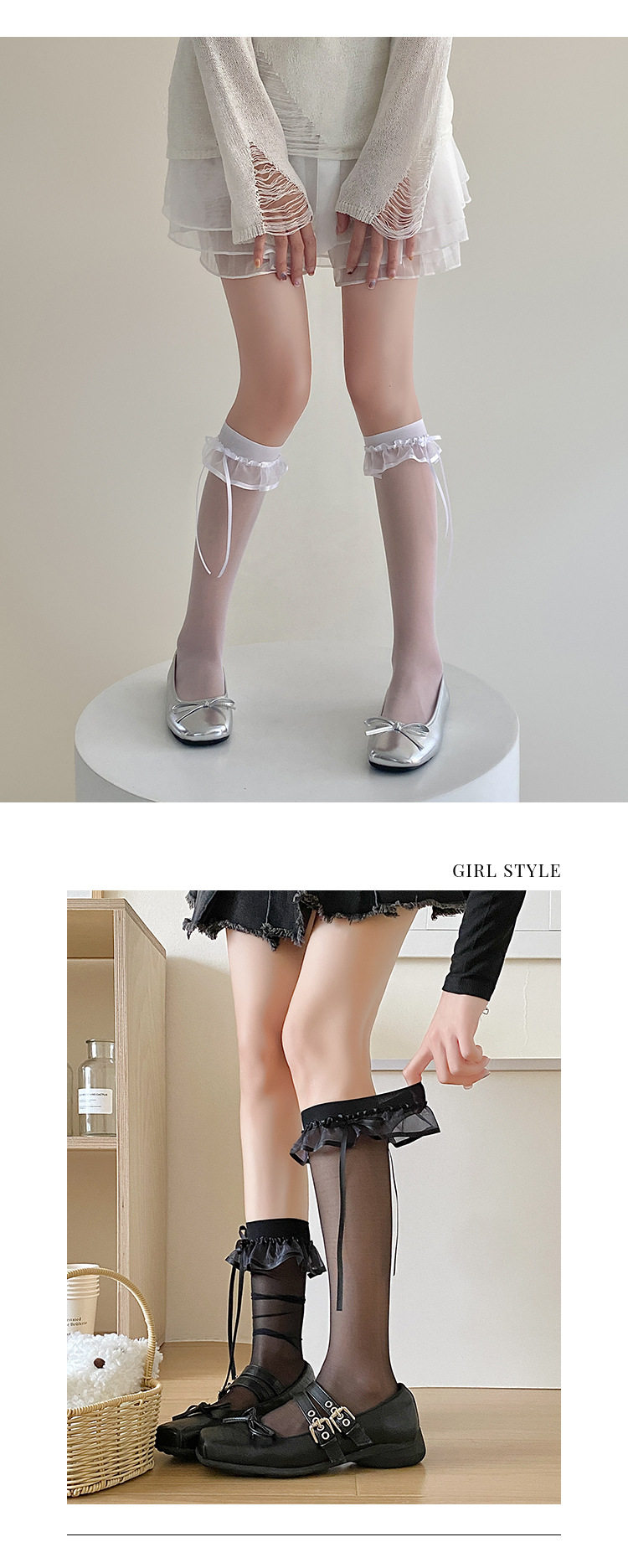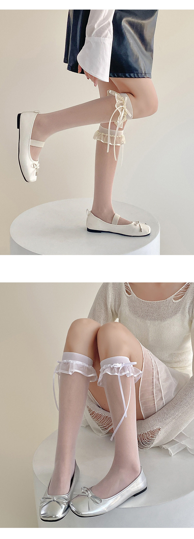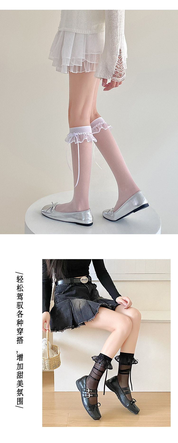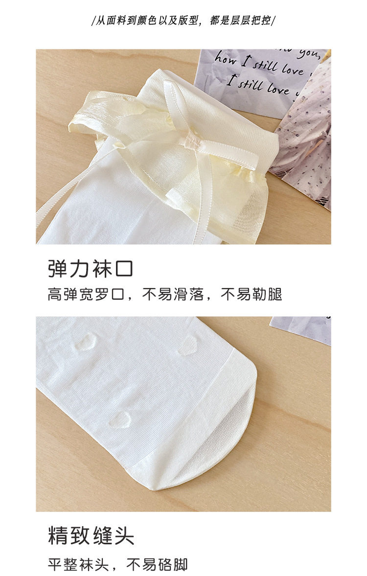 芭蕾风蕾丝蝴蝶结小腿袜洛丽塔黑丝袜爱心波点中筒袜夏季薄款白丝