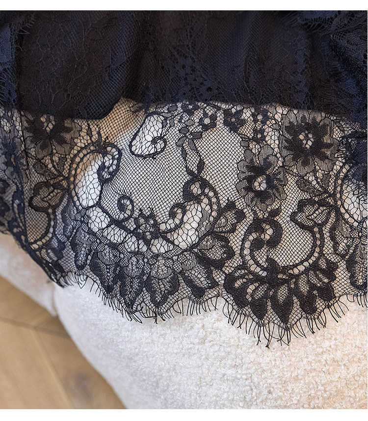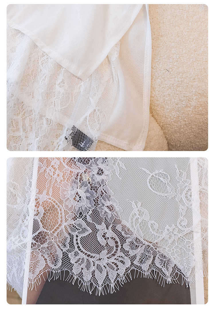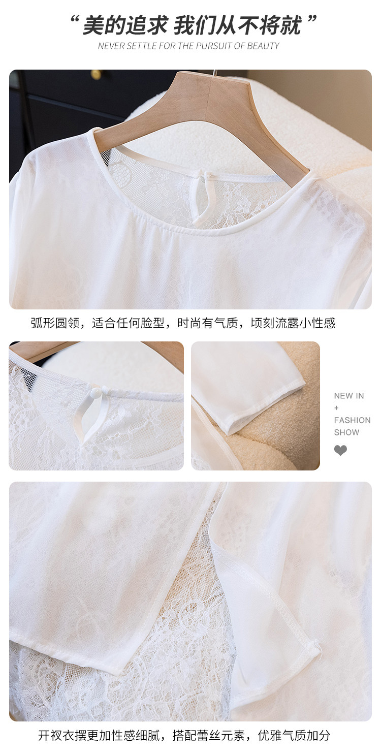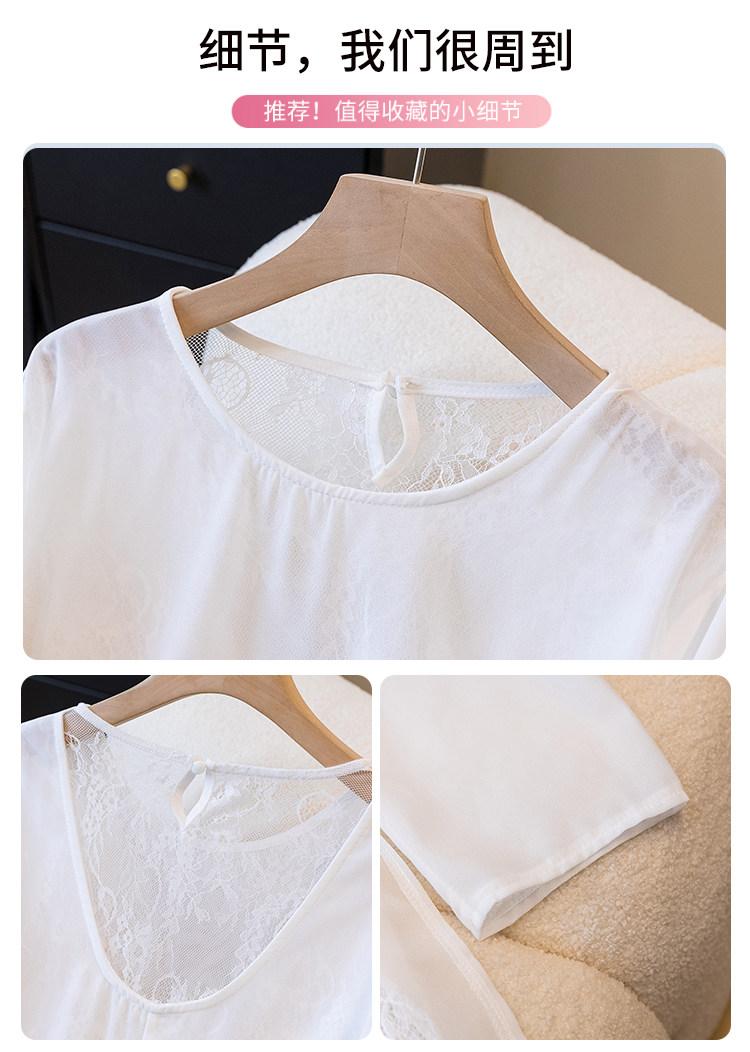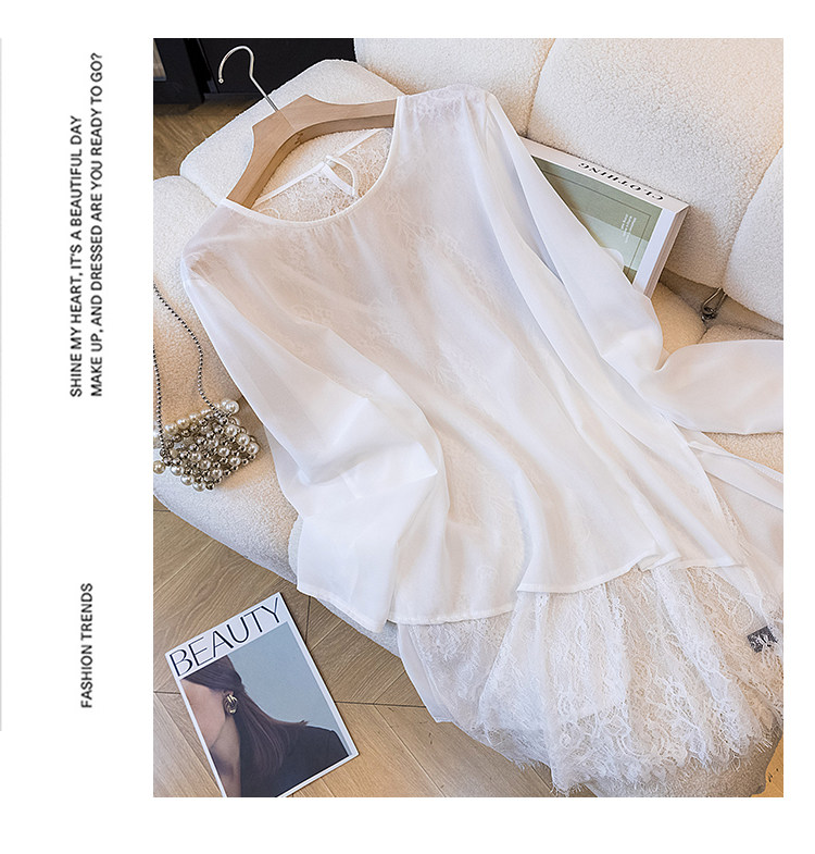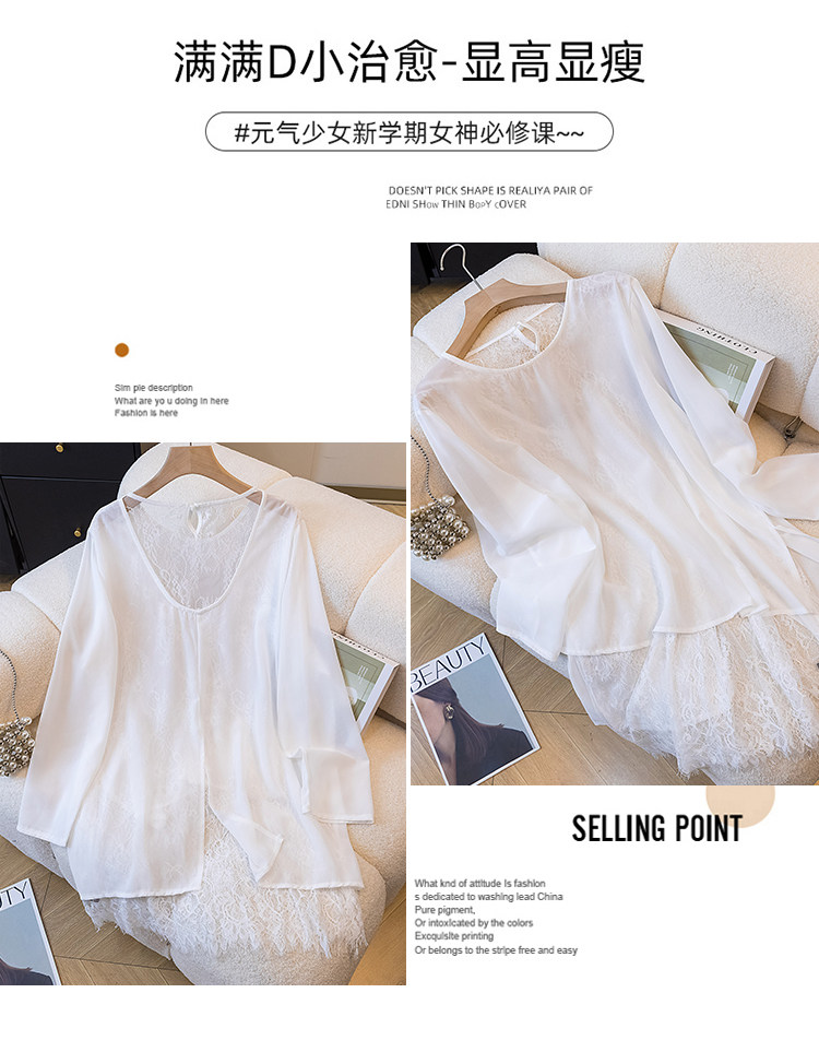 Женская блузка из черного шифона с кружевными вставками, длинным рукавом, весна-лето 2025, большие размеры, для полных женщин, верхняя одежда, имитация двухслойного топа