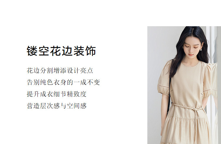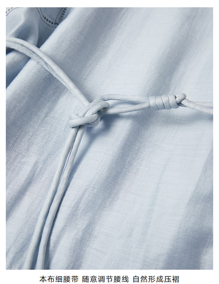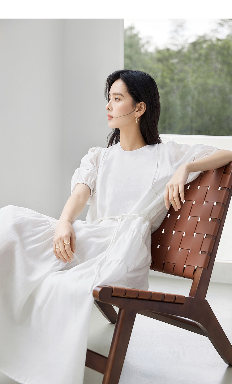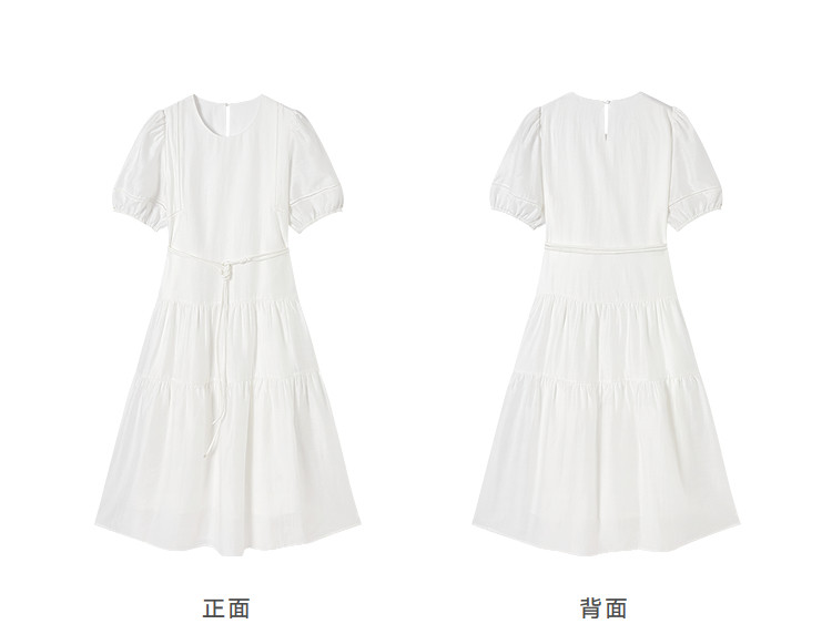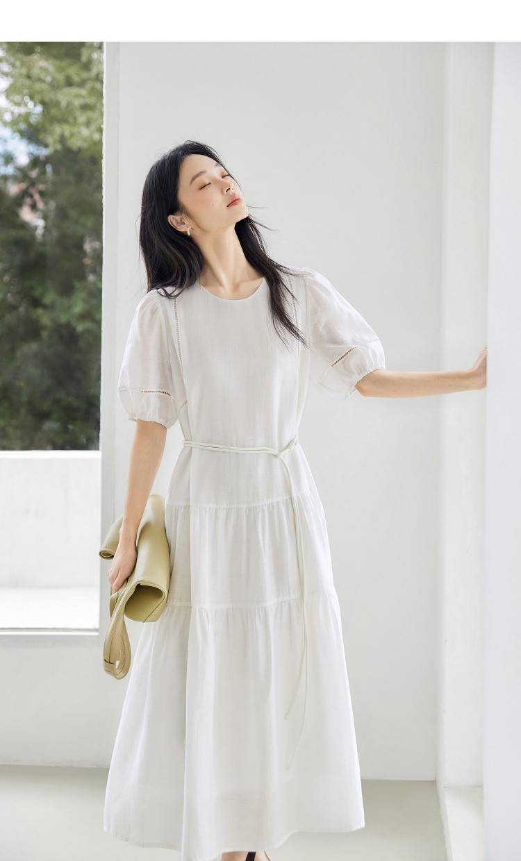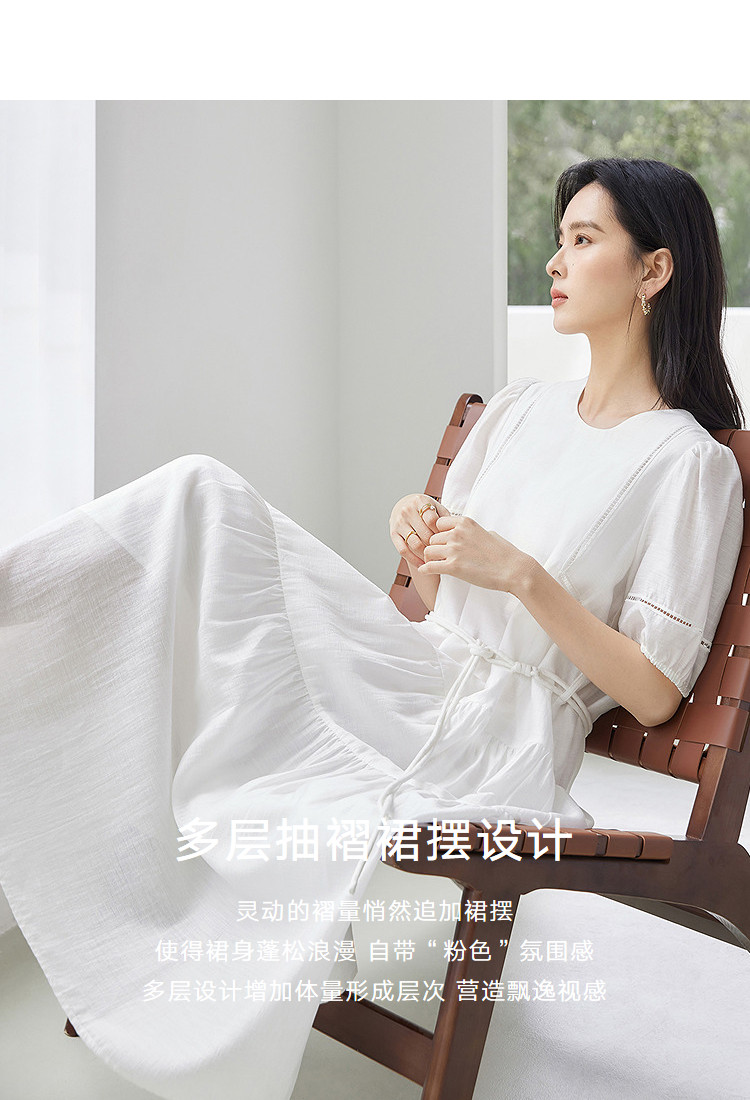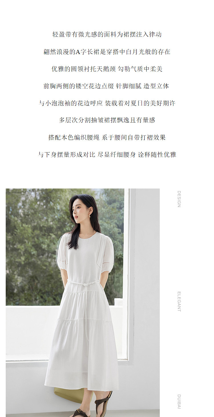 对白莱赛尔醋酸法式度假镂空连衣裙女2025夏新款泡泡袖减龄A字裙