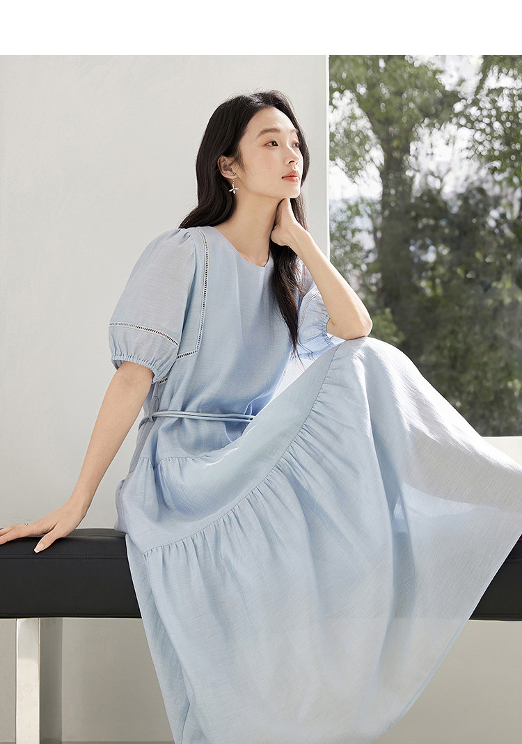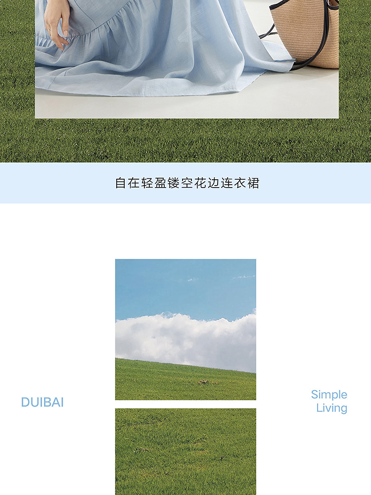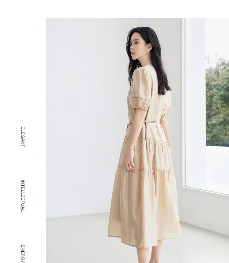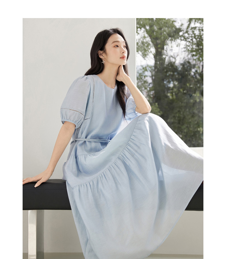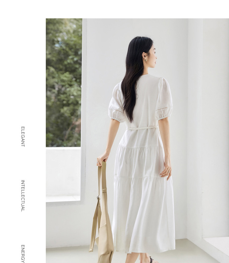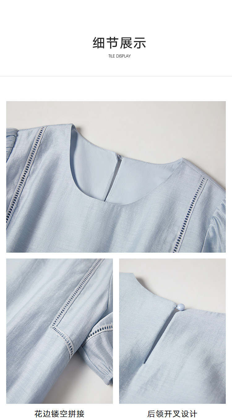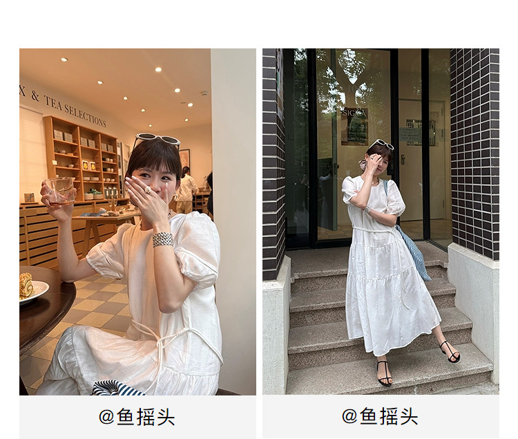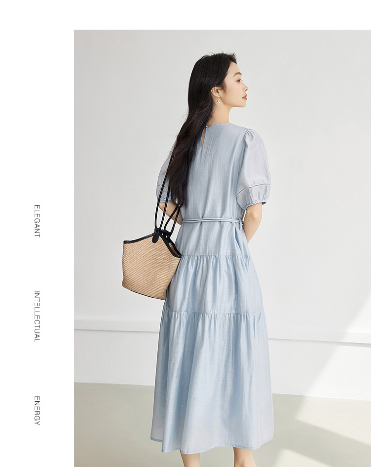 对白莱赛尔醋酸法式度假镂空连衣裙女2025夏新款泡泡袖减龄A字裙