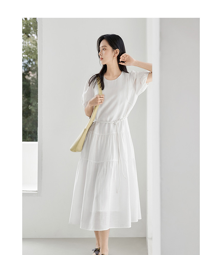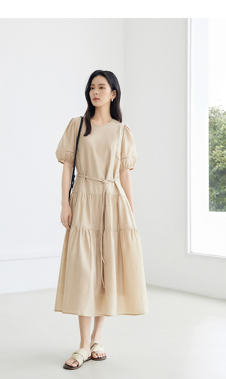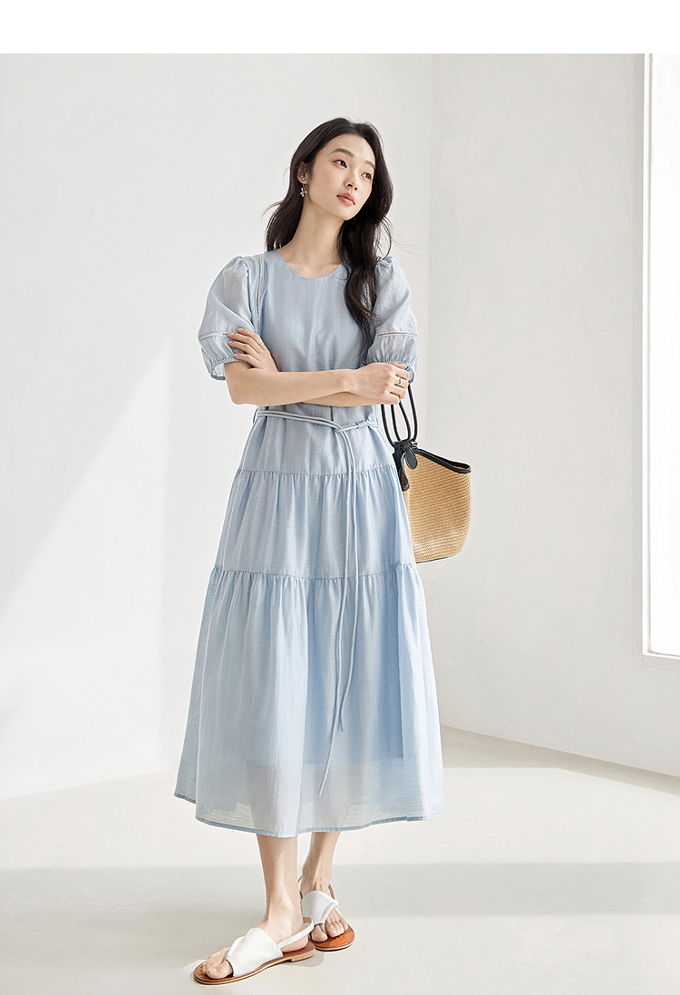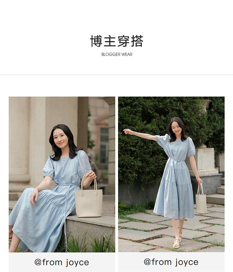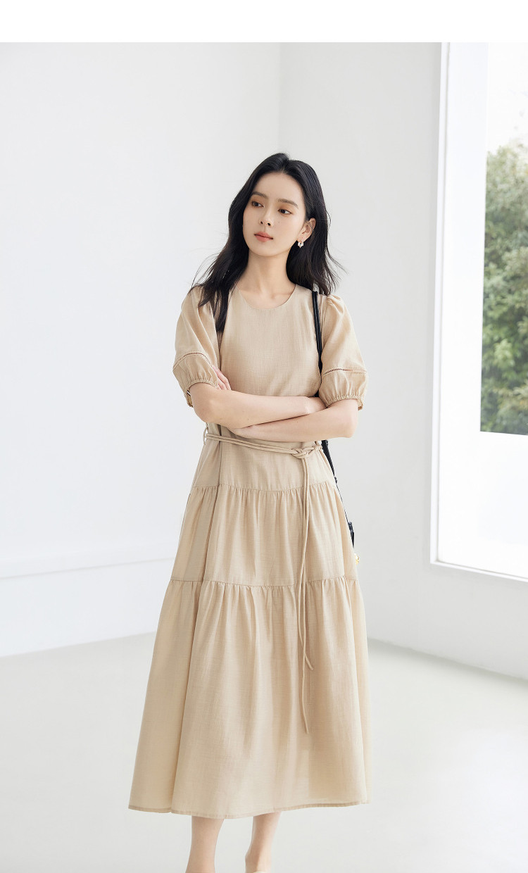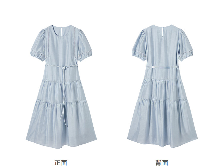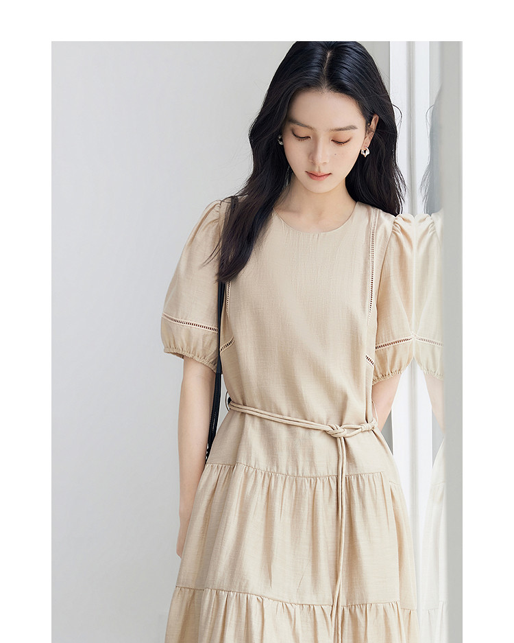 对白莱赛尔醋酸法式度假镂空连衣裙女2025夏新款泡泡袖减龄A字裙