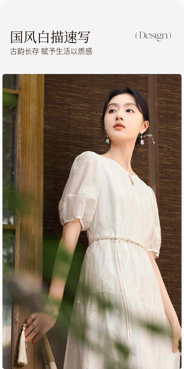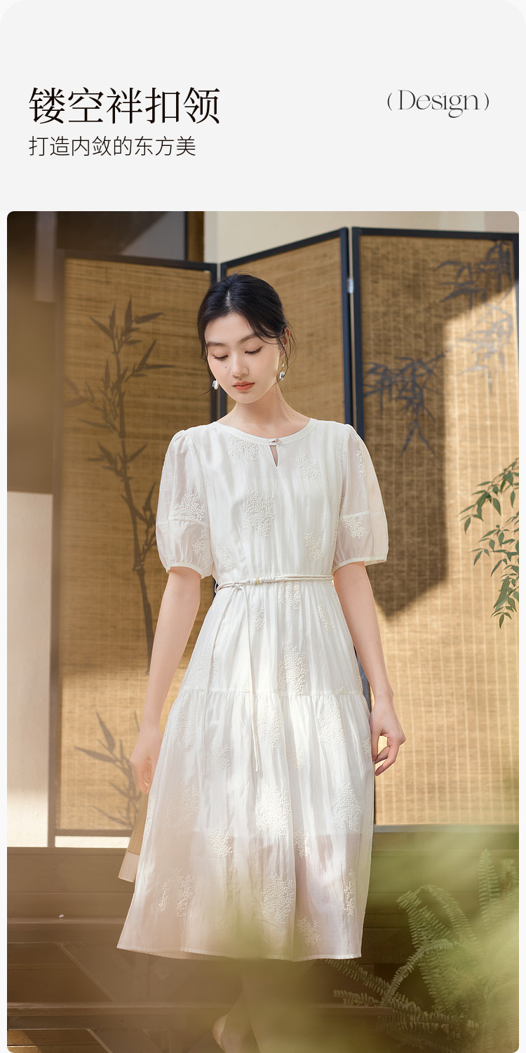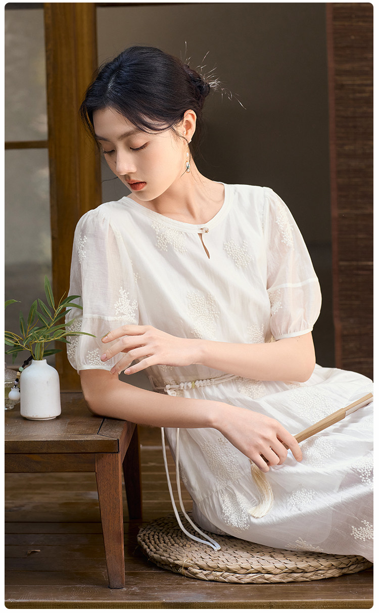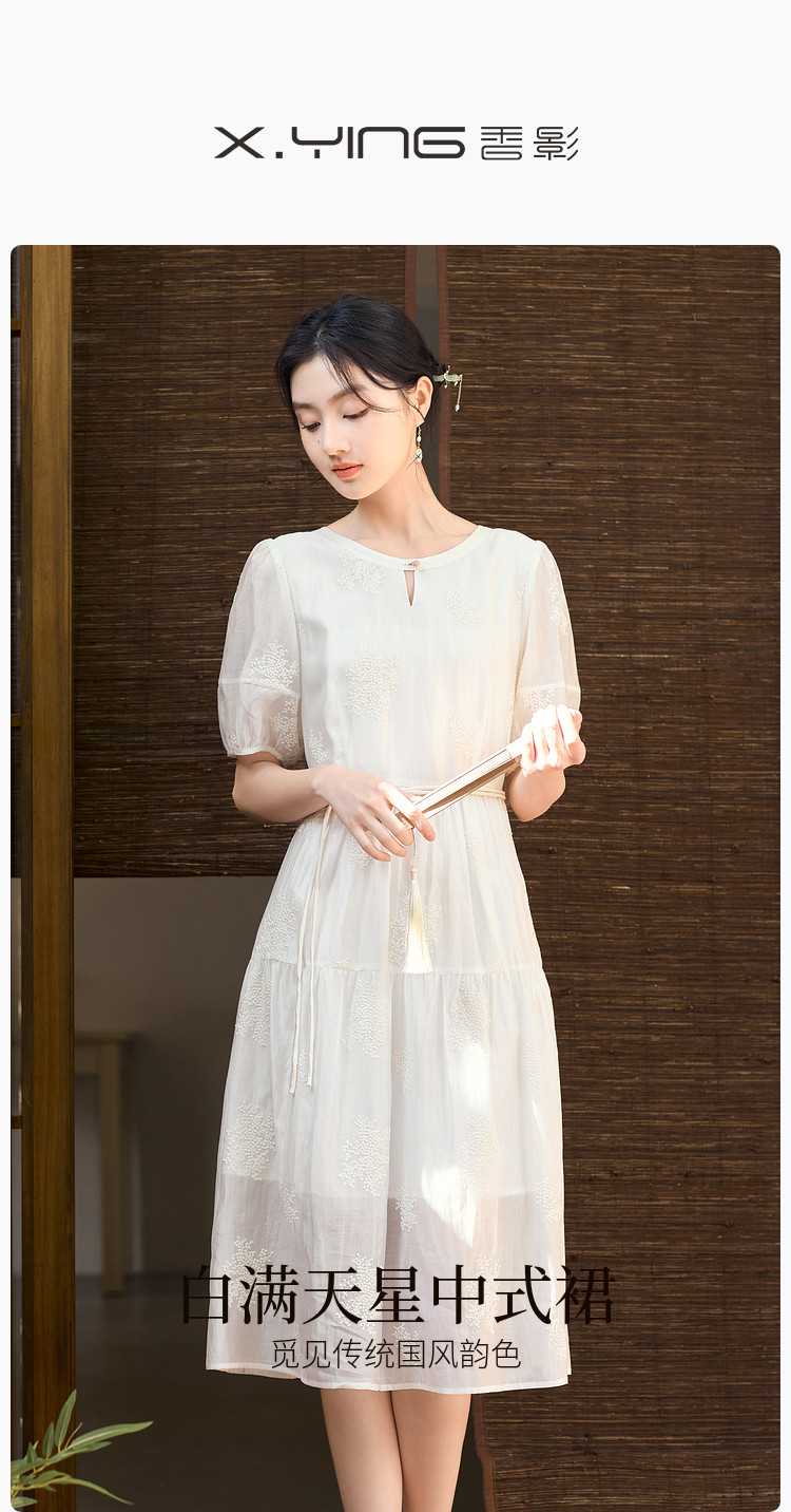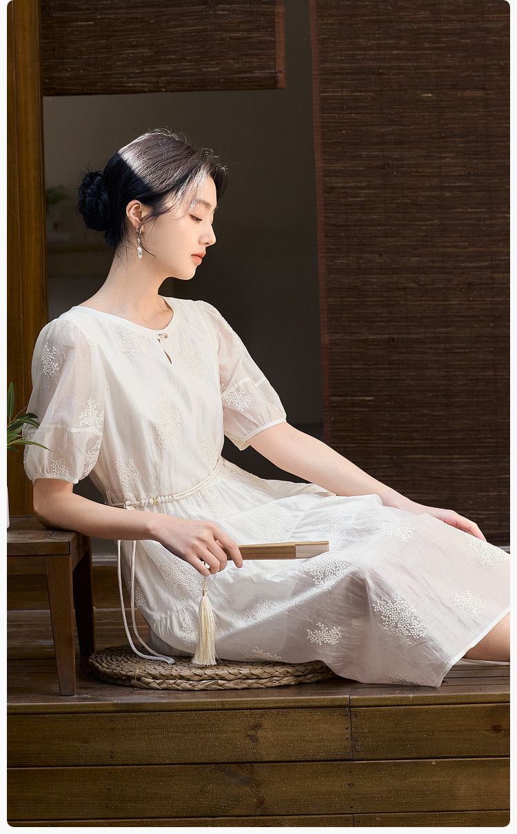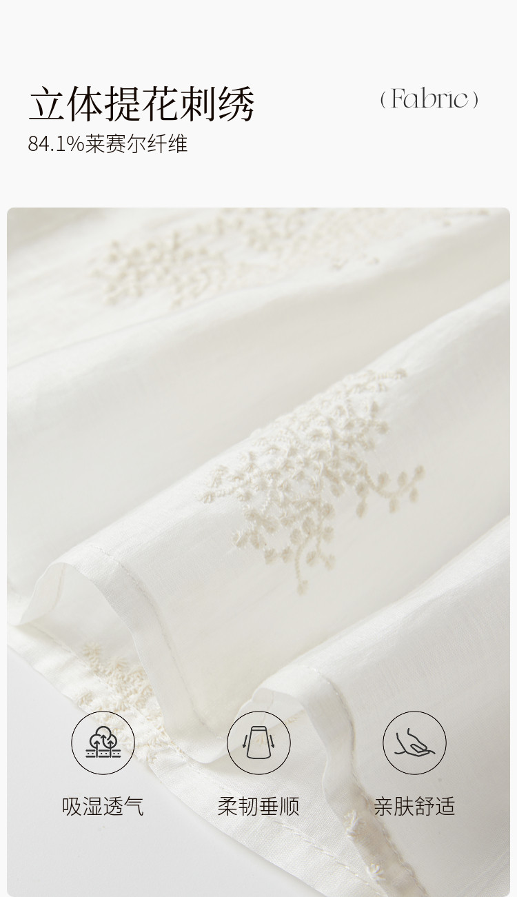 [New Chinese Style]Xiangying New Chinese-Style White Dress for Women 2025 Summer New Lyocell Tencel Embroidered Dress