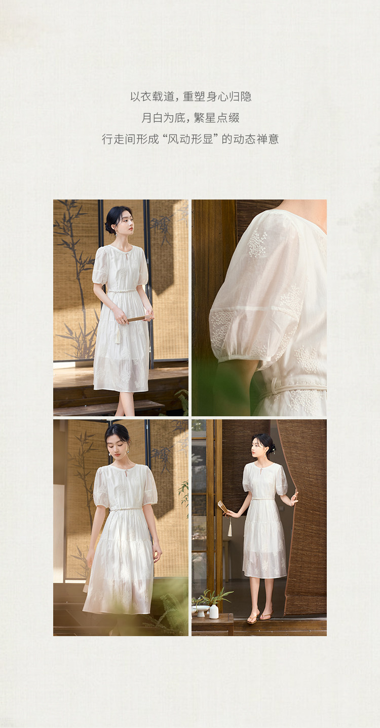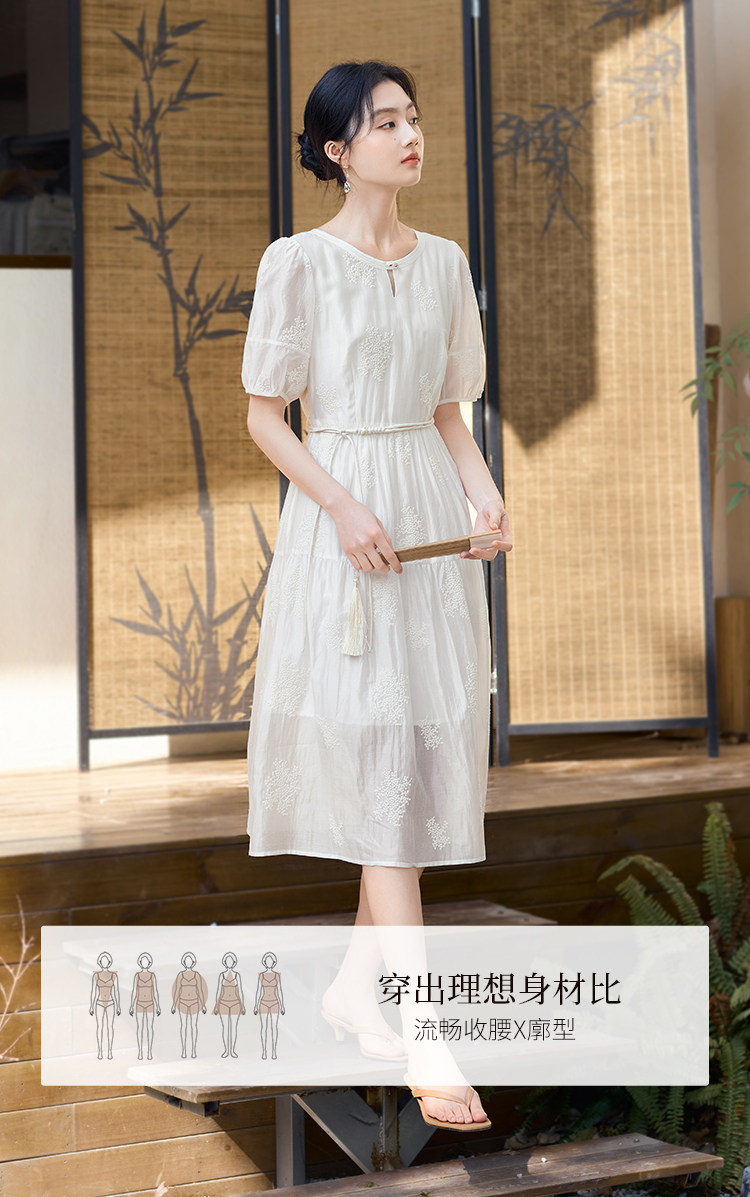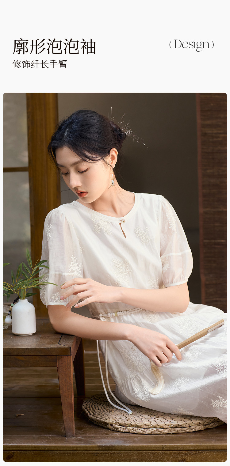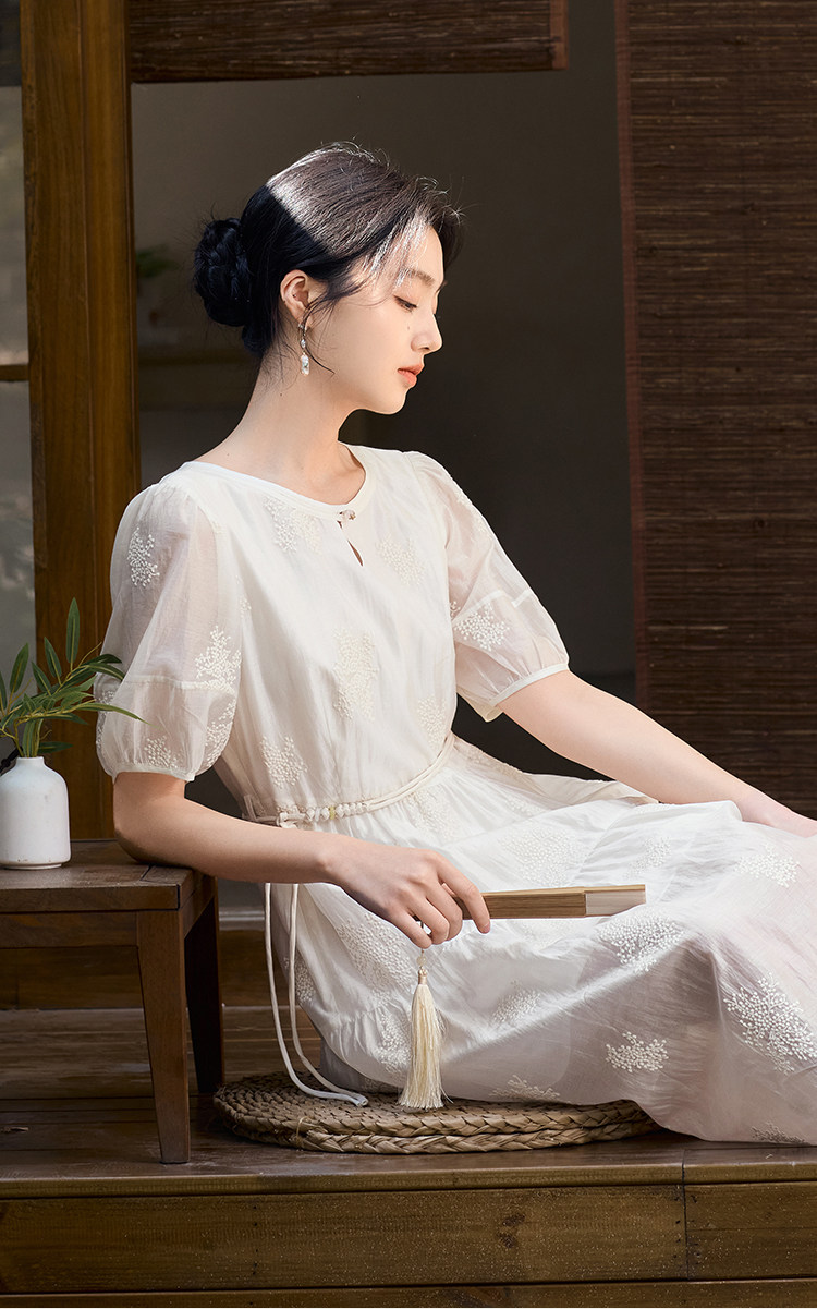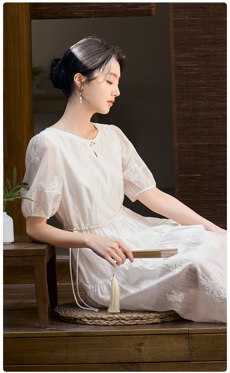 [New Chinese Style]Xiangying New Chinese-Style White Dress for Women 2025 Summer New Lyocell Tencel Embroidered Dress