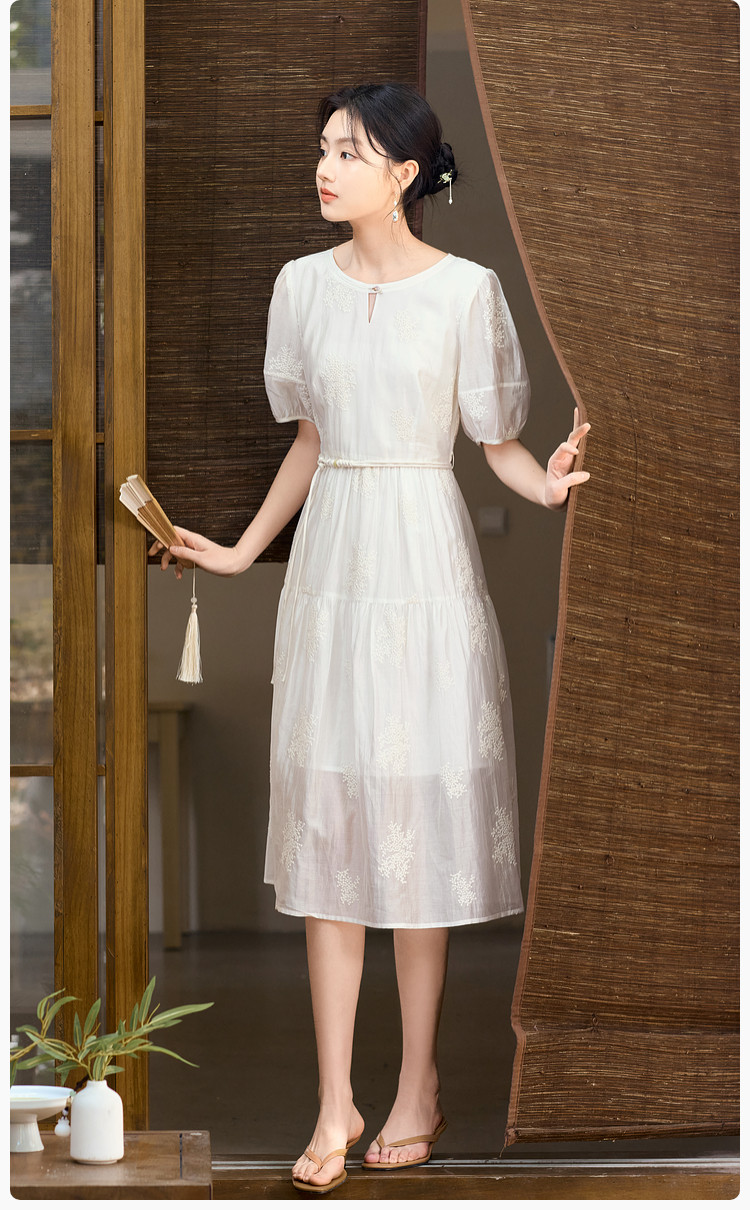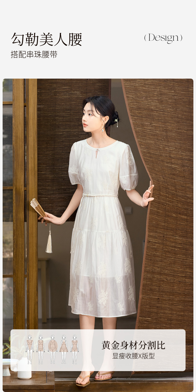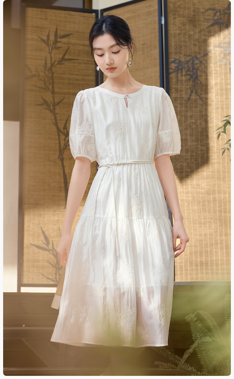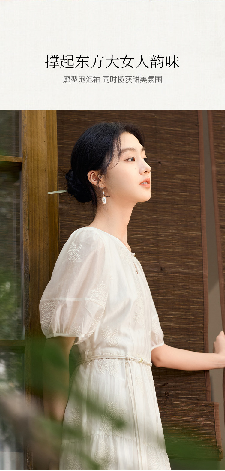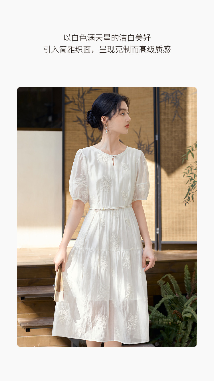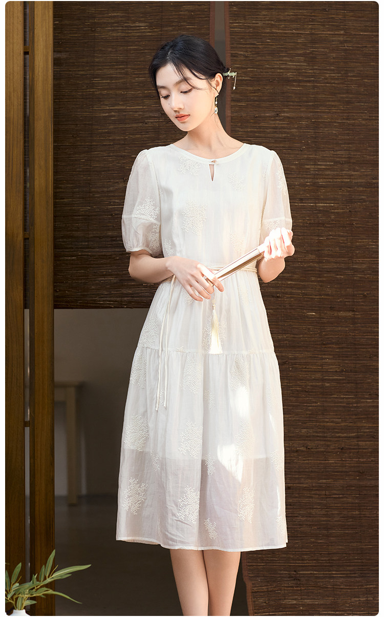 [New Chinese Style]Xiangying New Chinese-Style White Dress for Women 2025 Summer New Lyocell Tencel Embroidered Dress