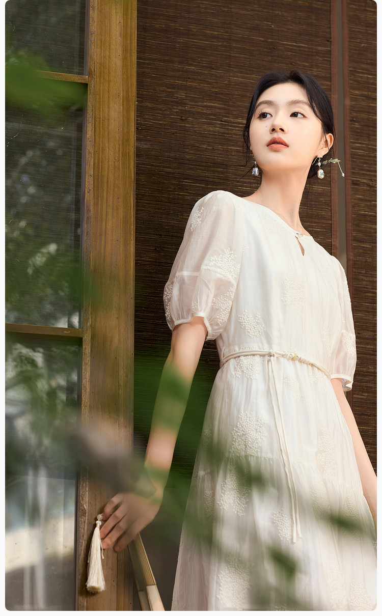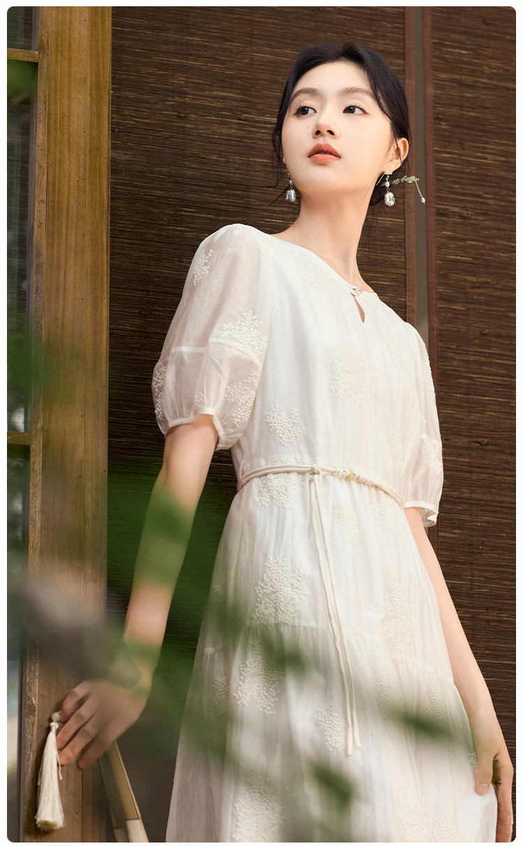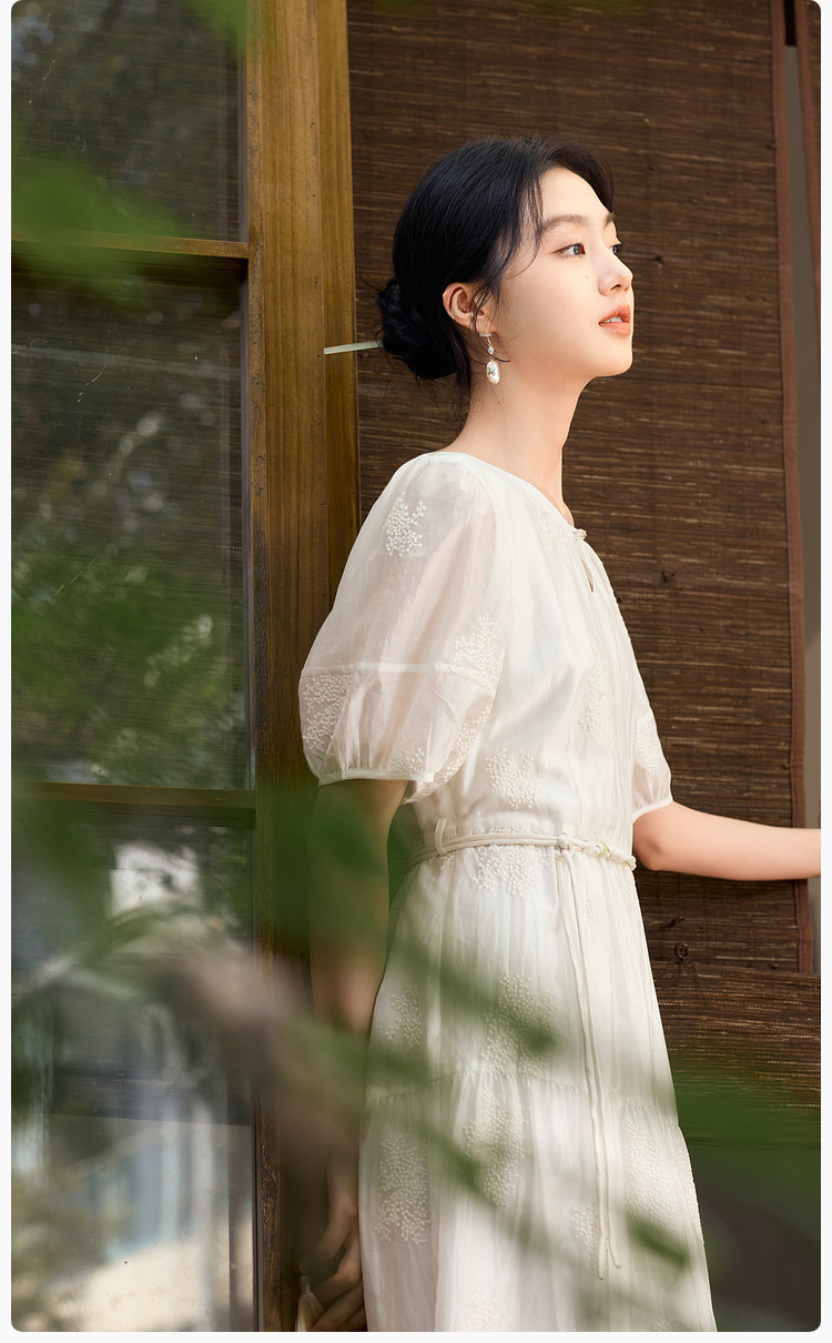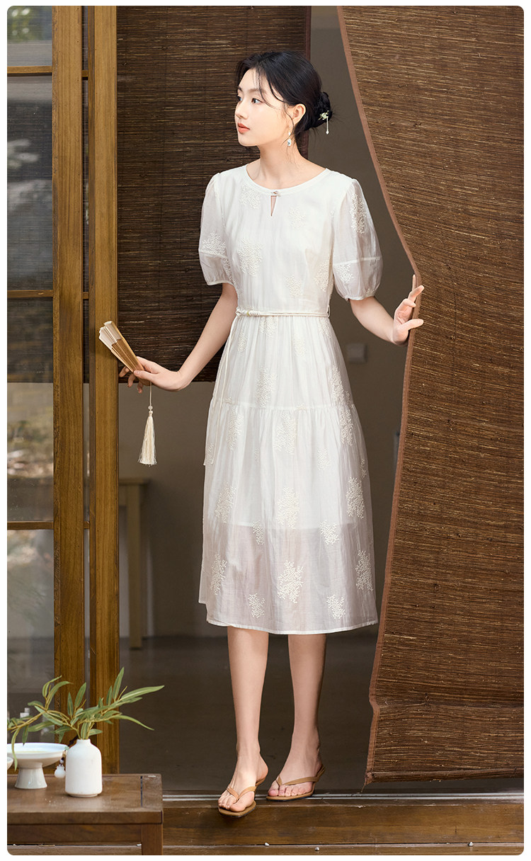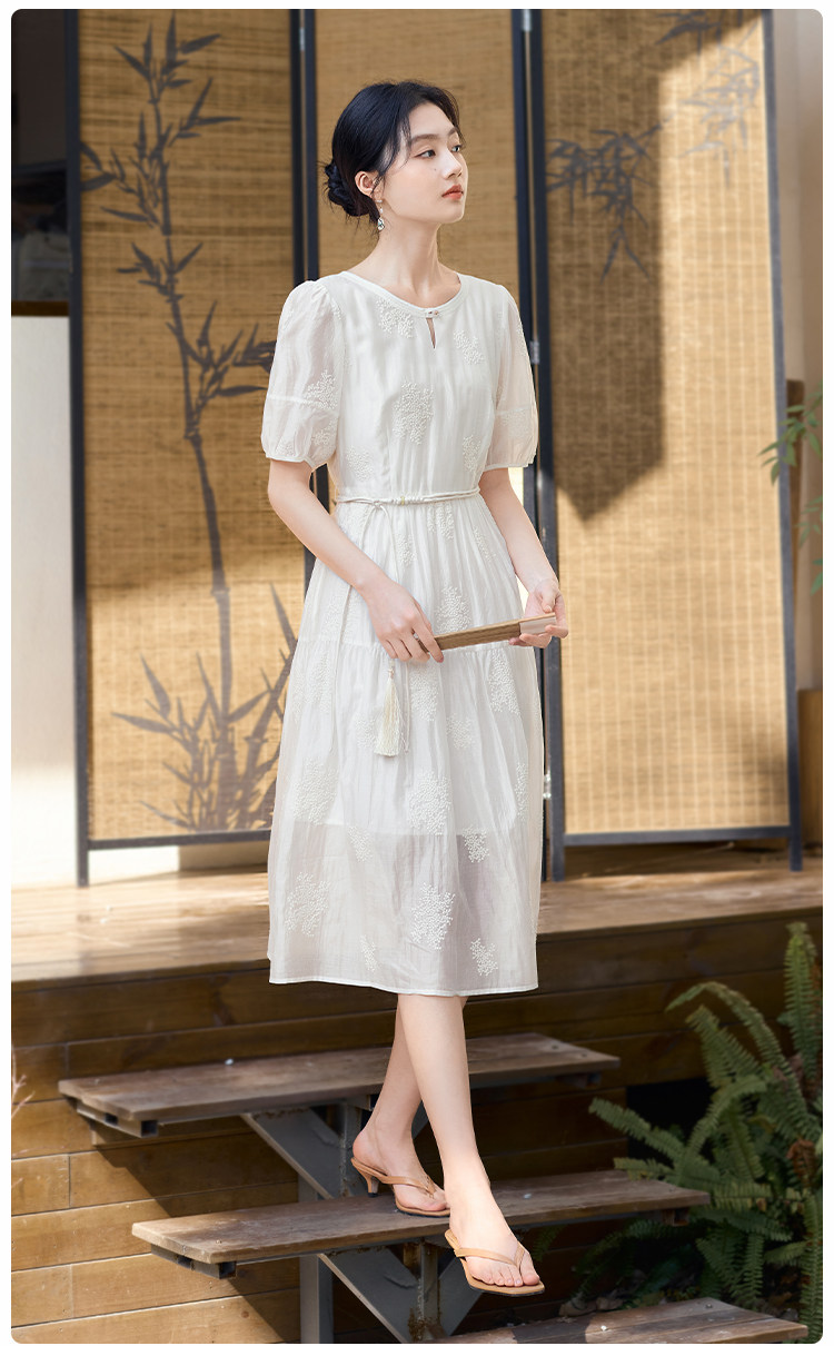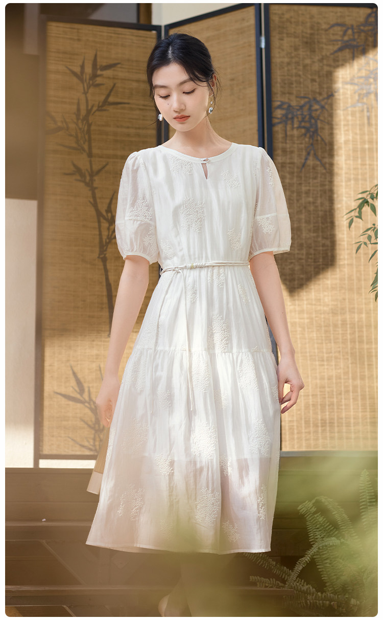 [New Chinese Style]Xiangying New Chinese-Style White Dress for Women 2025 Summer New Lyocell Tencel Embroidered Dress