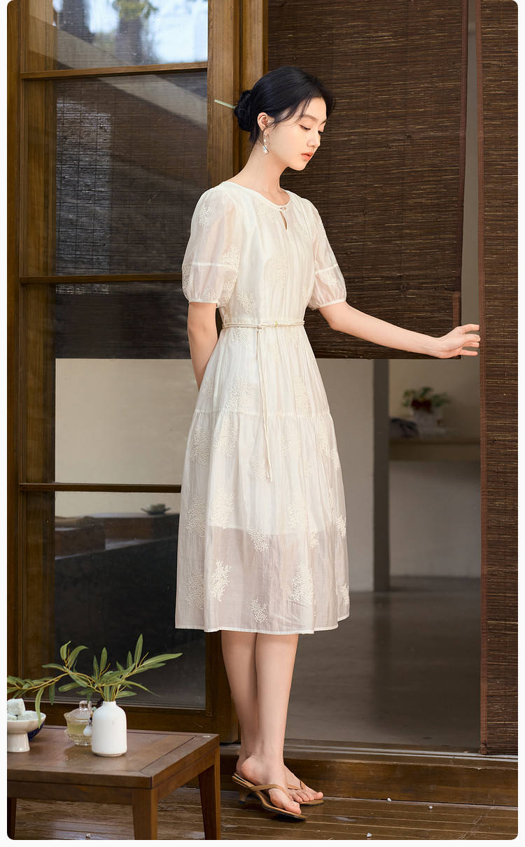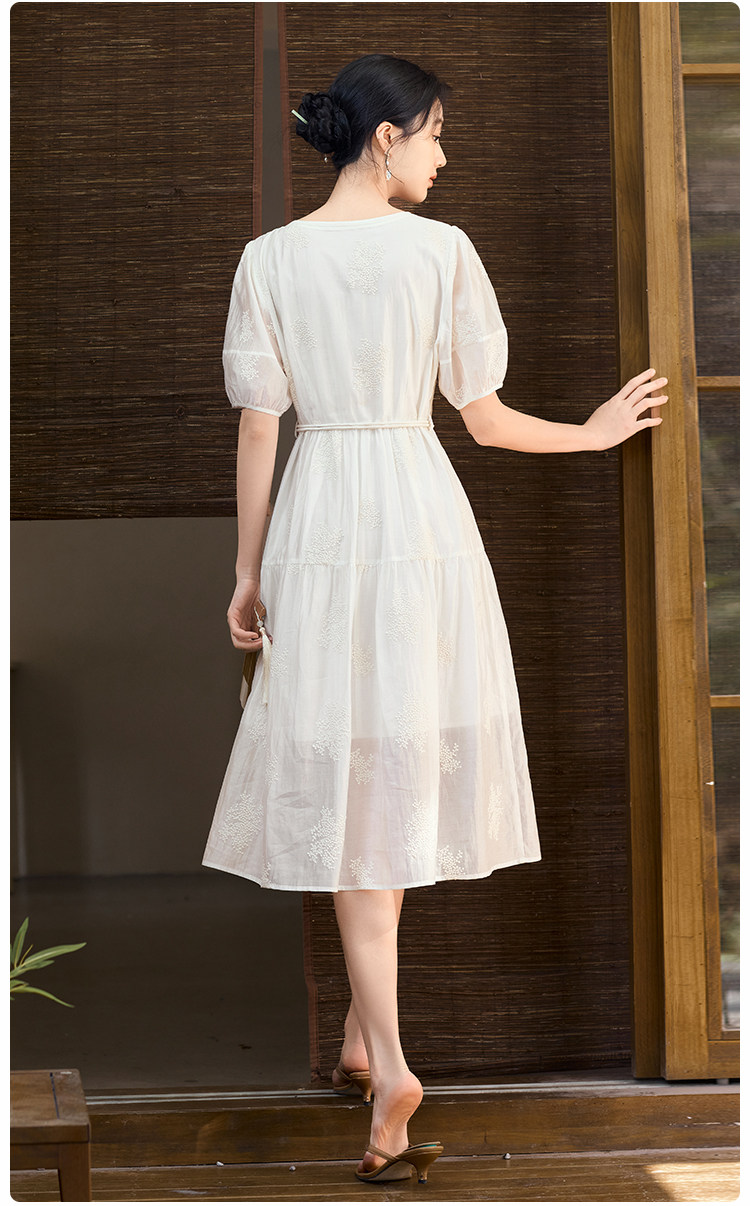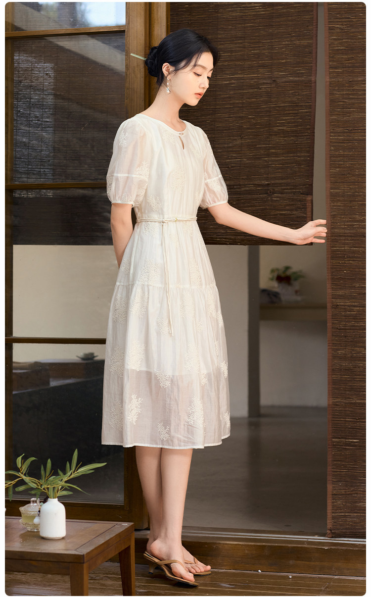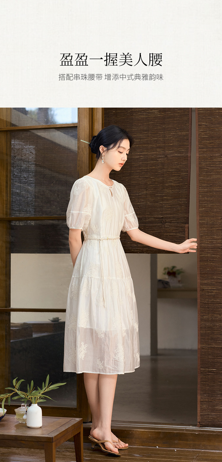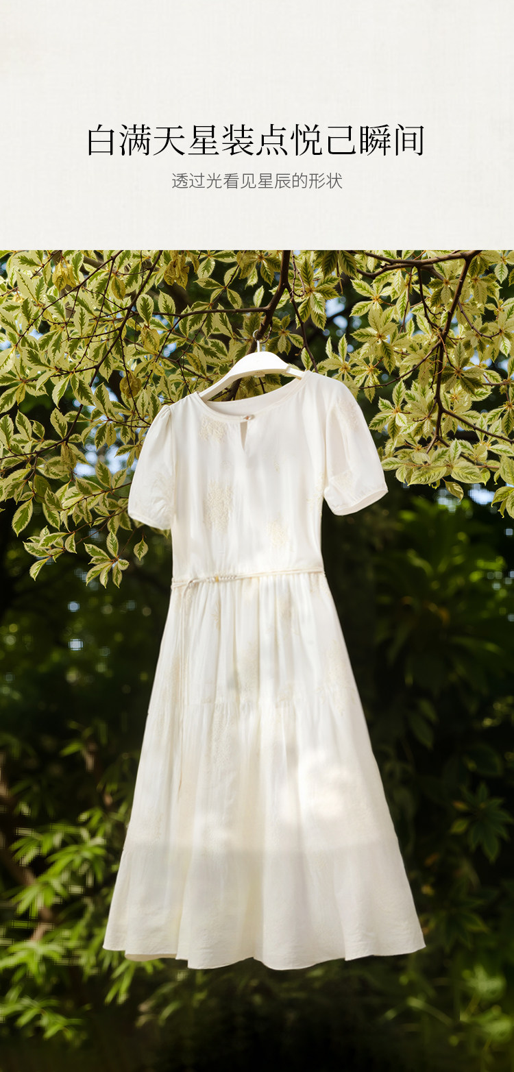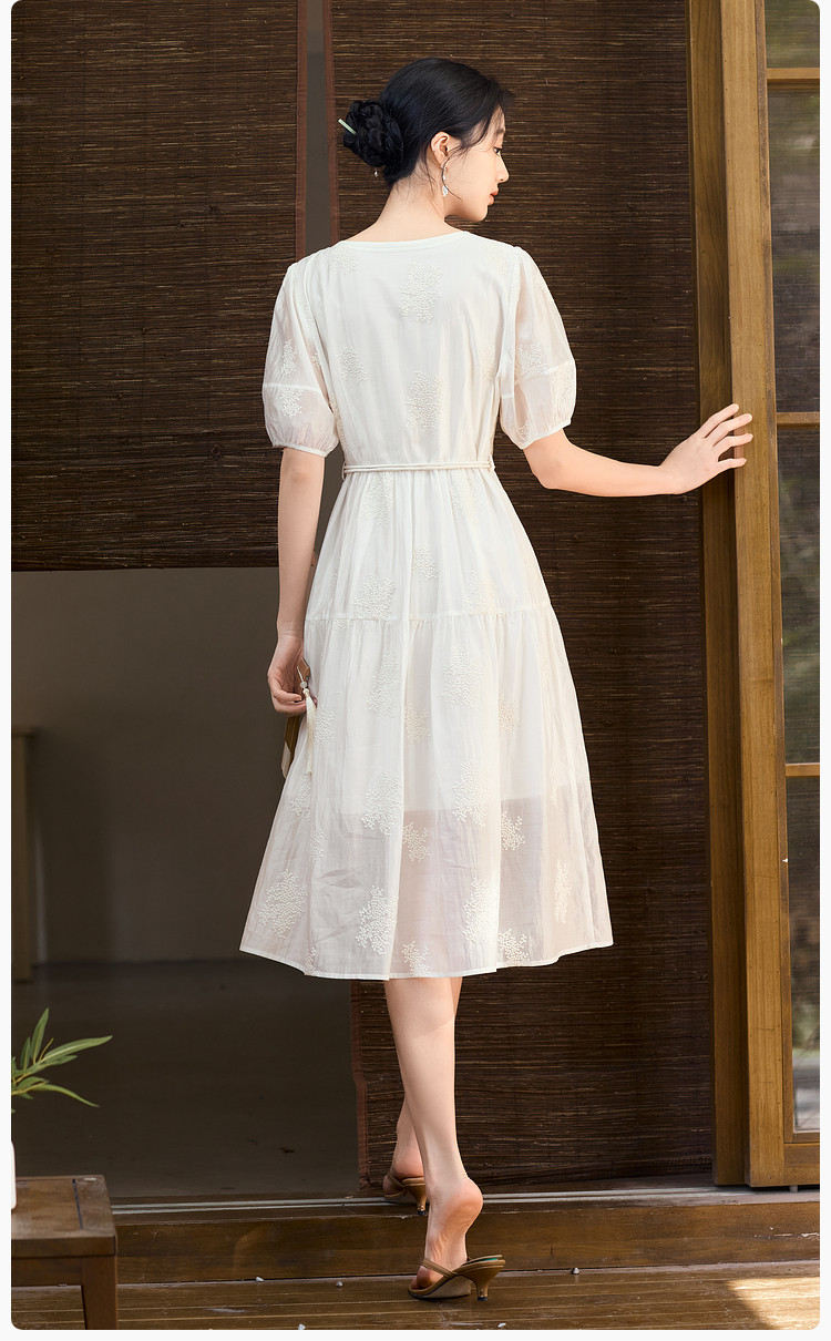 [New Chinese Style]Xiangying New Chinese-Style White Dress for Women 2025 Summer New Lyocell Tencel Embroidered Dress