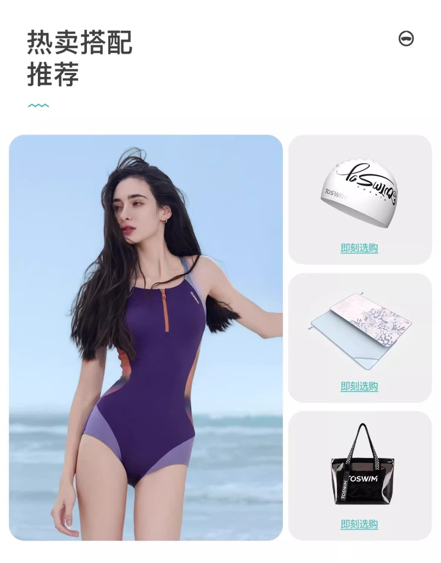 颜色分类 【在中国有300万精致中产选择TOSWIM】,①【烟霞紫韵】泳衣,②【穿搭两件套】泳衣+短裤,③【游泳三件套】泳衣+泳镜+泳帽,④【度假三件套】泳衣+浴巾+包,⑤【游泳五件套】泳衣+泳镜+泳帽+浴巾+包,⑥【女神十件套】衣+镜帽+巾+包+洗护+耳鼻+防雾,【浮光橙影】泳衣,浮光蓝影