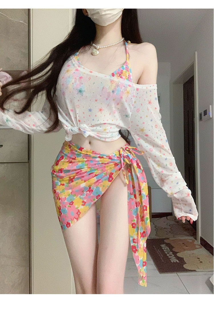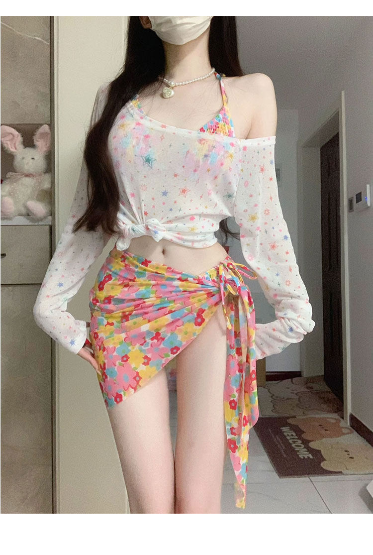 2025新款泳衣女性感比基尼小胸分体三件套海边度假泡温泉罩衫防晒