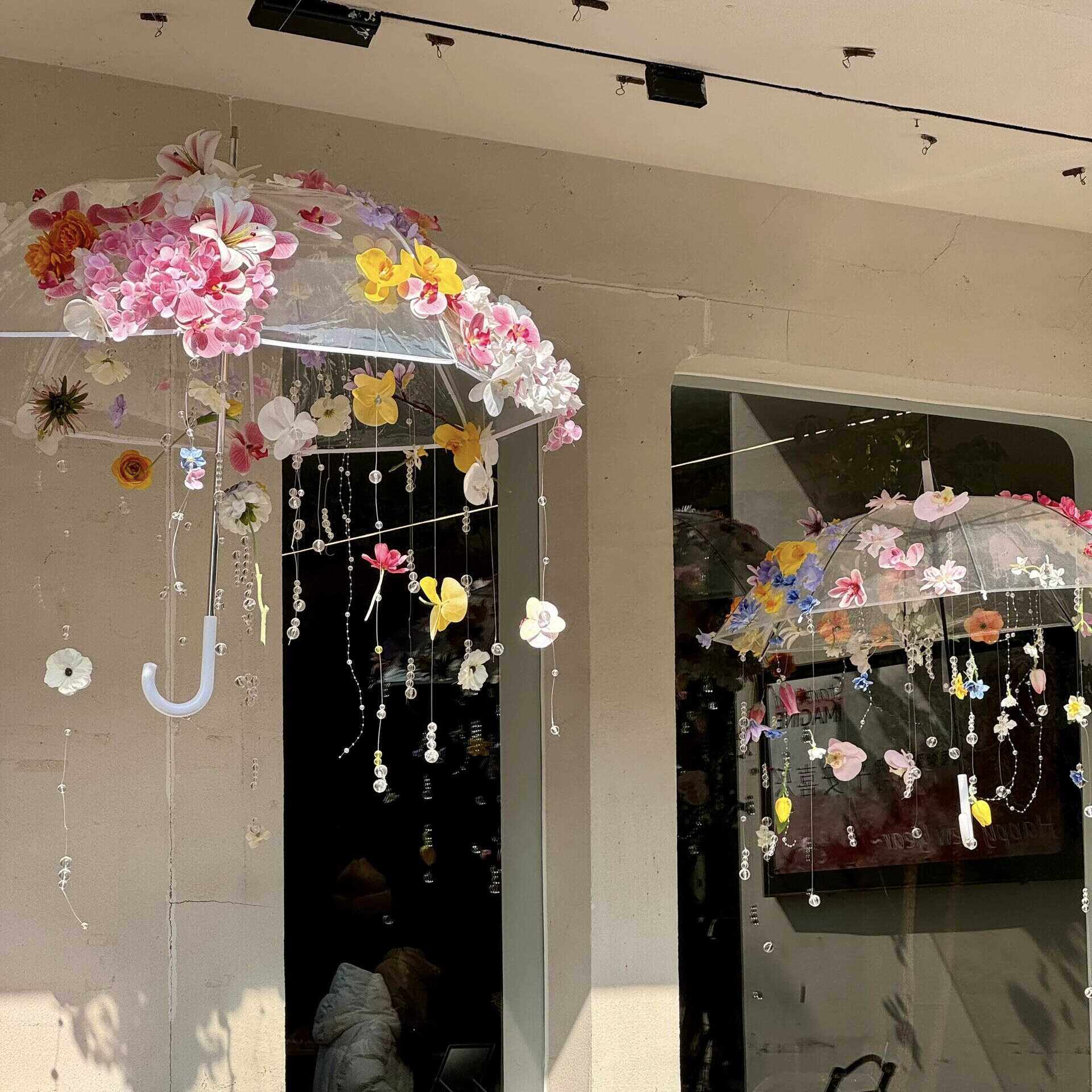 仿真花伞悬浮花店铺氛围布置装饰吸引人背景拍照道具橱窗打卡布置