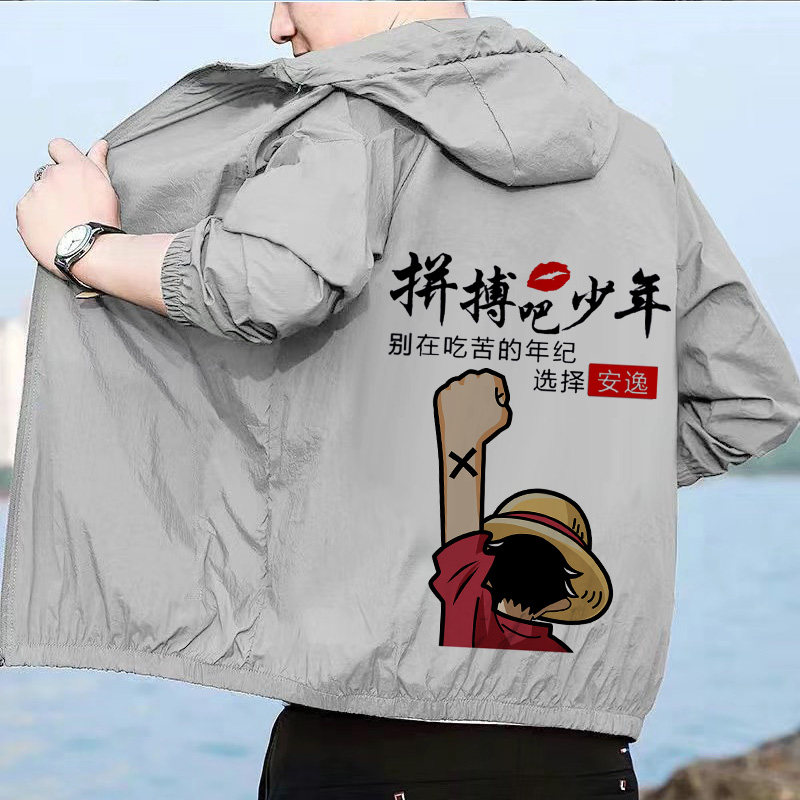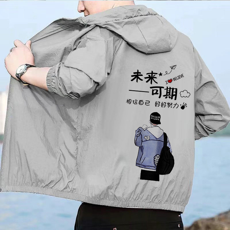 Ropa de protección solar de seda de hielo de verano nueva tendencia cortavientos con capucha ultrafina para hombres chaqueta deportiva suelta ropa de protección solar tendencia de los hombres