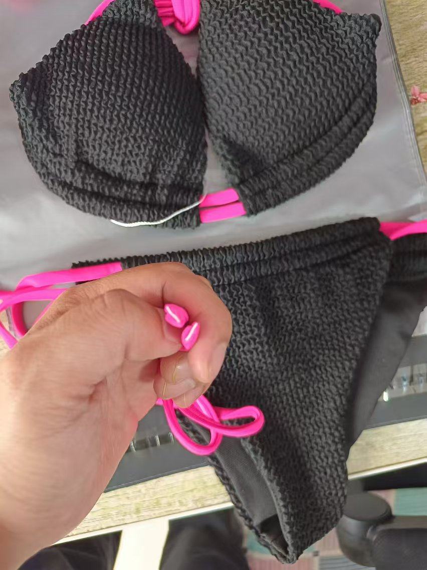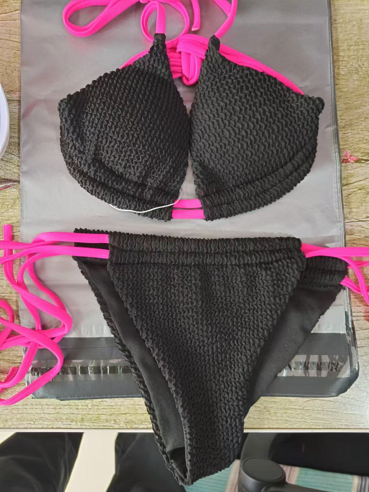 2024性感比基尼ins同款撞色女士分体泳衣挂脖系带泡温泉泳衣特价