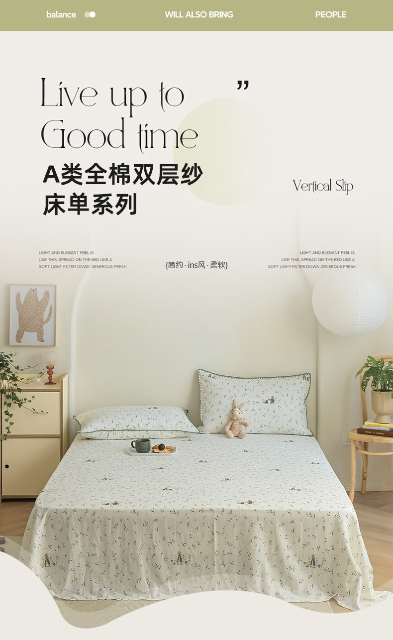 无印良品纯棉双层纱床单单件100全棉夏季单人被单枕套三件套家用2
