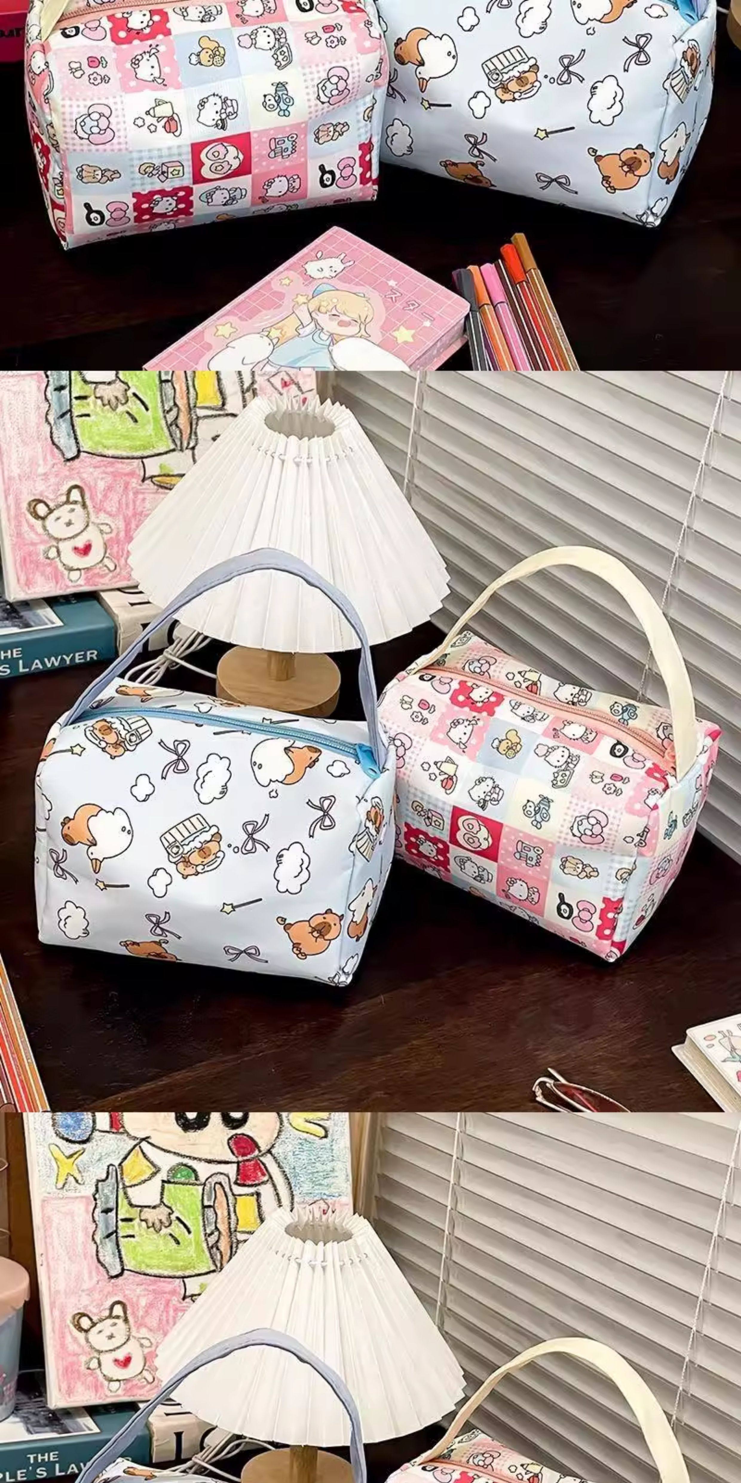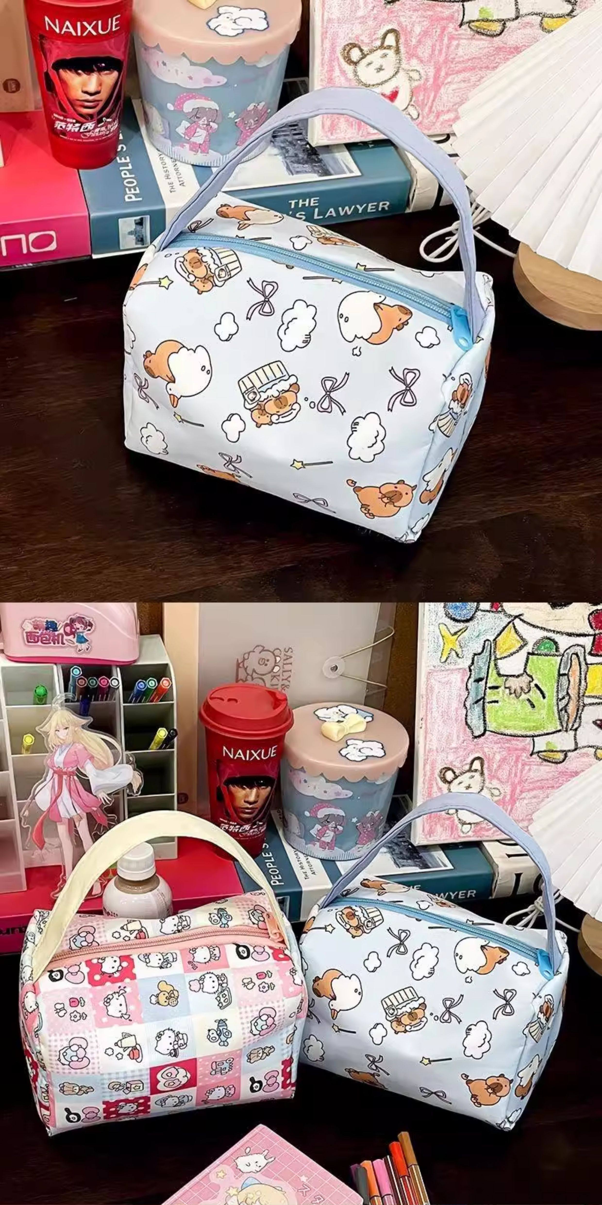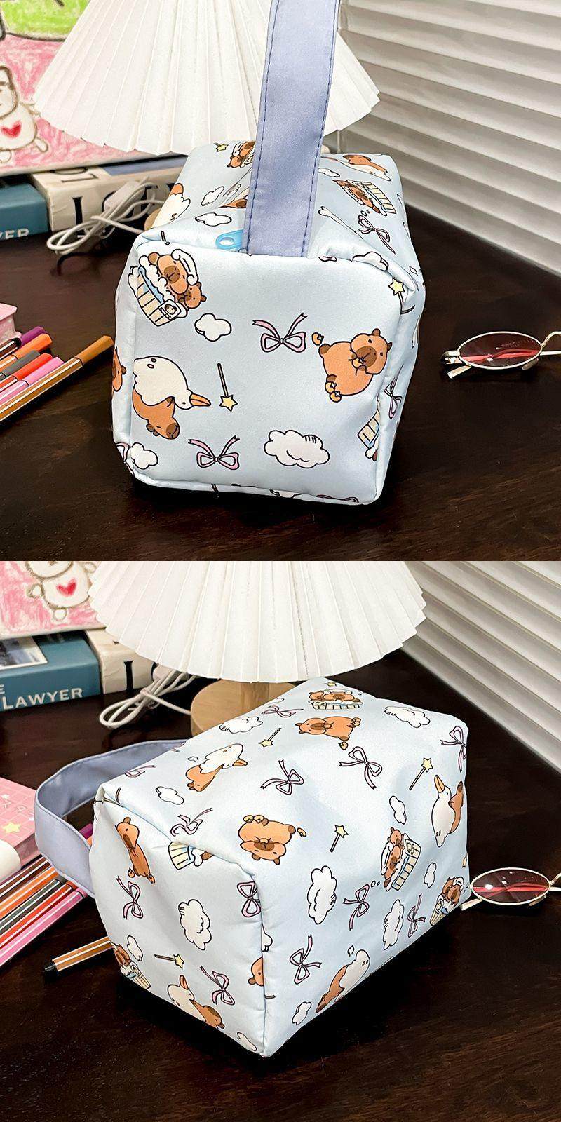颜色分类 卡皮巴拉化妆包手提升级加厚款,棋盘格KT猫化妆包手提升级加厚款,白KT猫升级加厚款,随机颜色升级加厚款