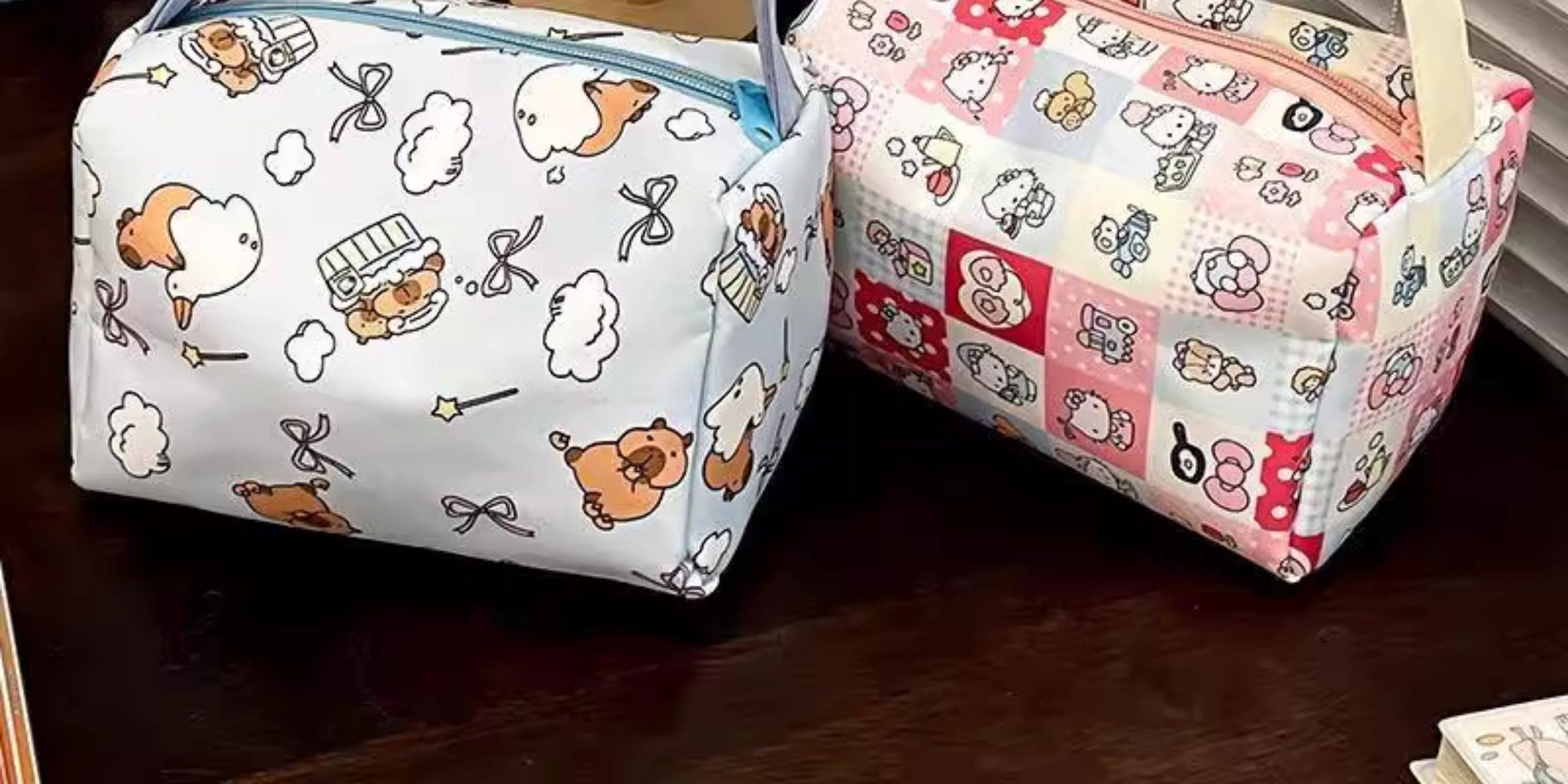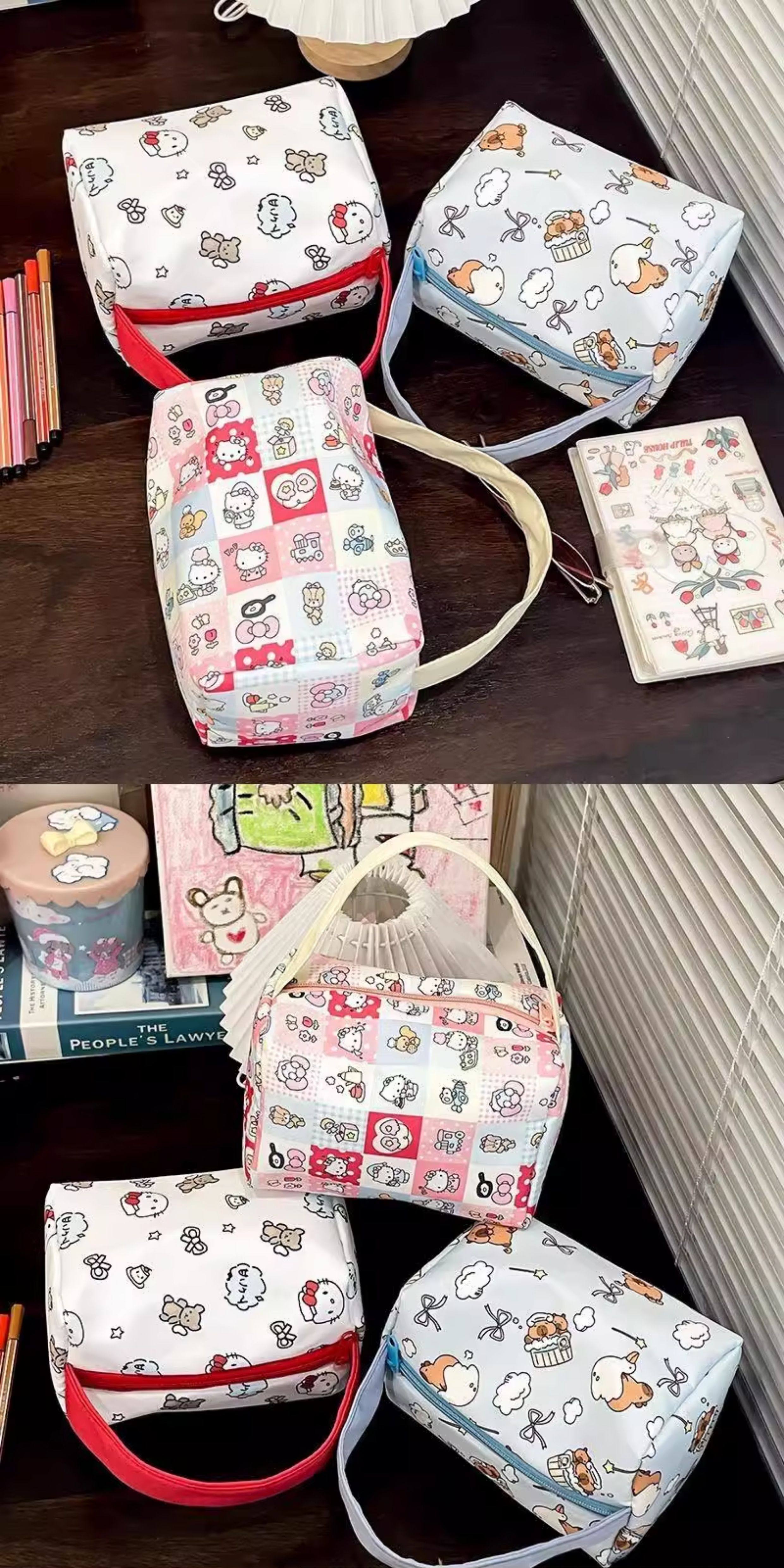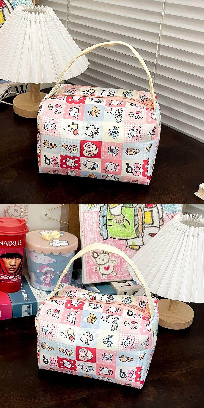 颜色分类 卡皮巴拉化妆包手提升级加厚款,棋盘格KT猫化妆包手提升级加厚款,白KT猫升级加厚款,随机颜色升级加厚款