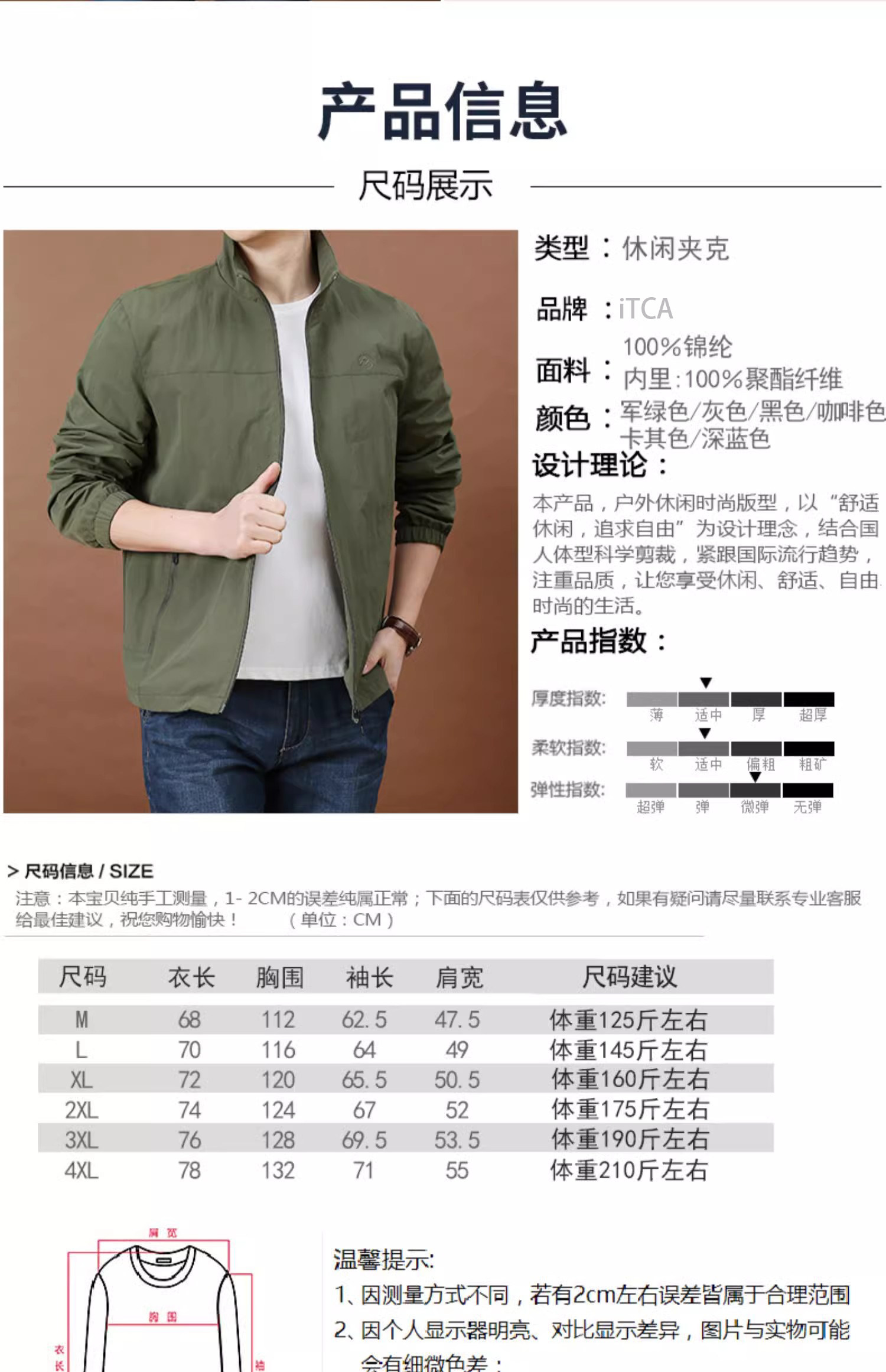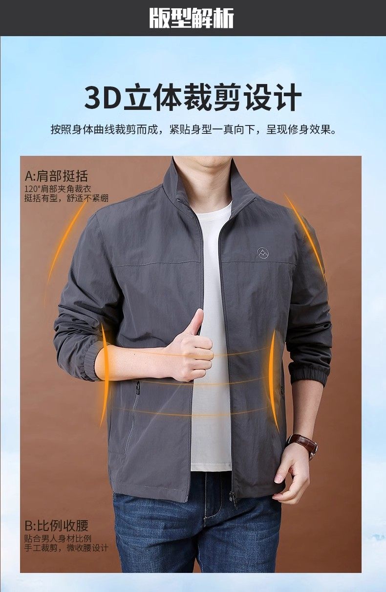 2025春秋户外运动大码宽松夹克衫男时尚休闲舒适弹力茄克衫外套潮
