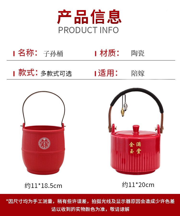 Color Classification Descendants Bucket [Jinyumantang] Single (about 11*18.5cm),A Pair of Descendants Buckets [Jinyumantang] (about 11*18.5cm),A Pair of Descendants Buckets [Jinyumantang] + Burden,"Good Fortune Bucket" - Single (Approx. 11*20cm) - "Early Blessing" Design,A Pair of "Early Blessings" Baby Buckets (Approx. 11*20cm),A Pair of Descendants Barrels [Have a Baby Early] + Burden