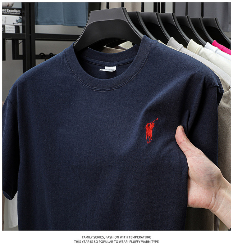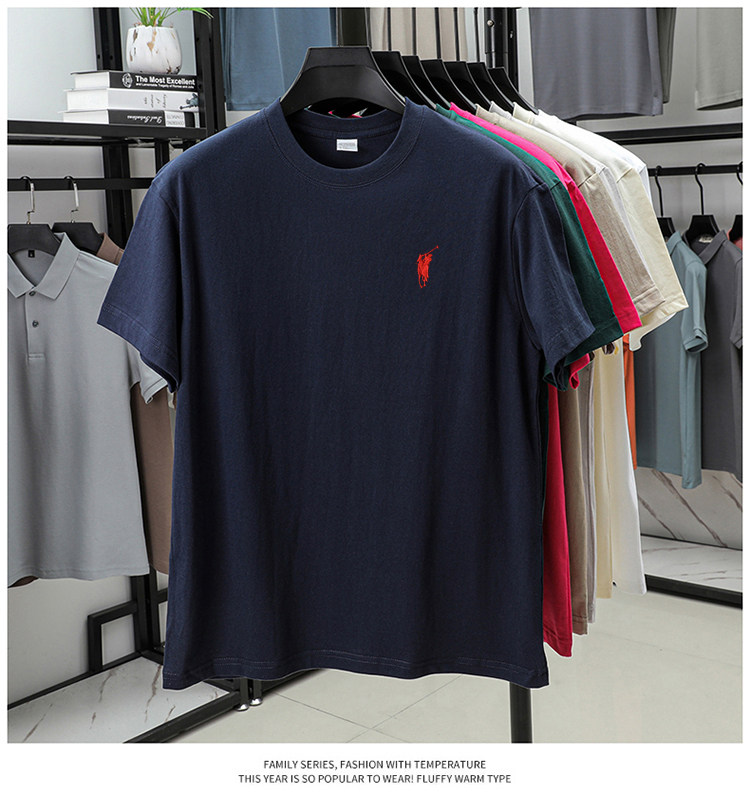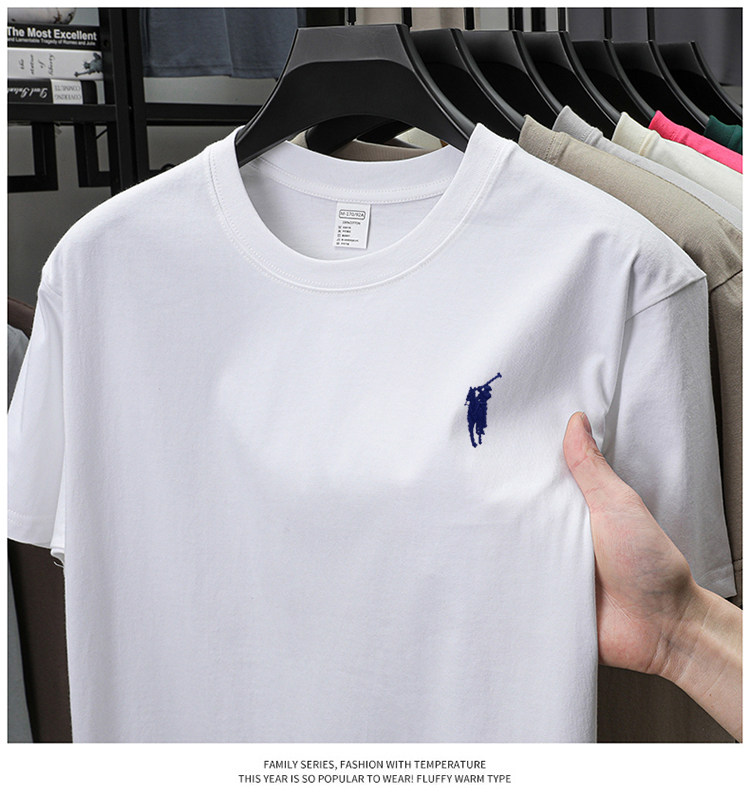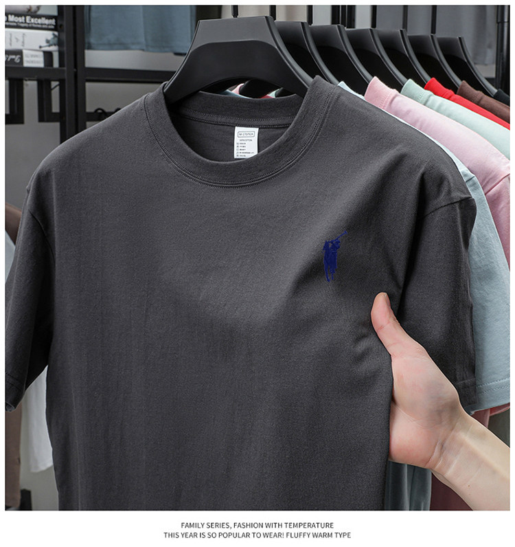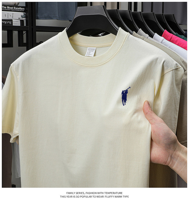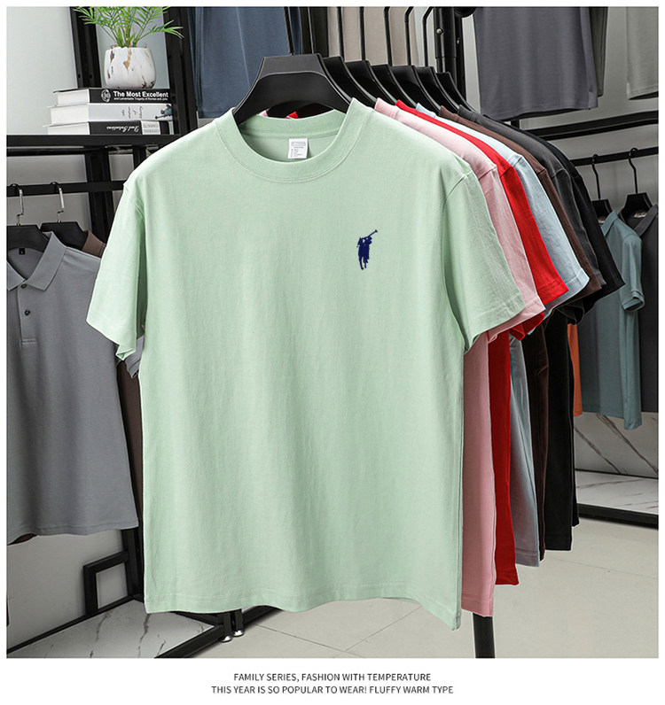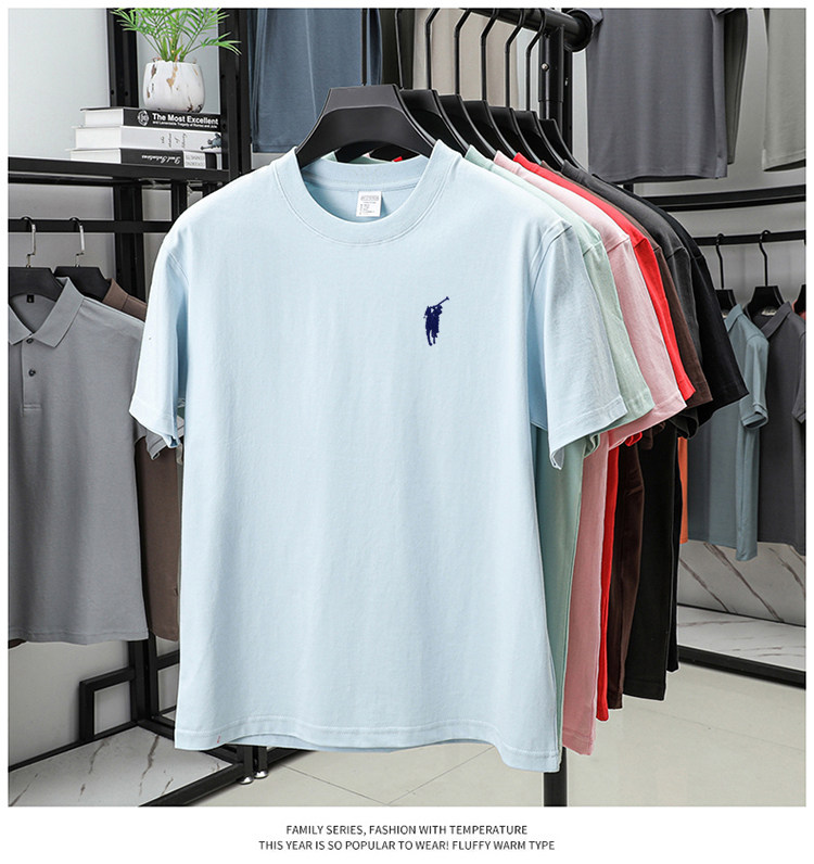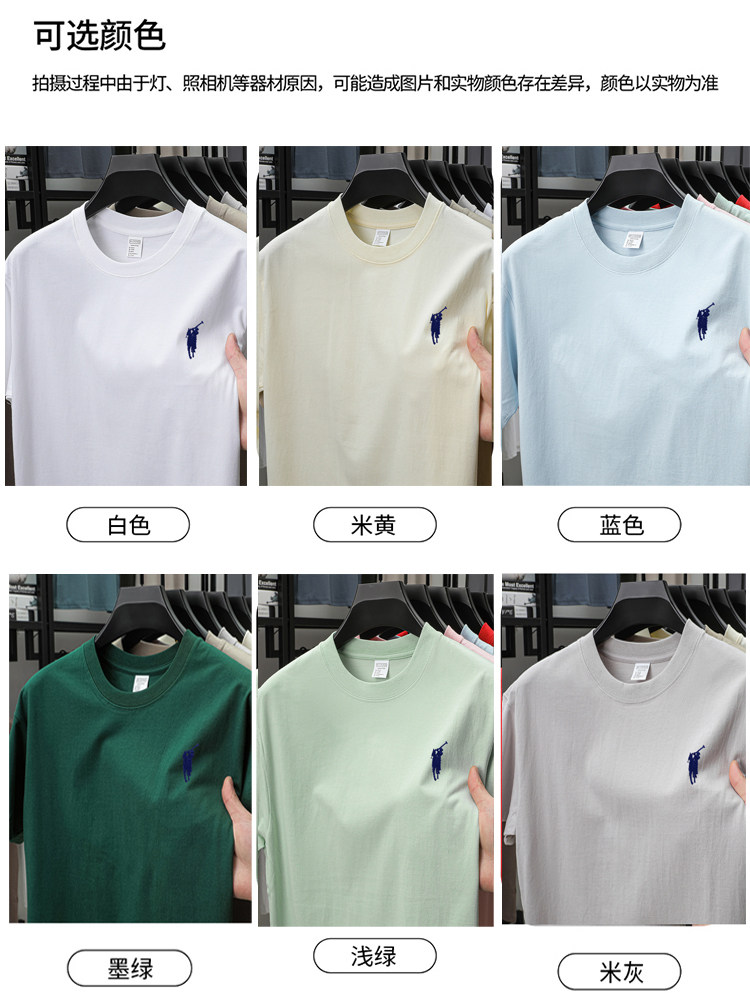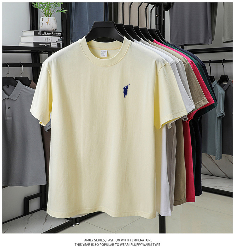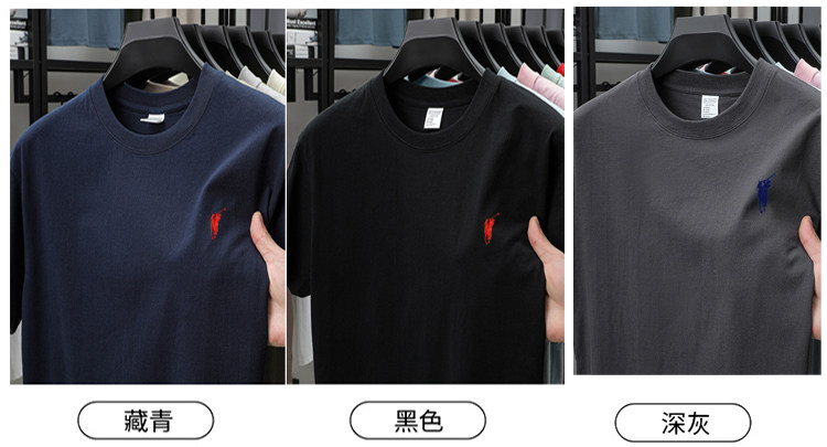 奥莱保罗(两件装)小马标刺绣230克重磅纯棉短袖T恤圆领纯色男装