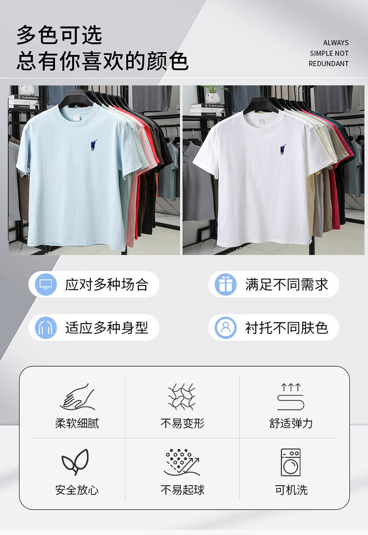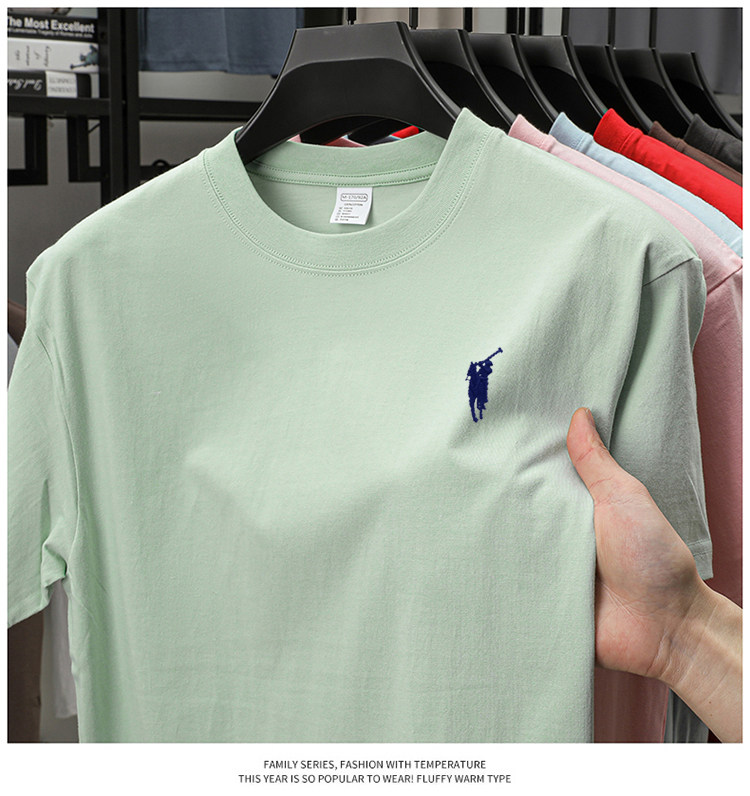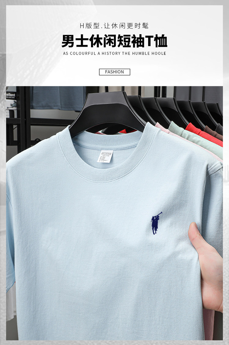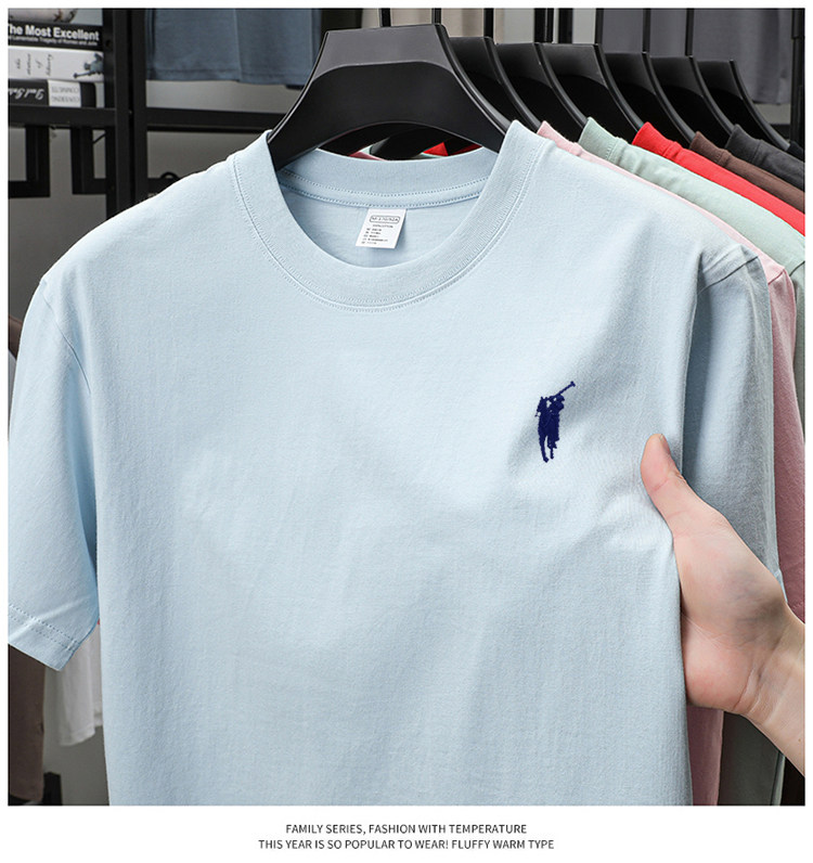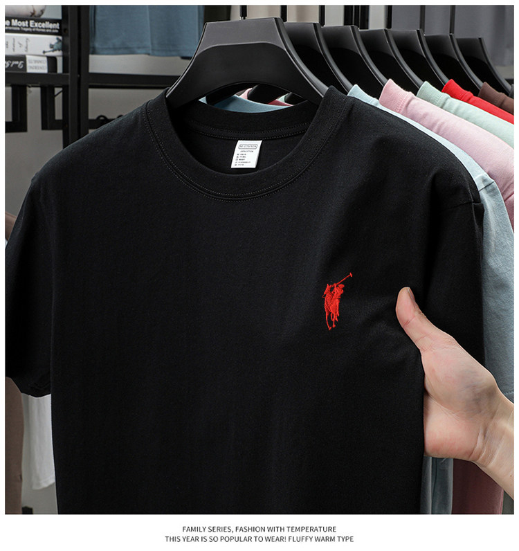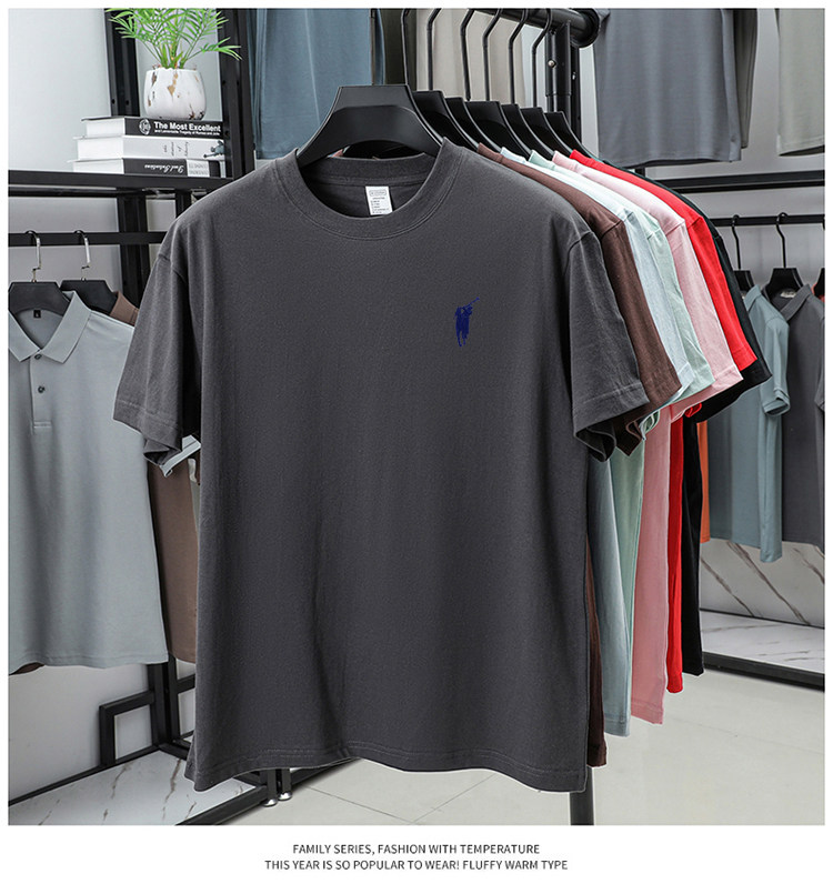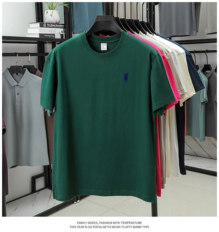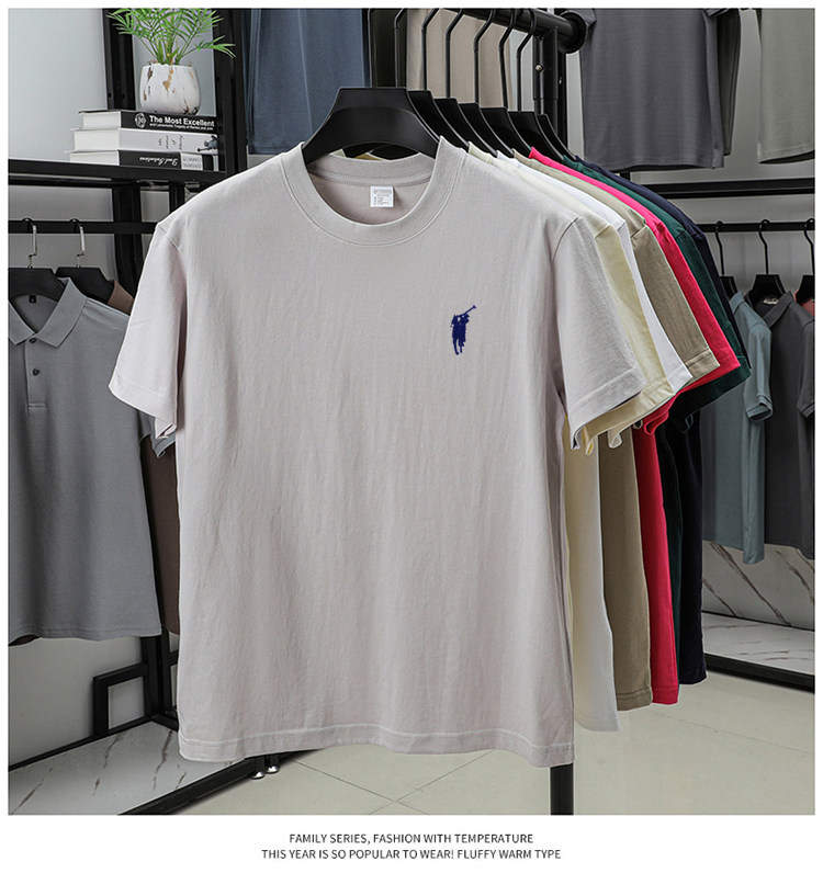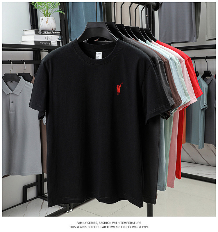 奥莱保罗(两件装)小马标刺绣230克重磅纯棉短袖T恤圆领纯色男装