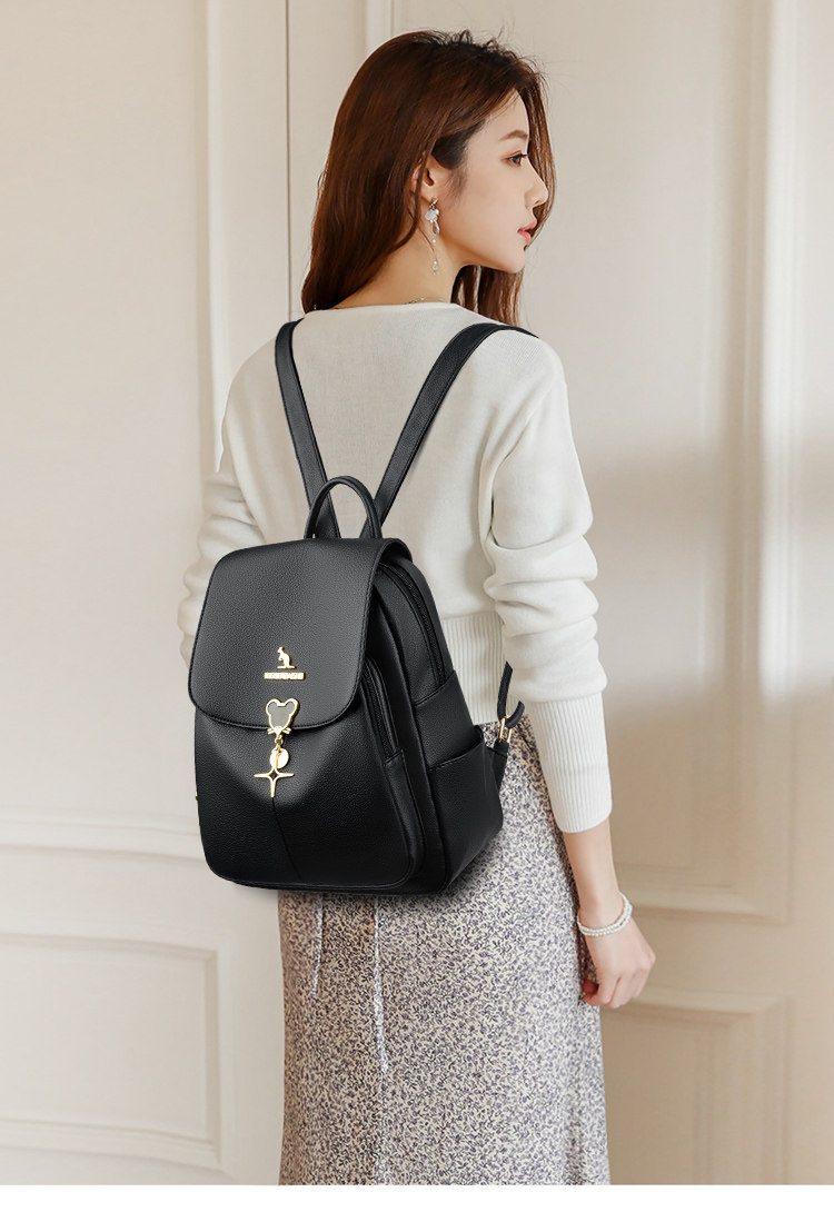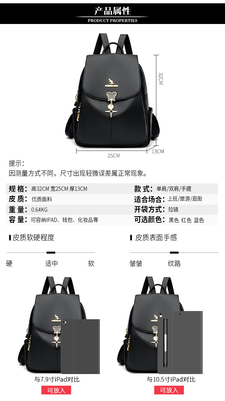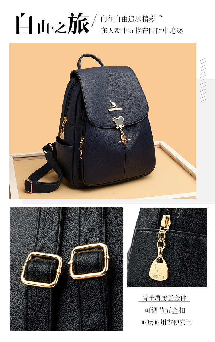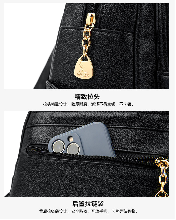 威森软皮双肩包女2025新款时尚休闲背包女生斜跨单肩包包