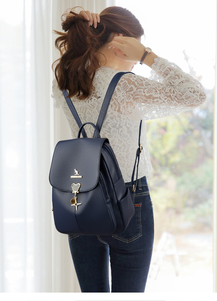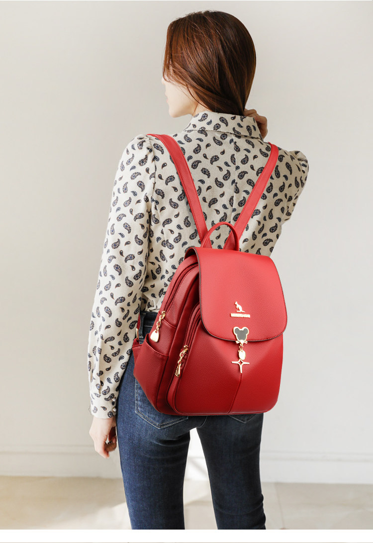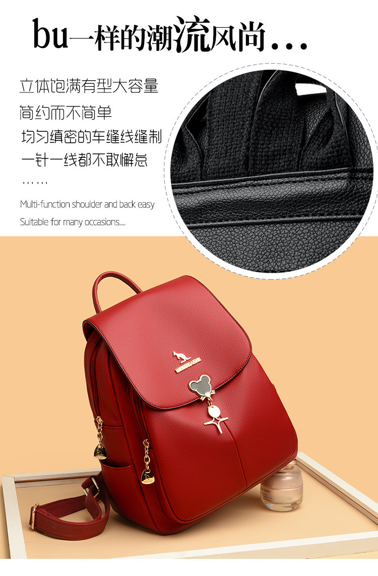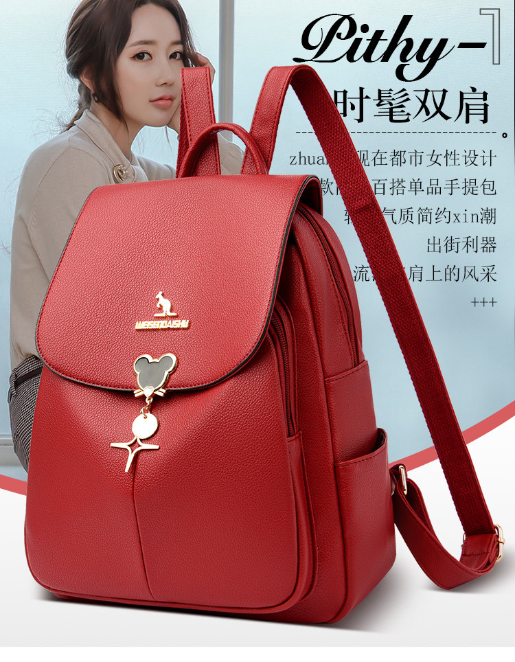 威森软皮双肩包女2025新款时尚休闲背包女生斜跨单肩包包
