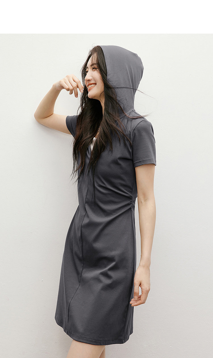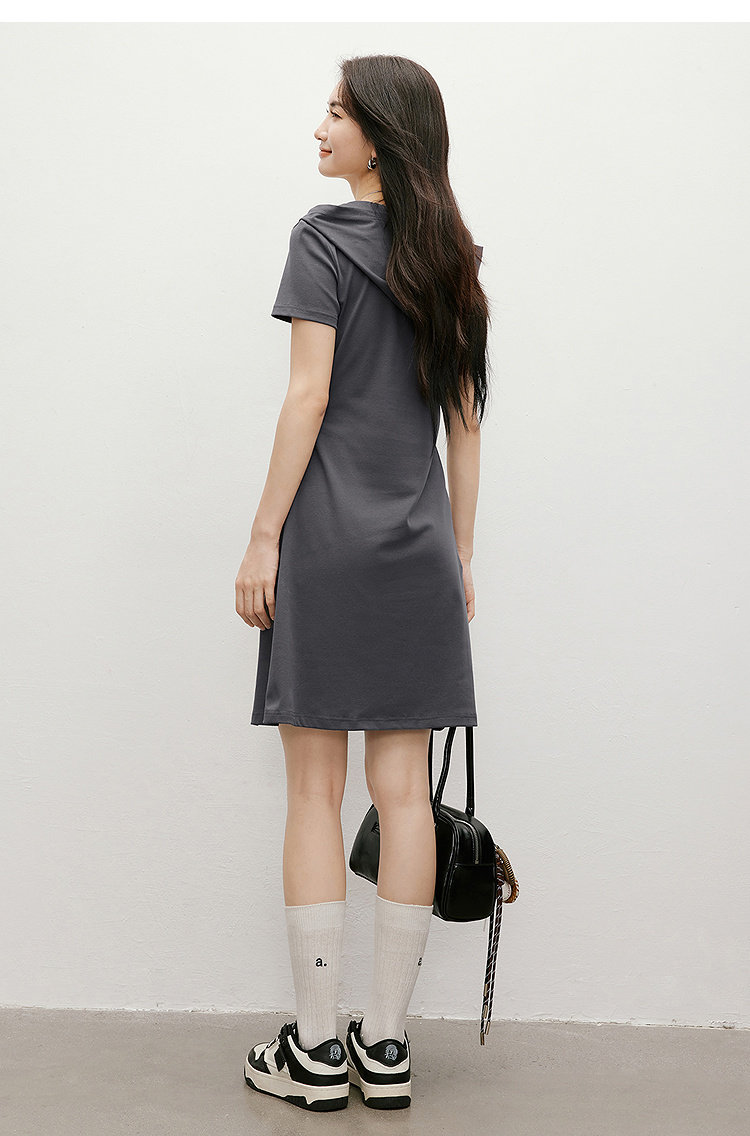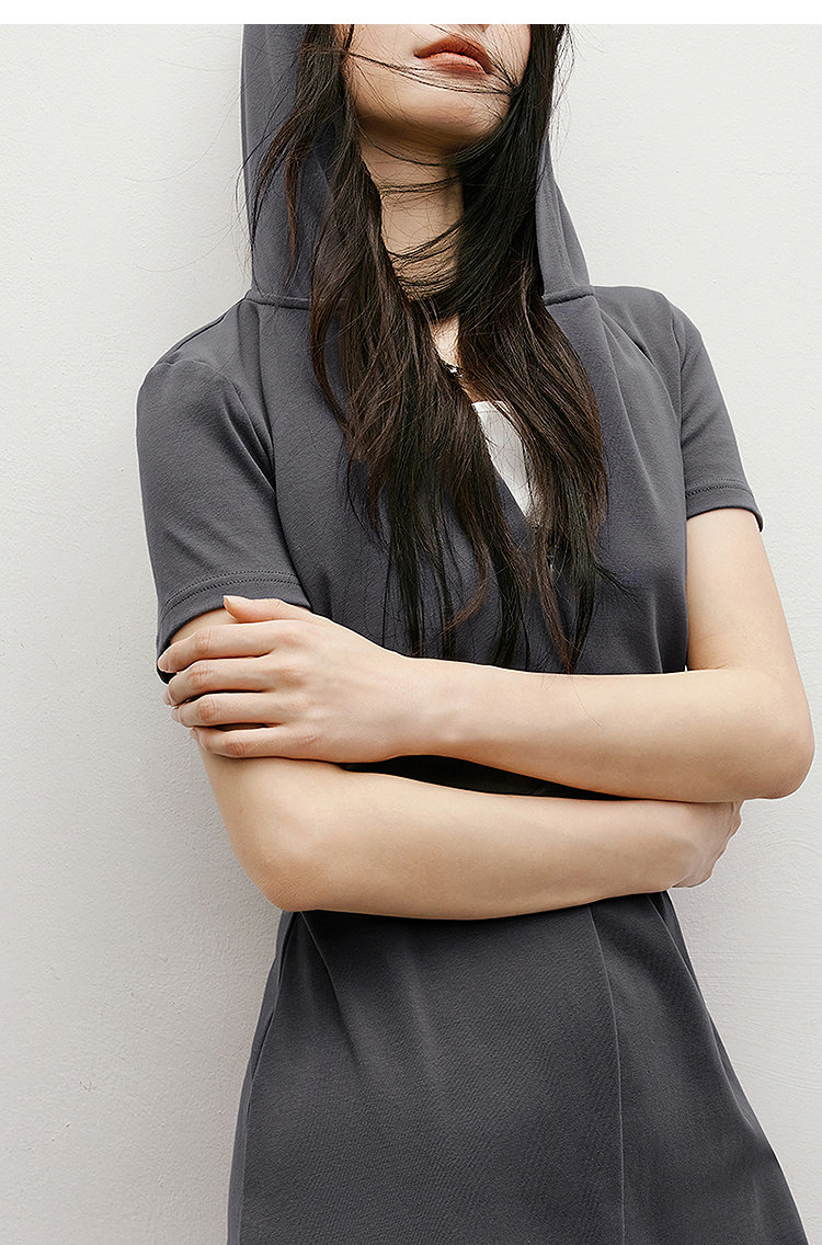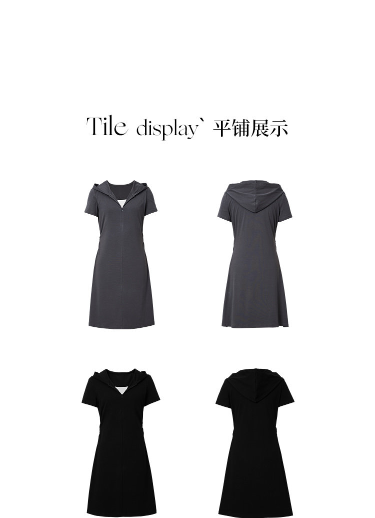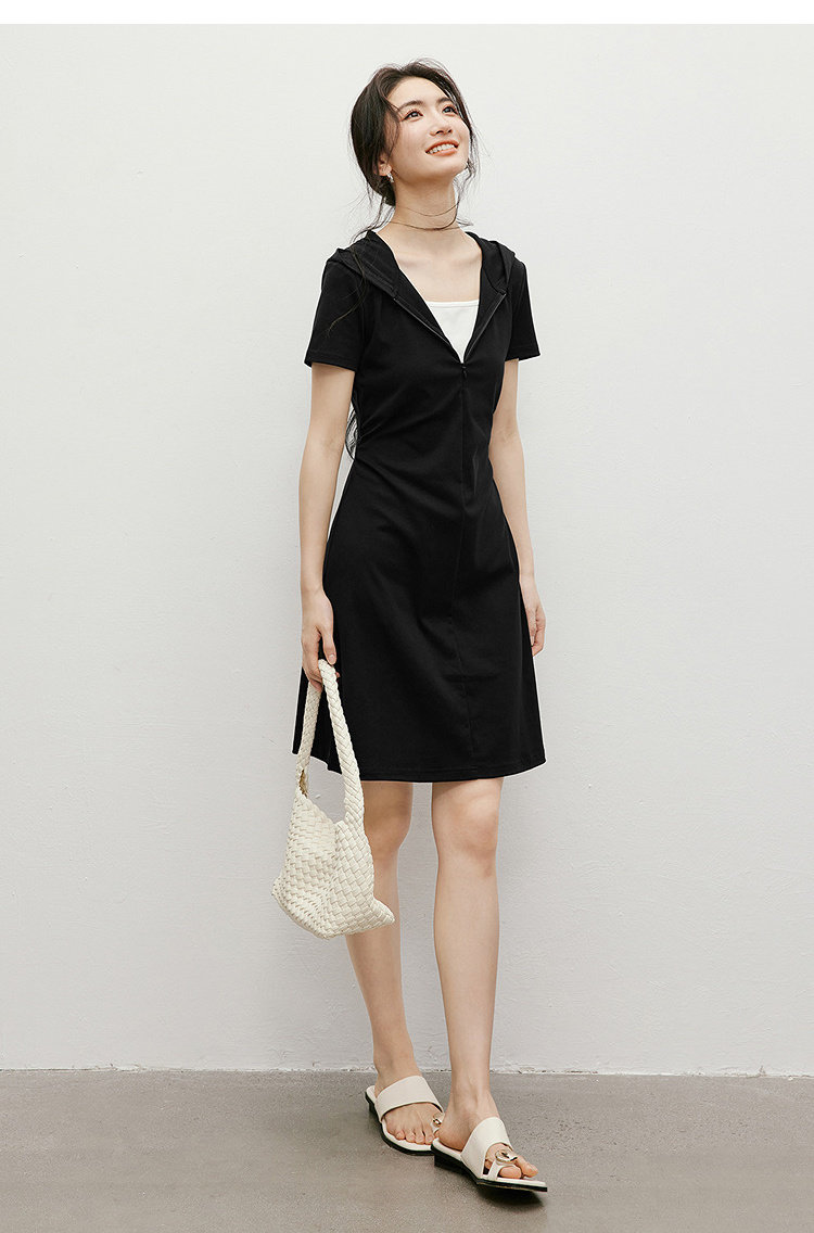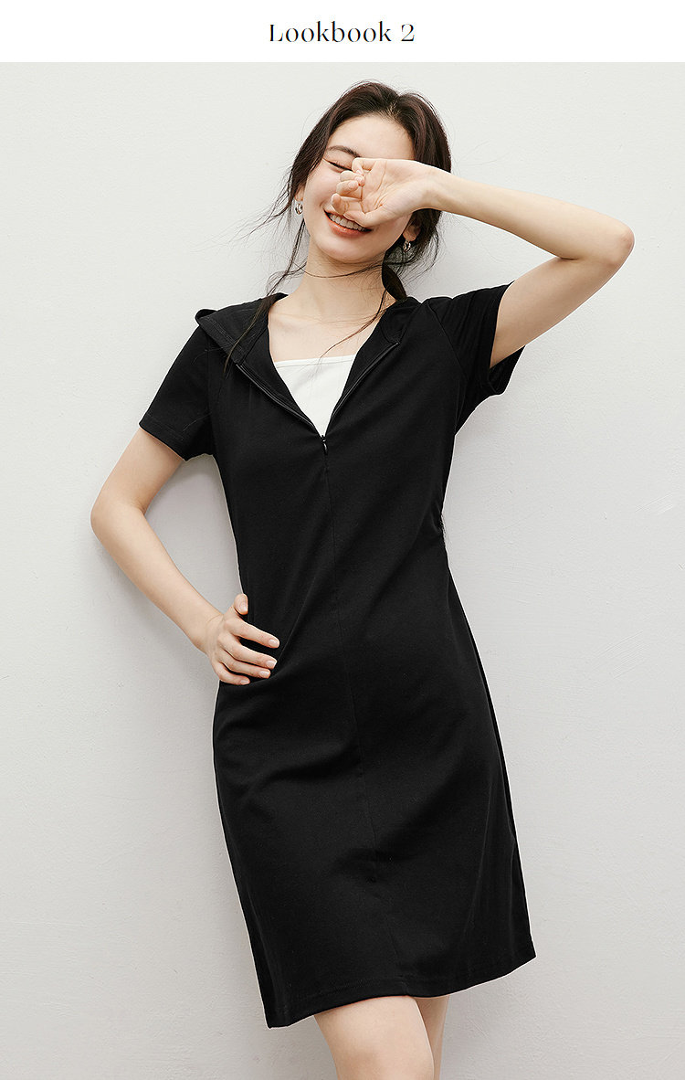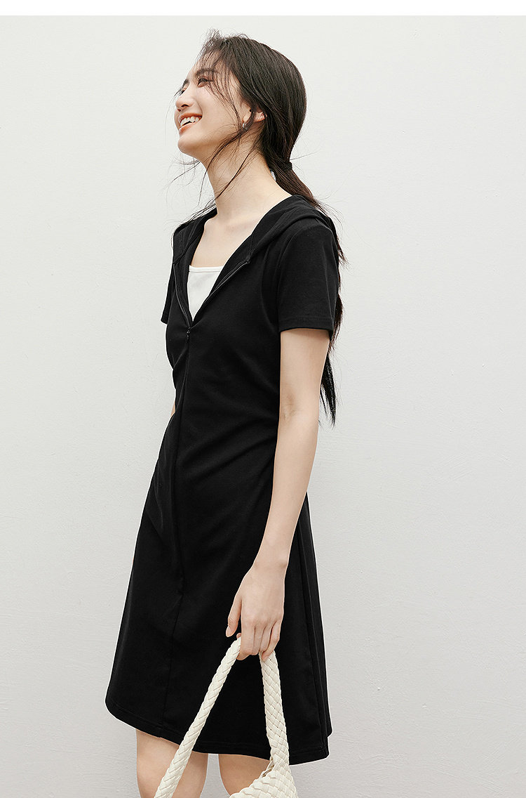 Red Sleeve Casual Dress 2025 Summer New Women's Fashion Fake Two-Piece Patchwork Hooded Collar Unique and Beautiful Waist-Cinching Dress