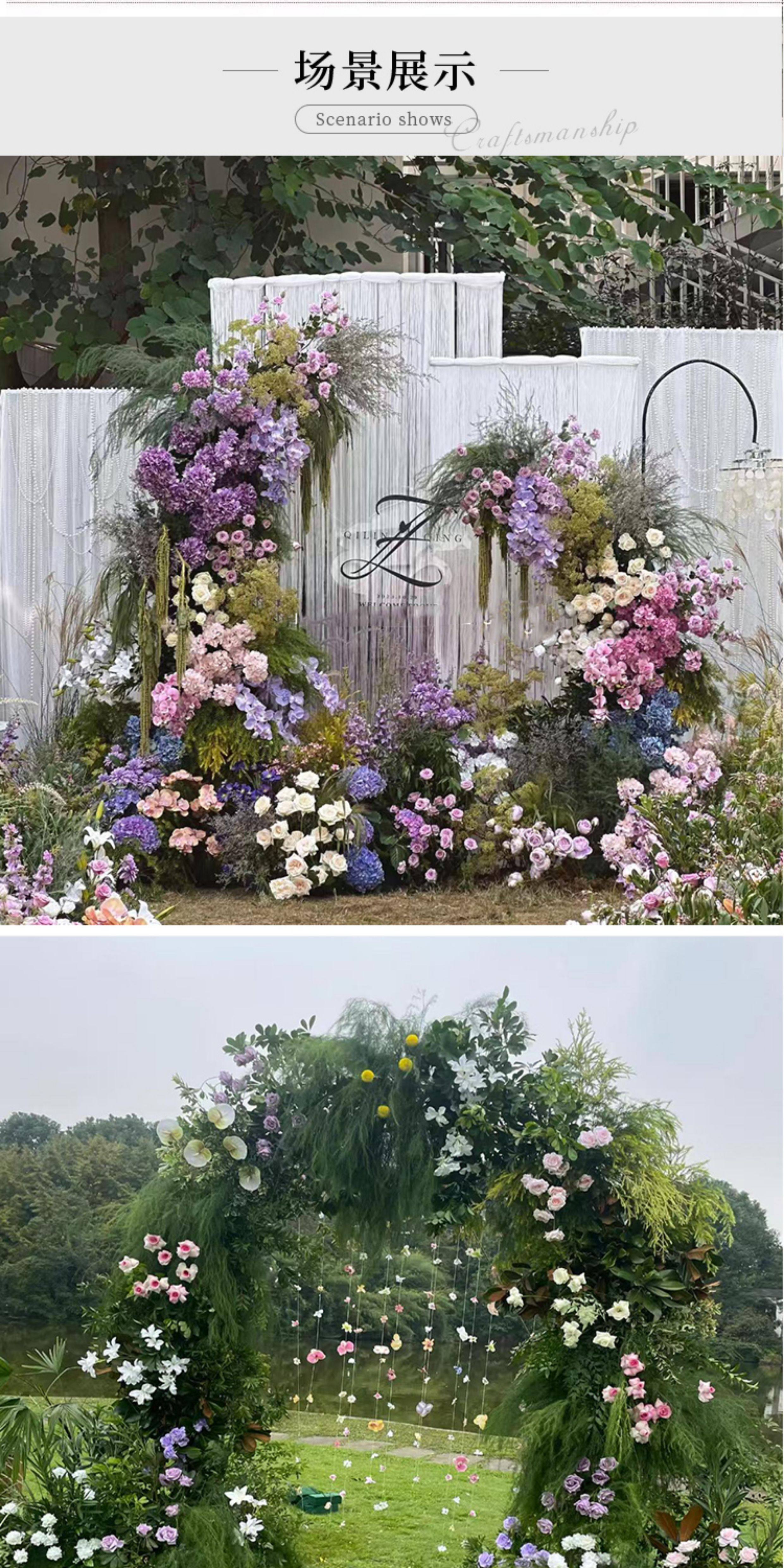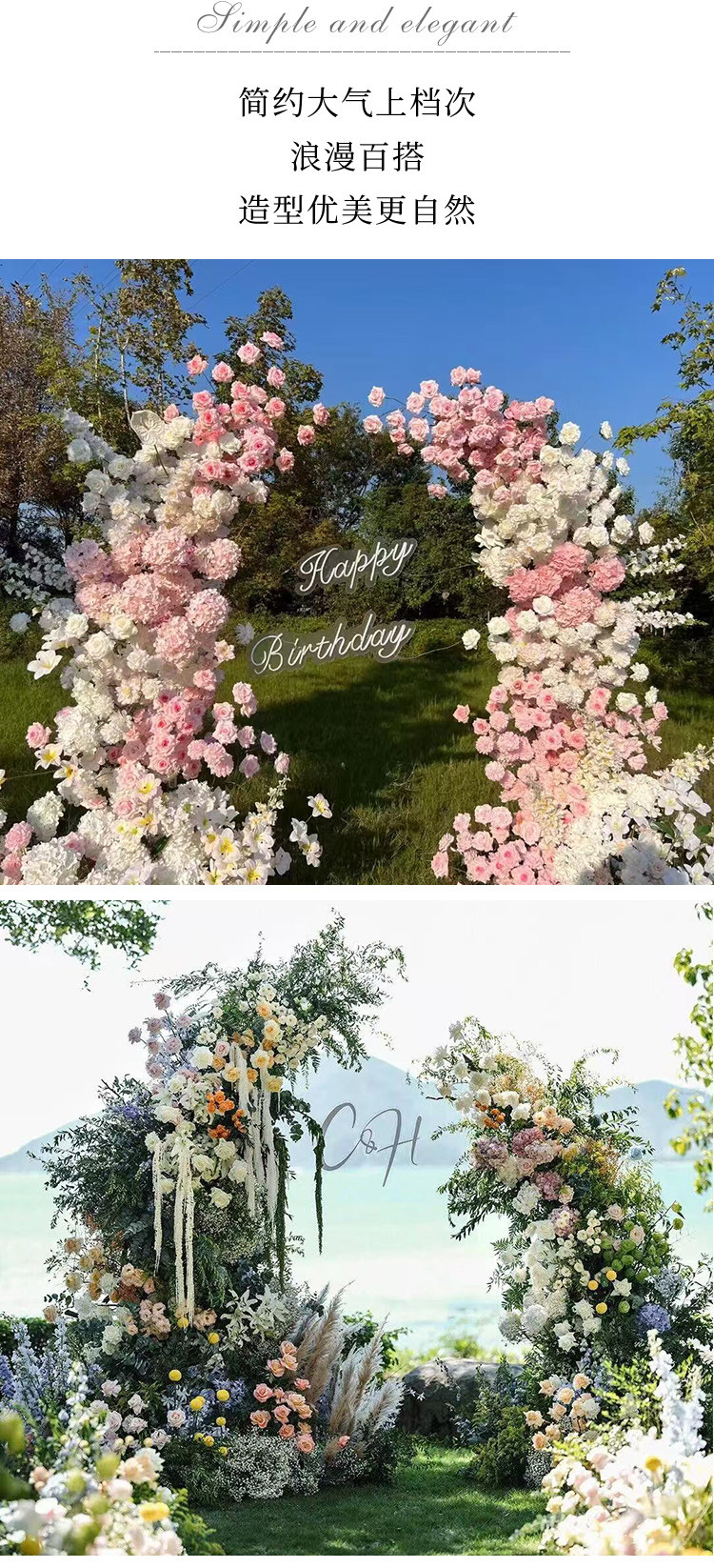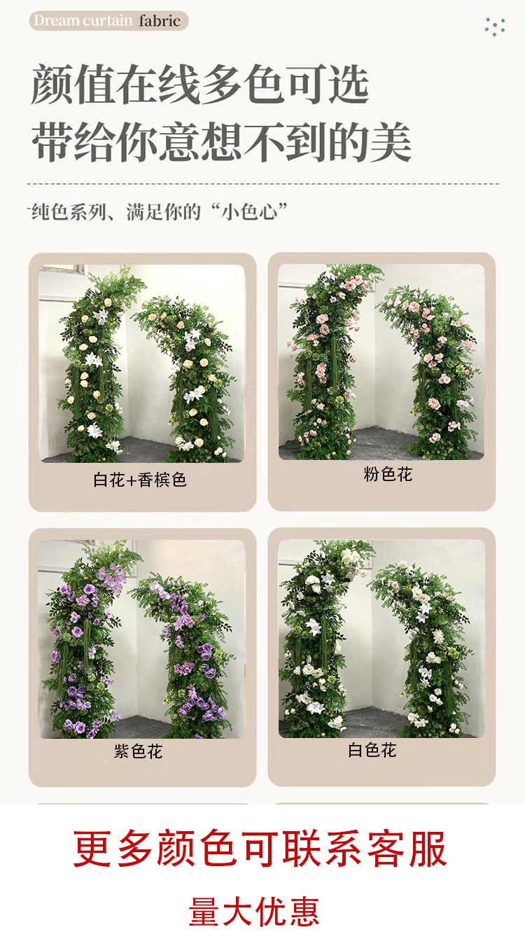 婚庆仿真绿植花艺森系牛角拱门花架户外婚礼橱窗美陈摄影拍照布置