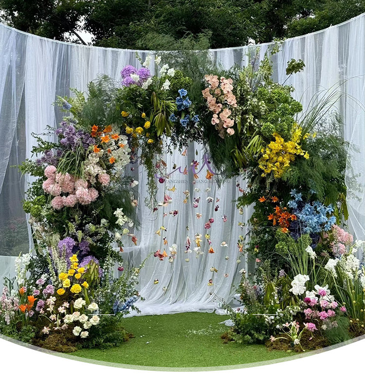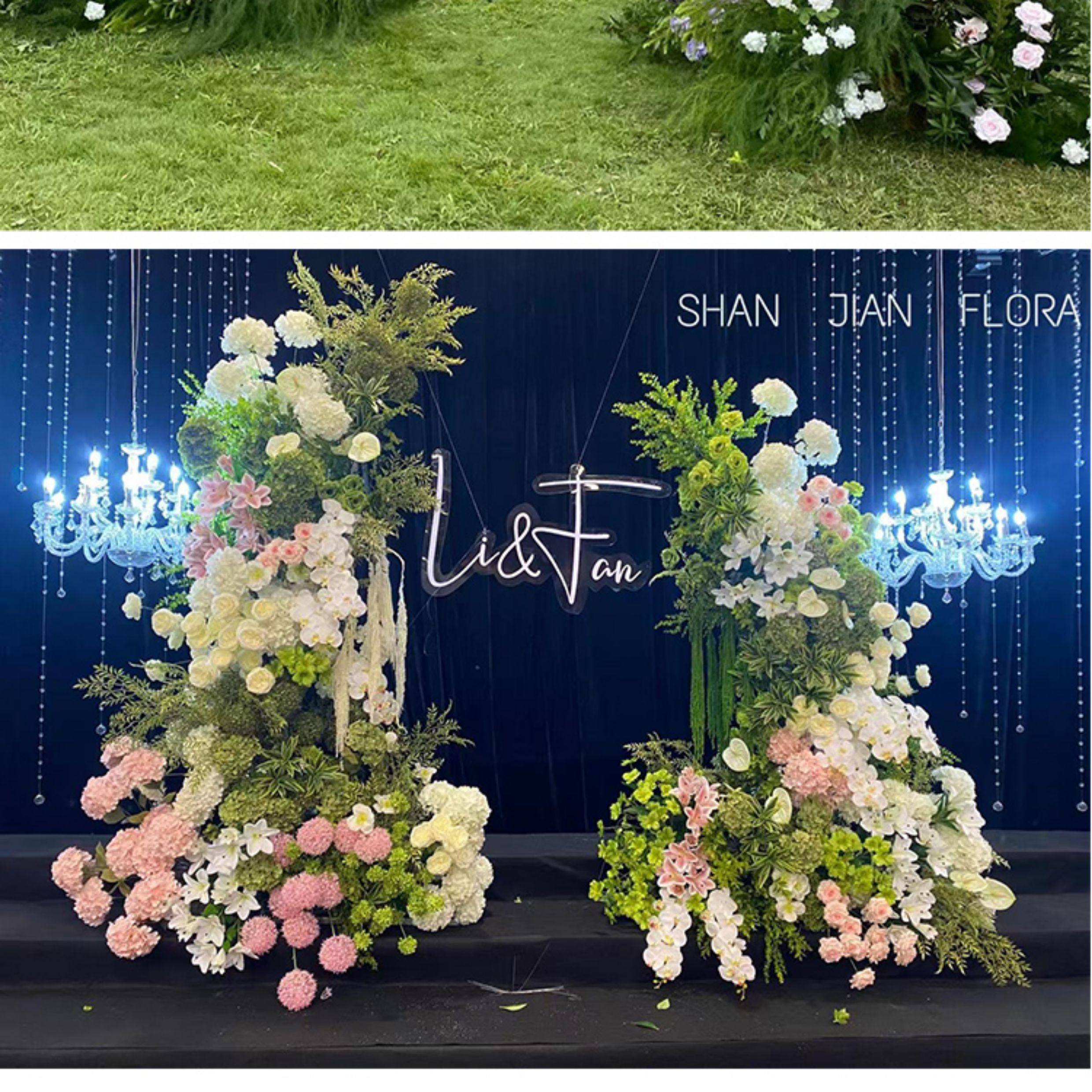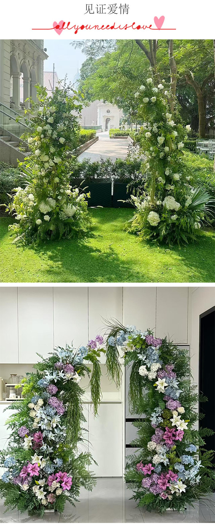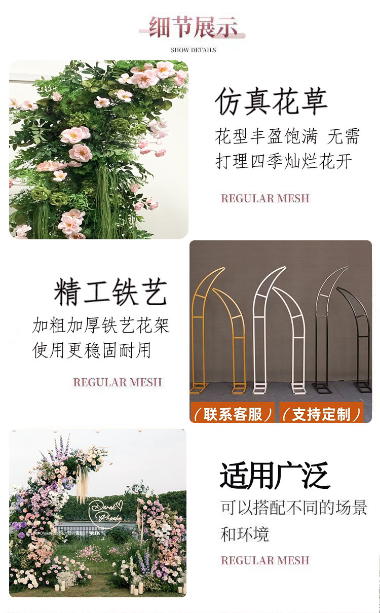 婚庆仿真绿植花艺森系牛角拱门花架户外婚礼橱窗美陈摄影拍照布置