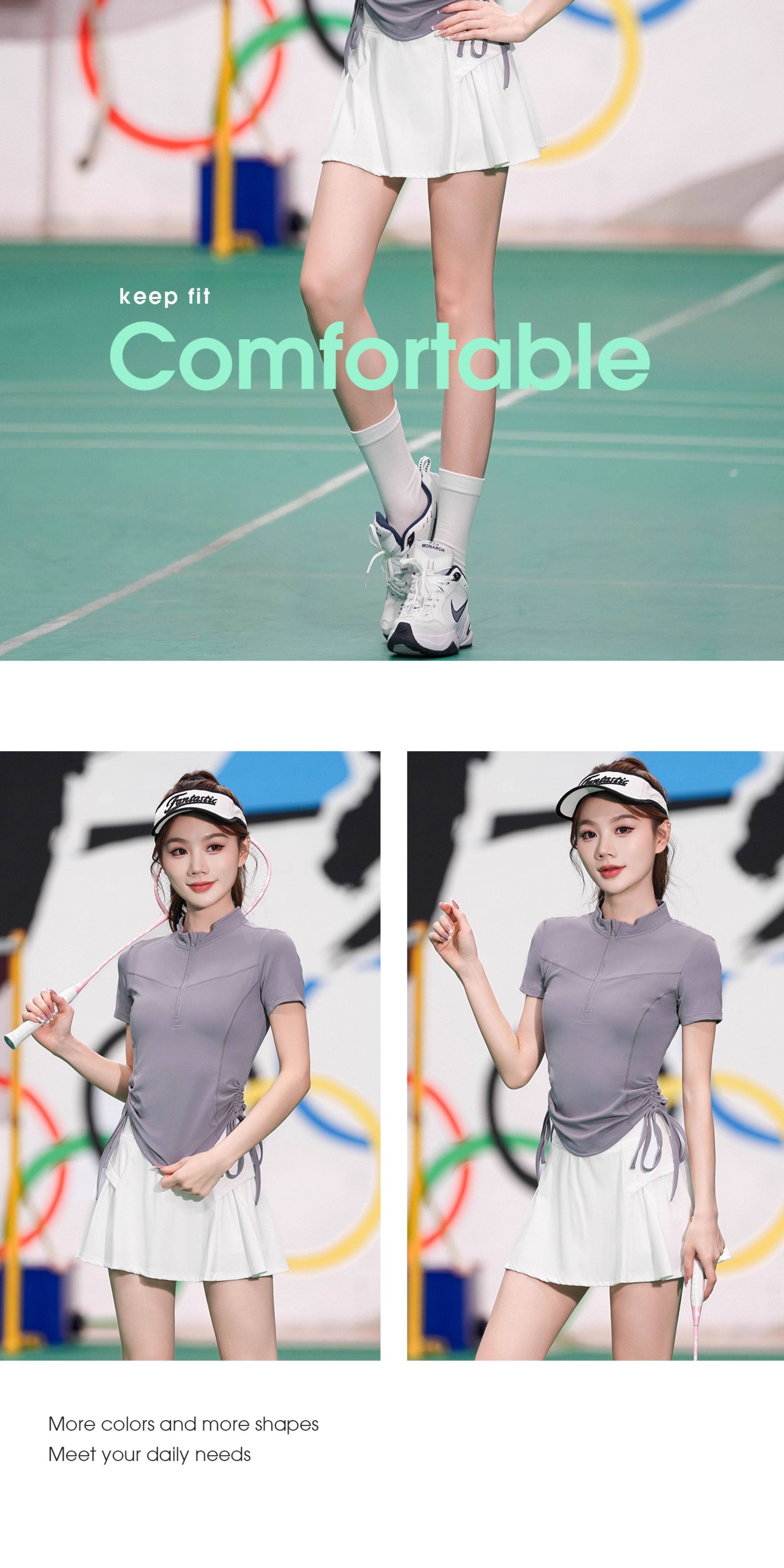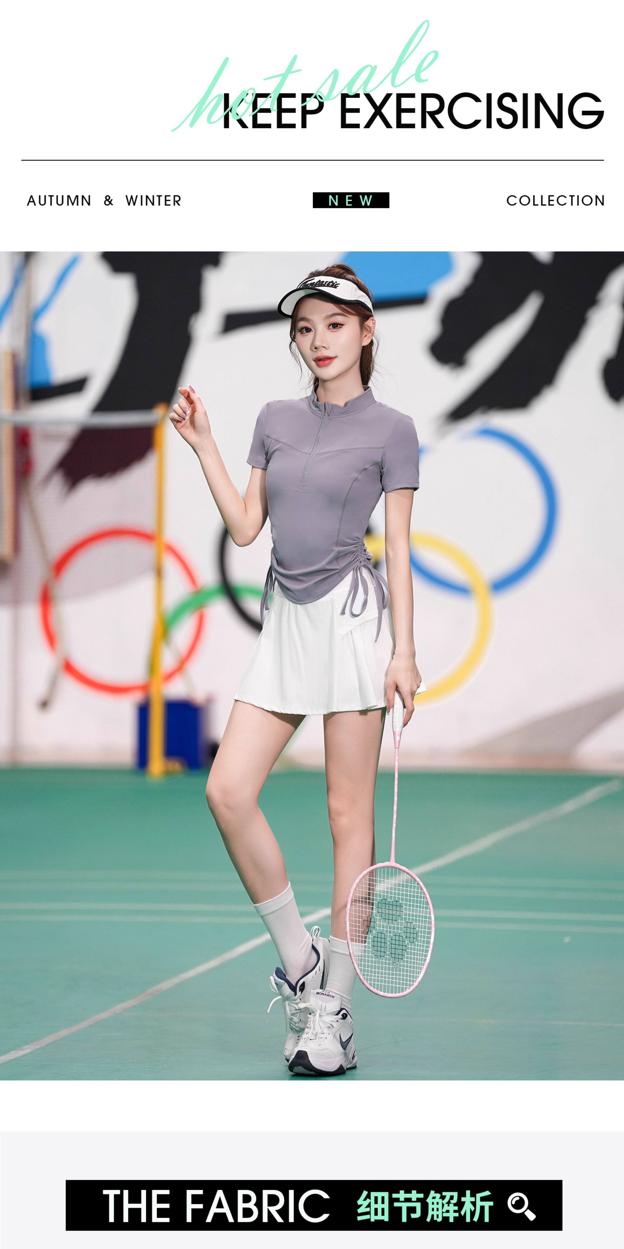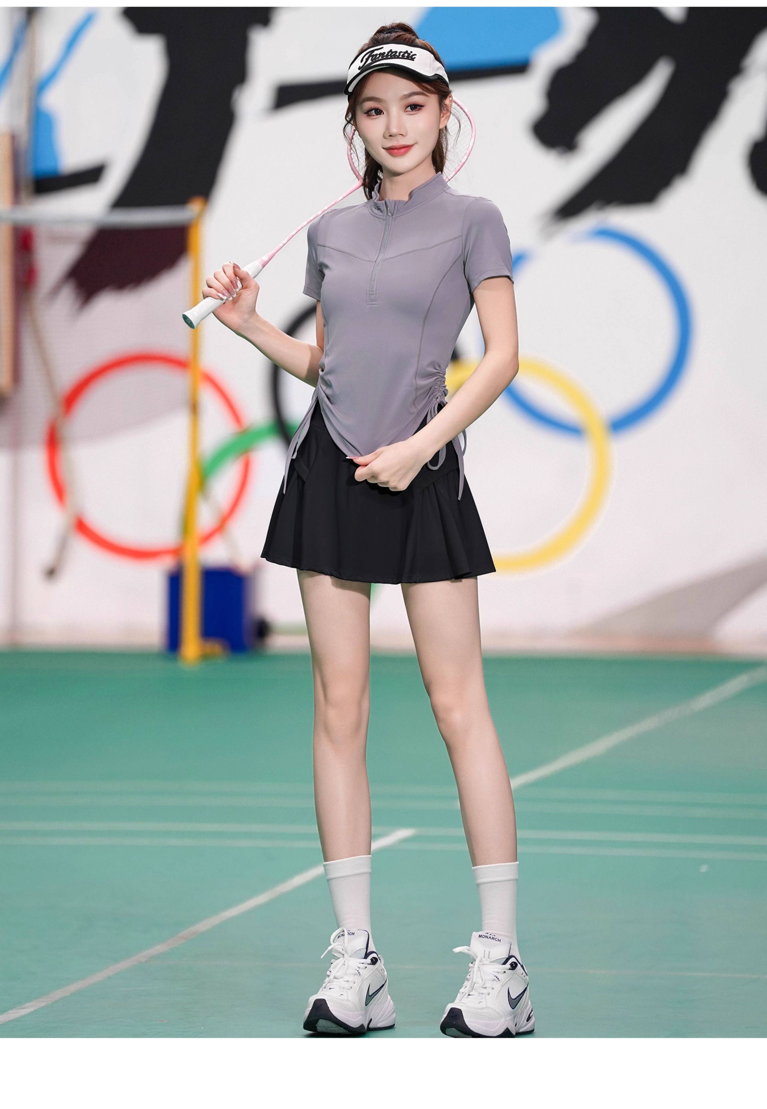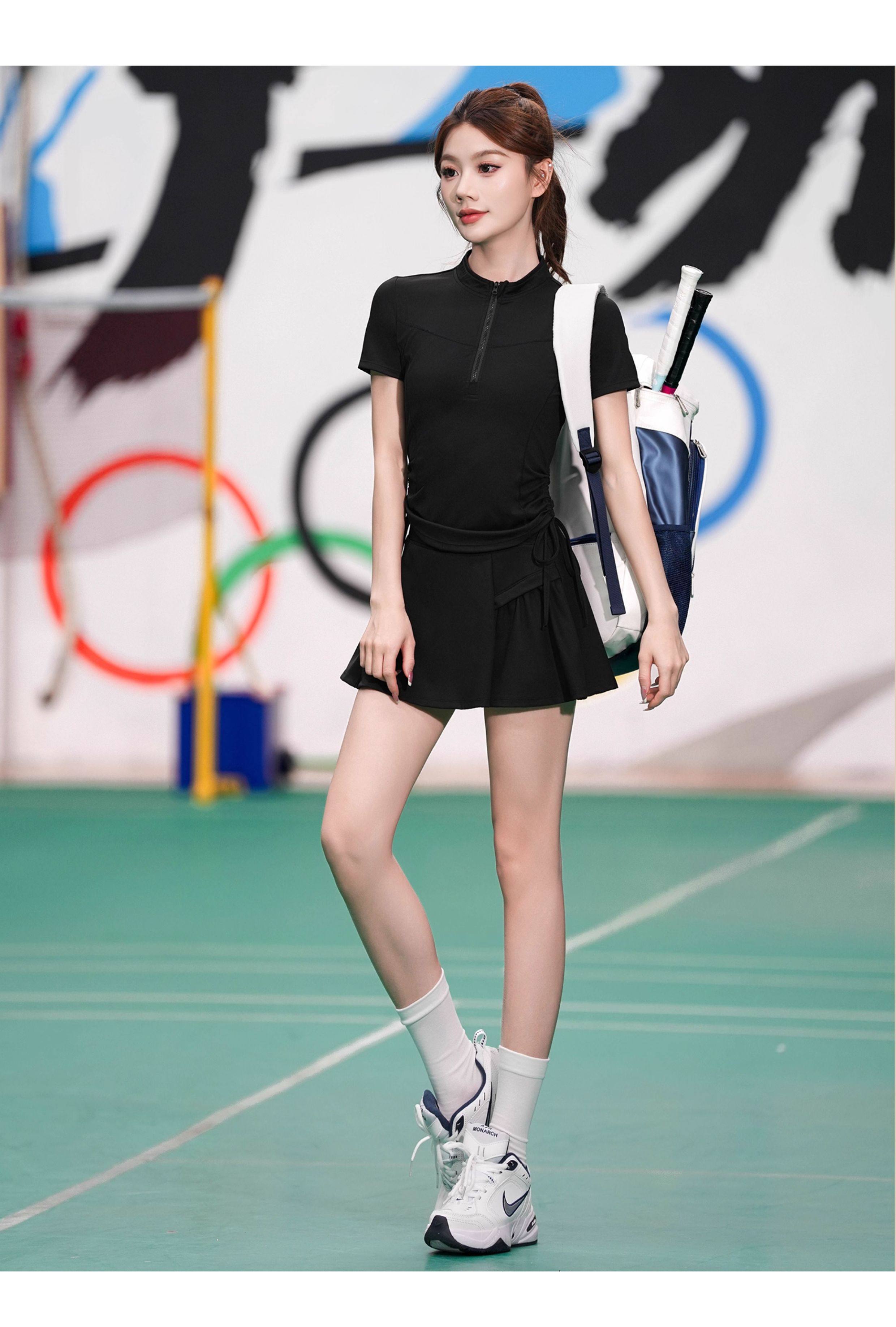 羽毛球速干衣短袖夏季新款少女网球运动服套装高颜值半拉链大赛服
