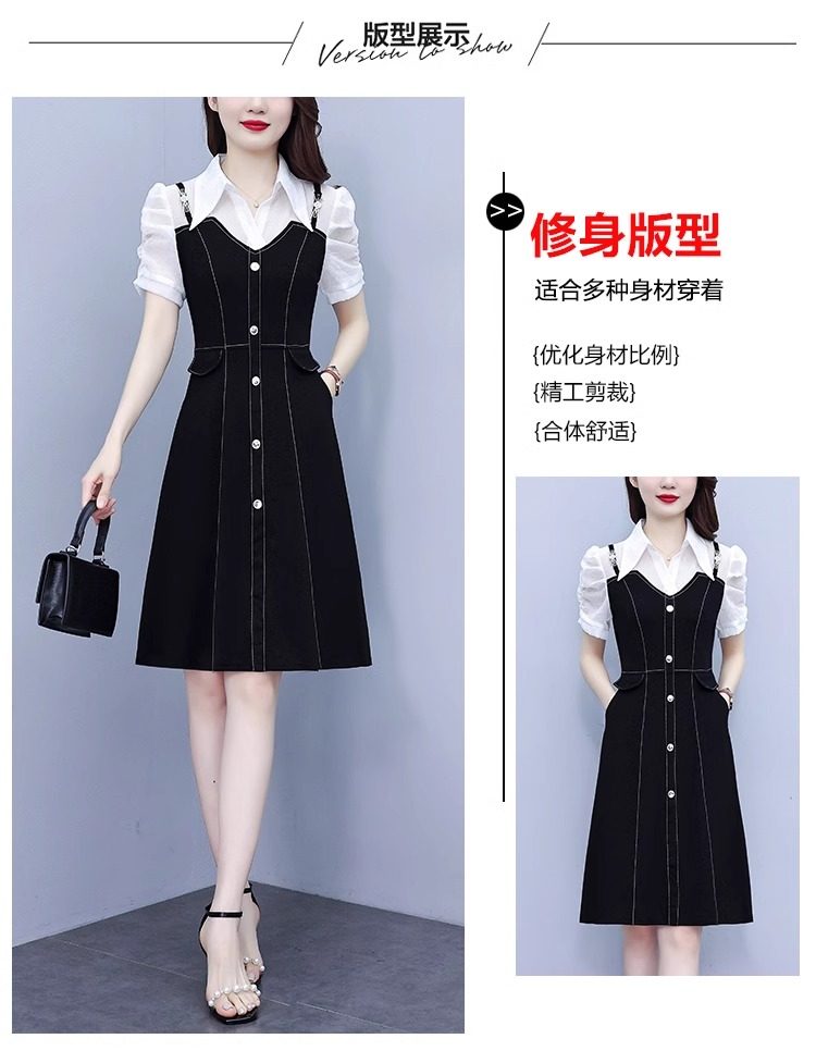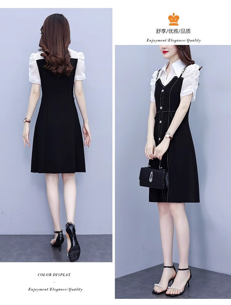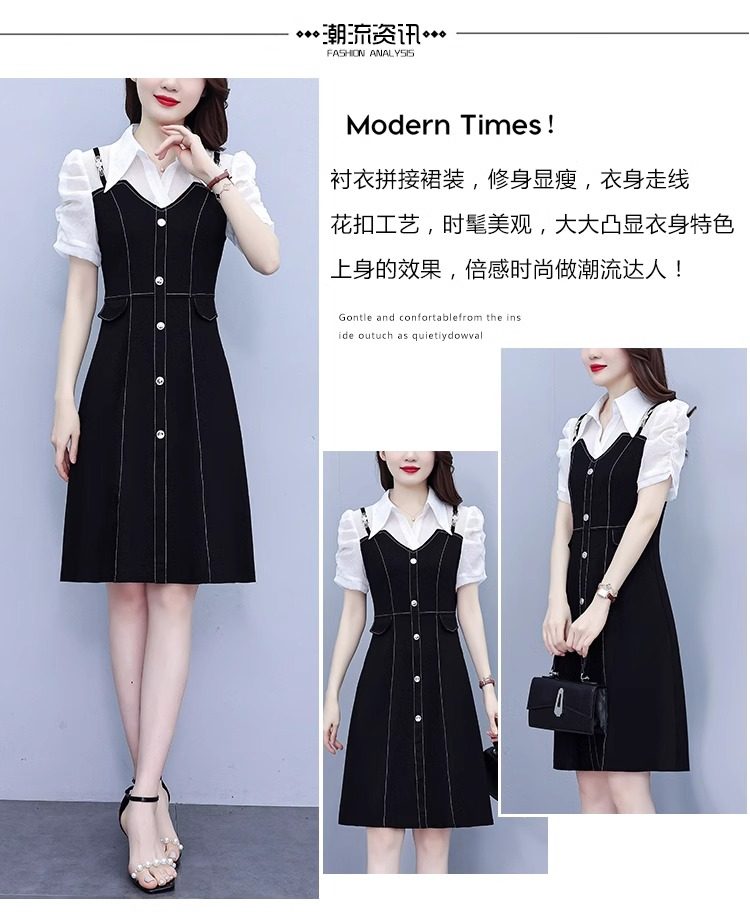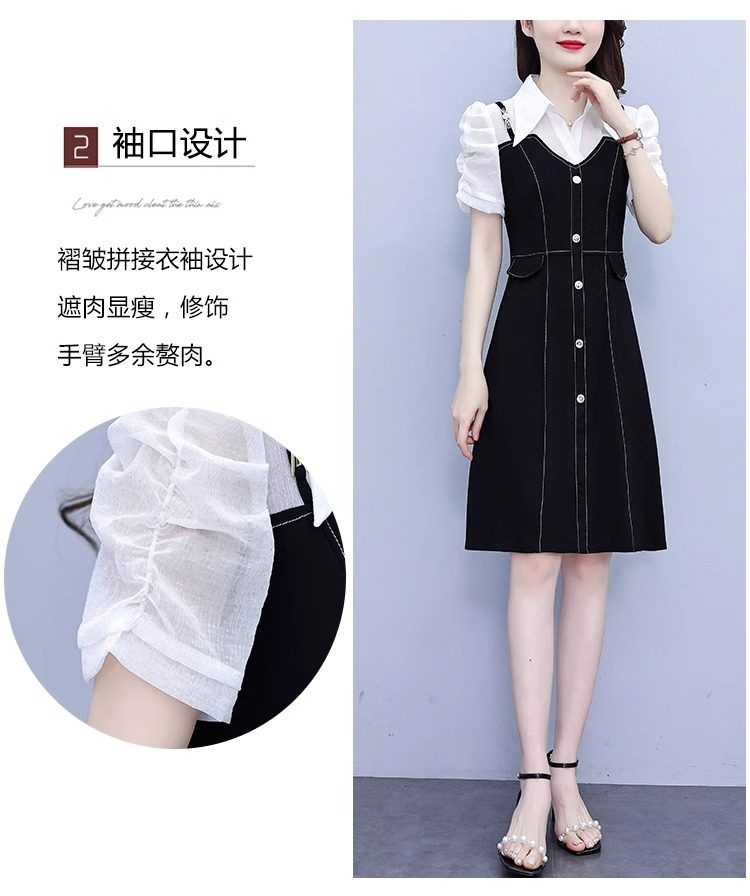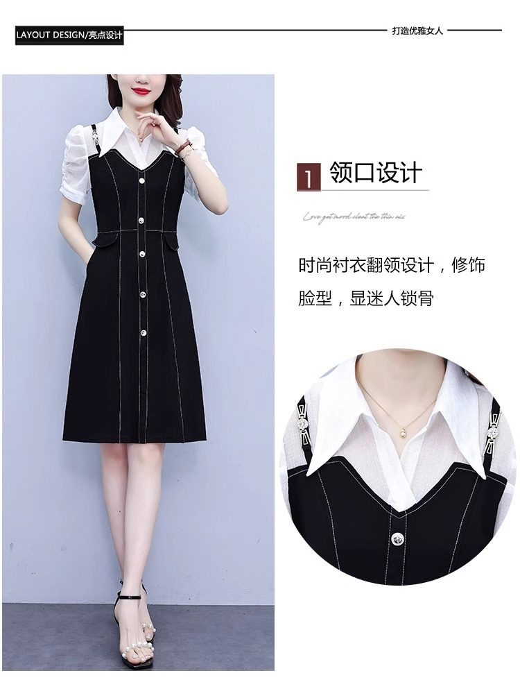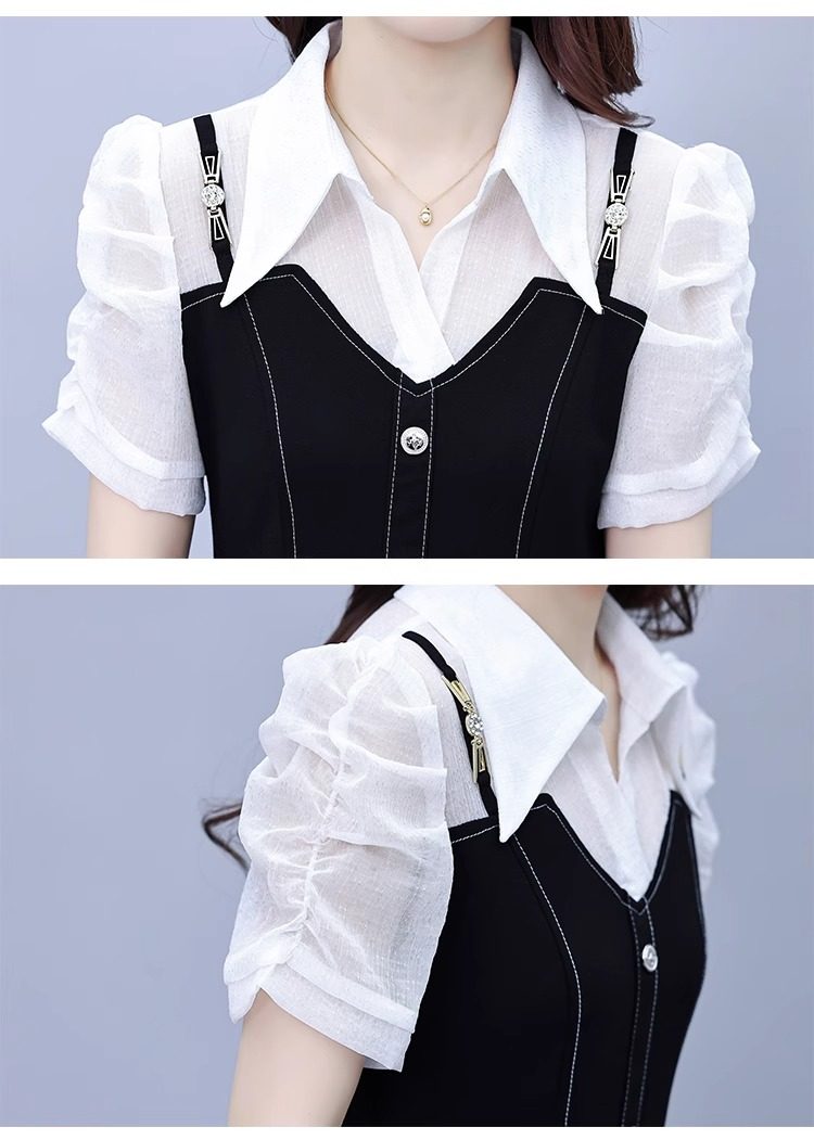 Plus Size Women's Dress 2025 Summer New Design Stylish and Elegant Slimming Fake Two-Piece Short-Sleeved Dress