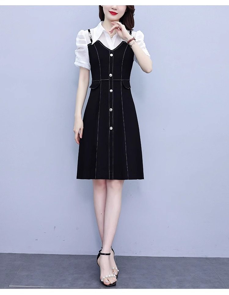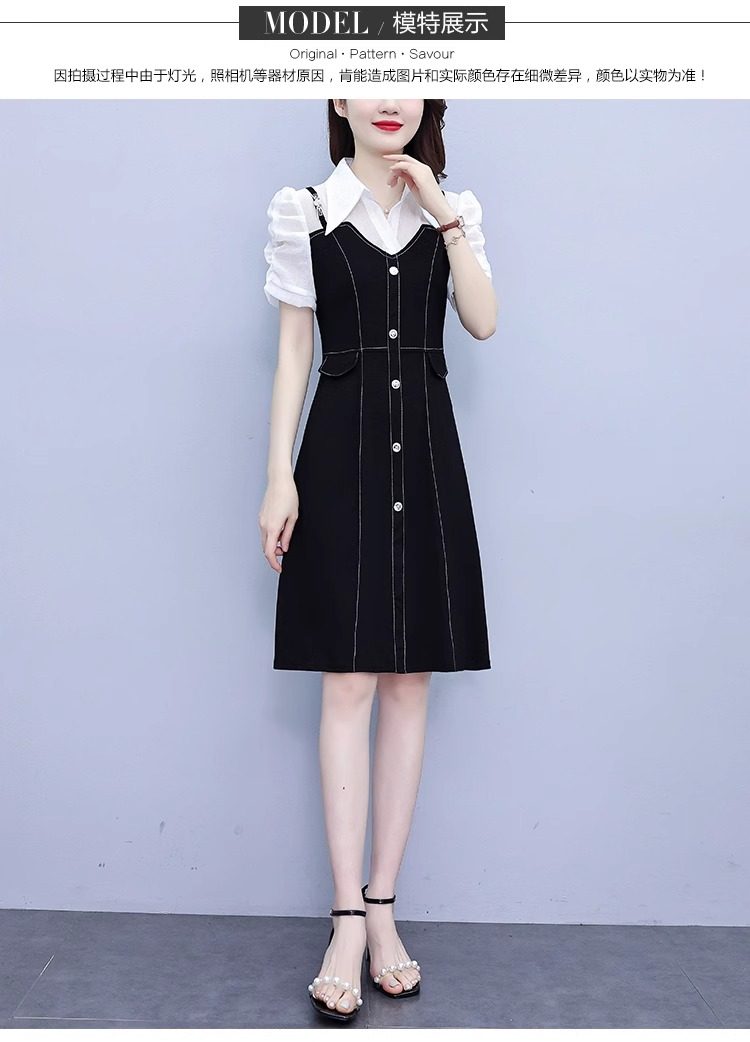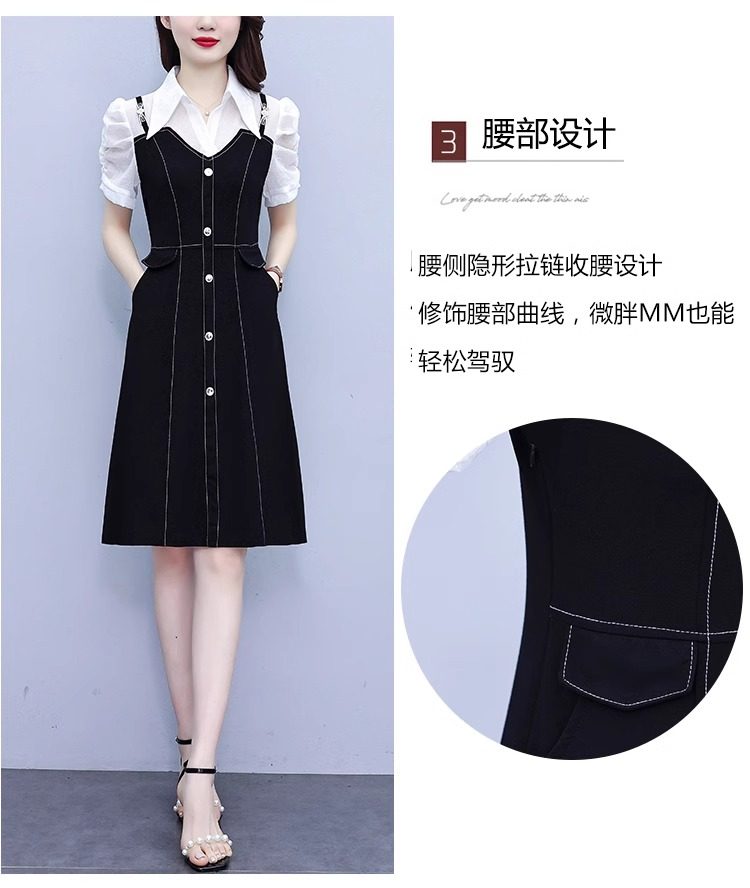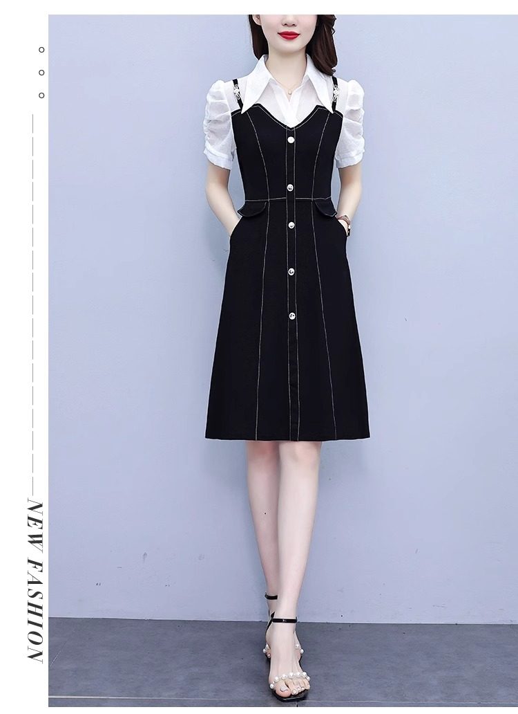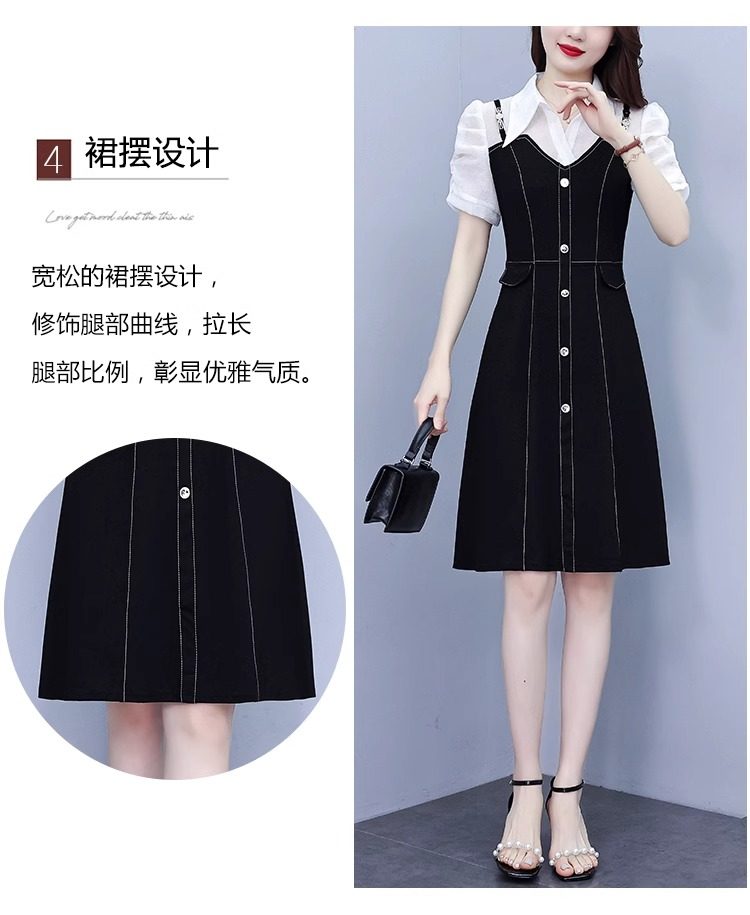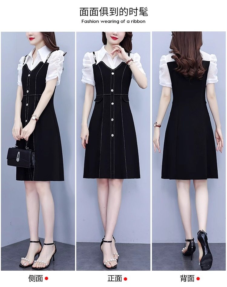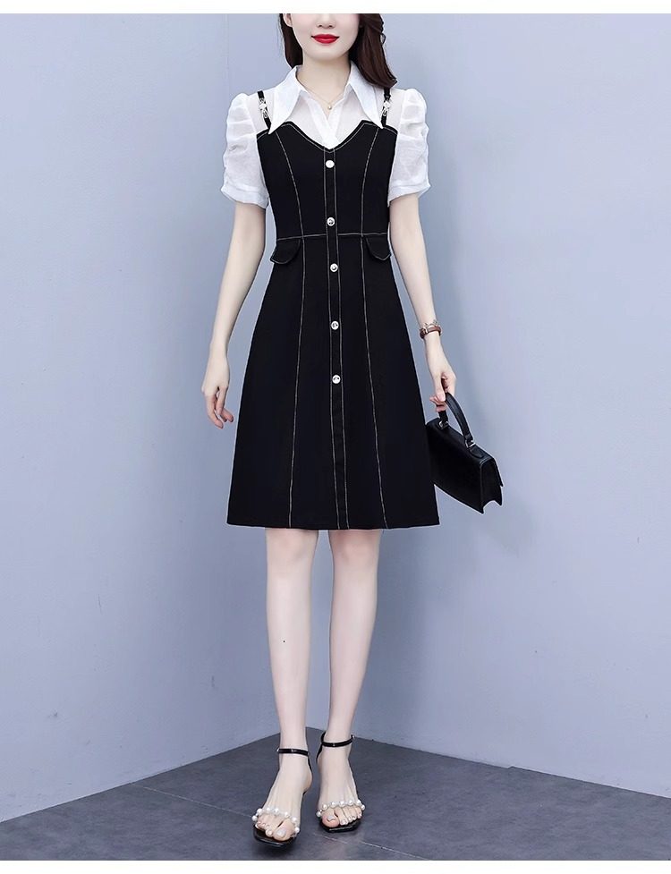 Plus Size Women's Dress 2025 Summer New Design Stylish and Elegant Slimming Fake Two-Piece Short-Sleeved Dress