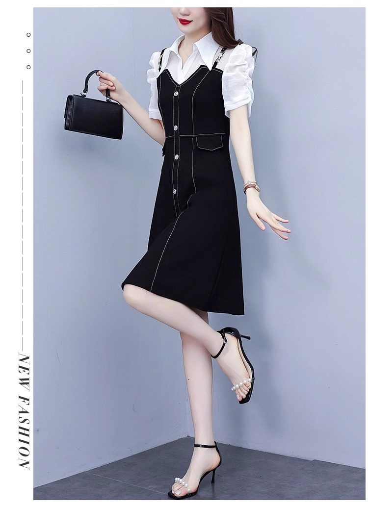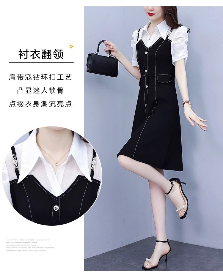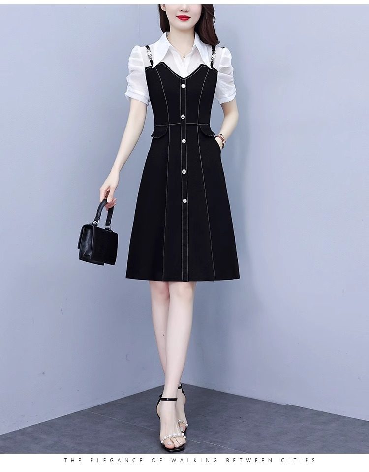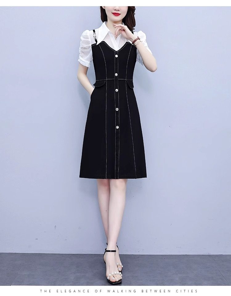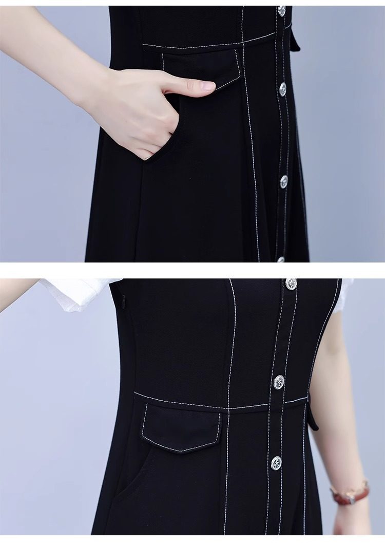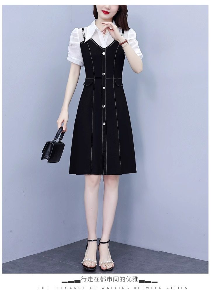 Plus Size Women's Dress 2025 Summer New Design Stylish and Elegant Slimming Fake Two-Piece Short-Sleeved Dress