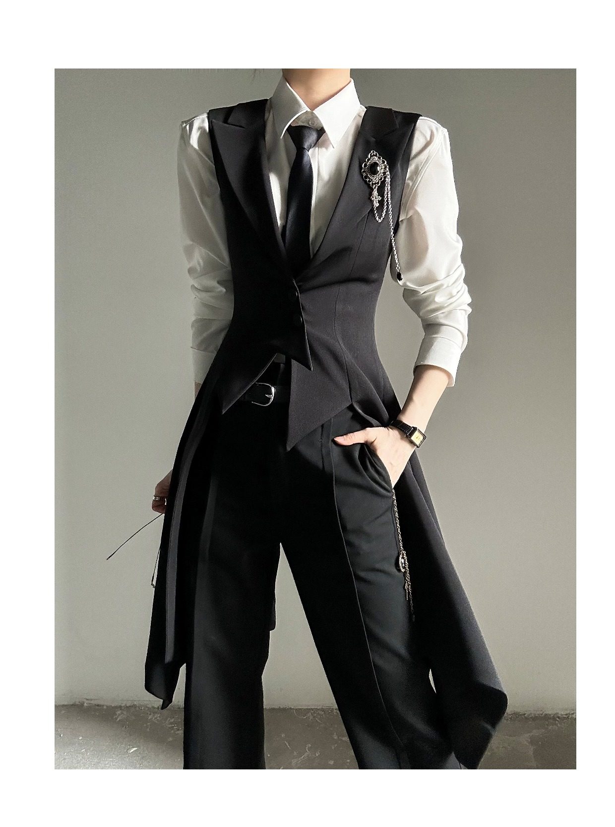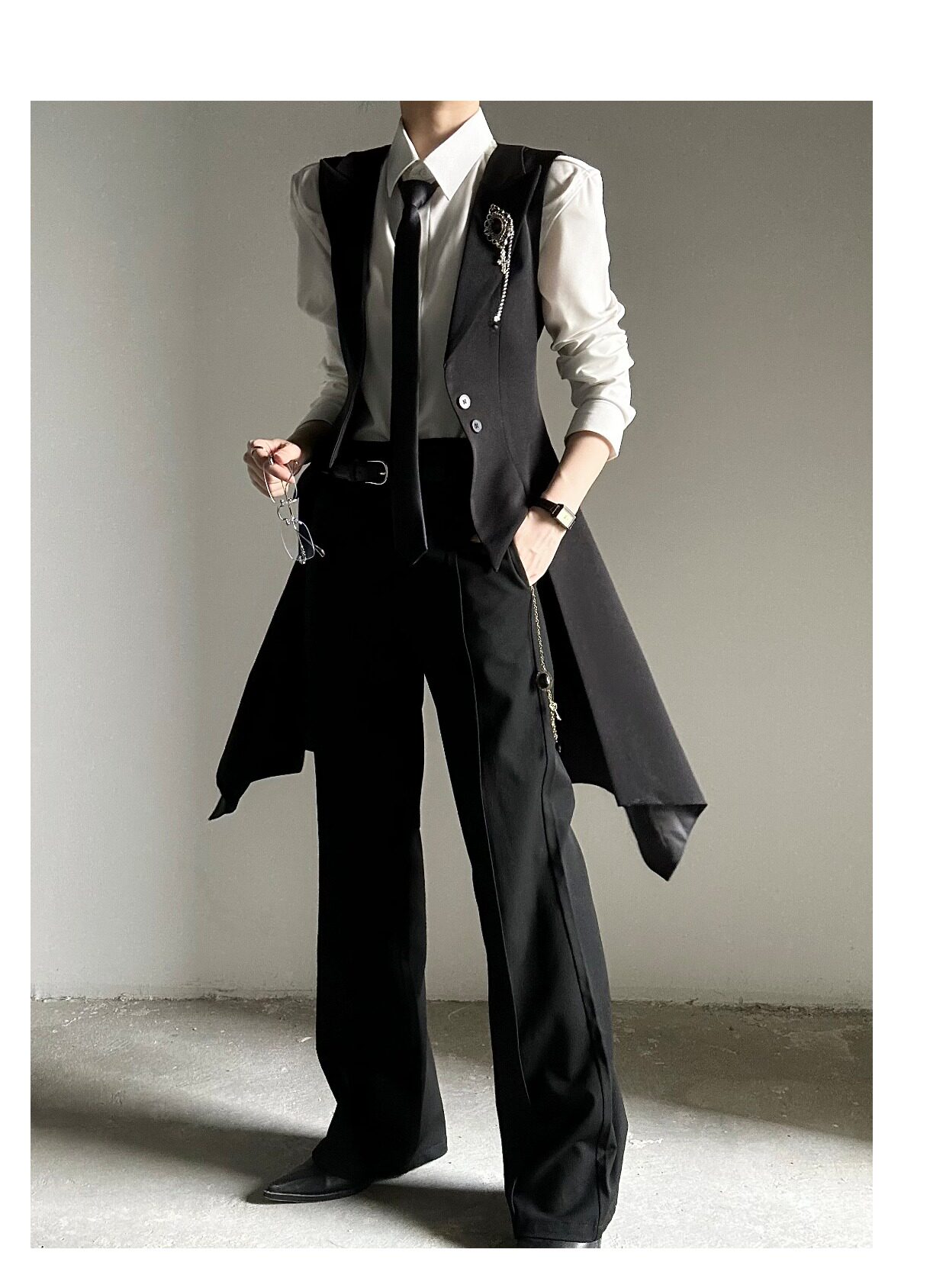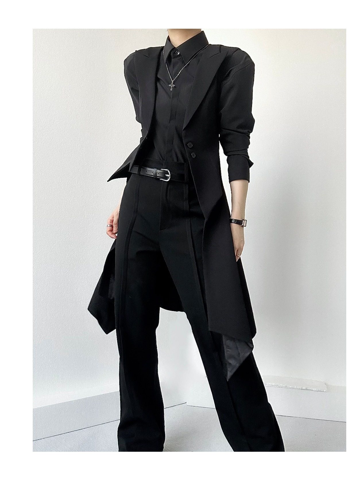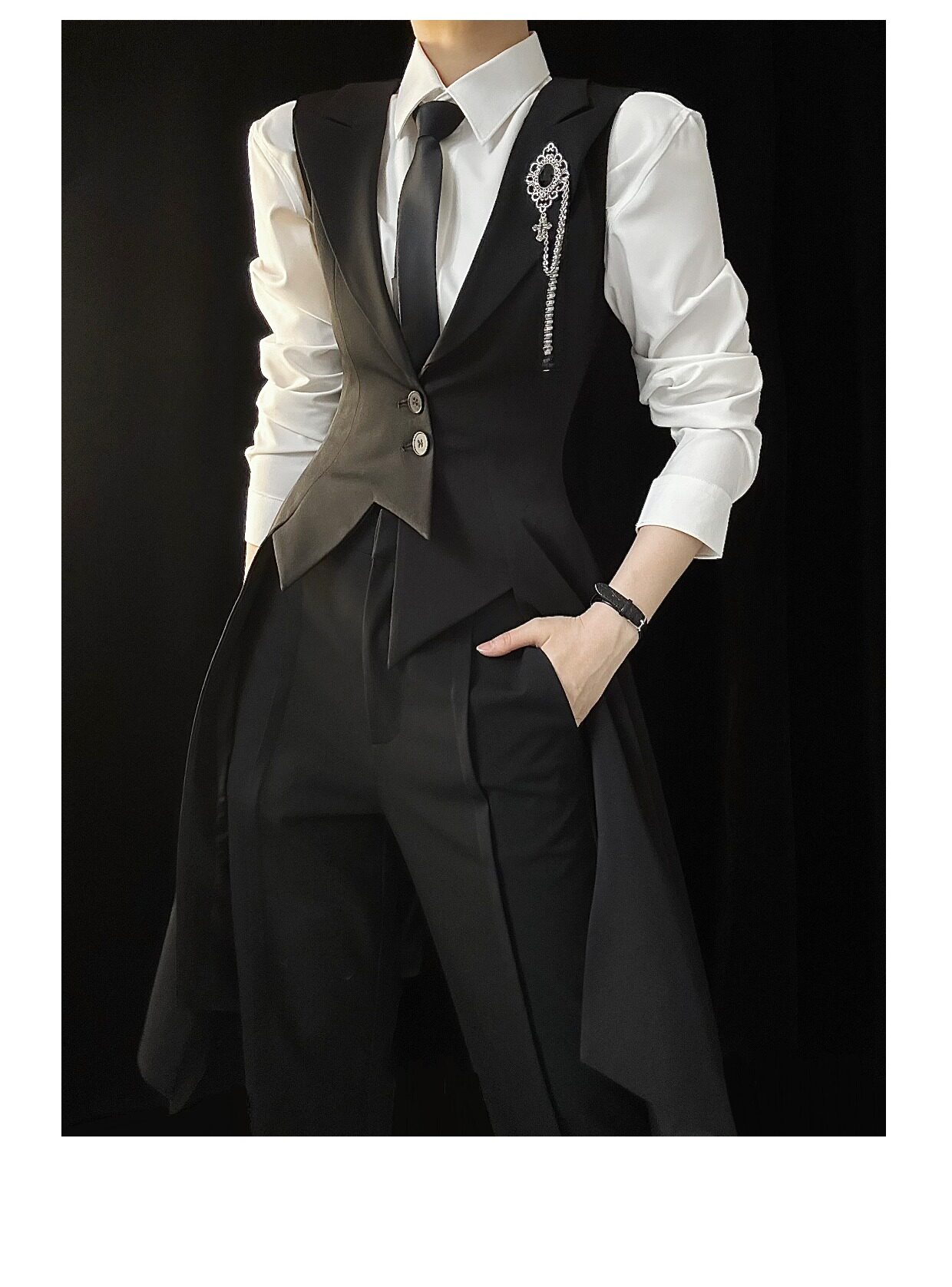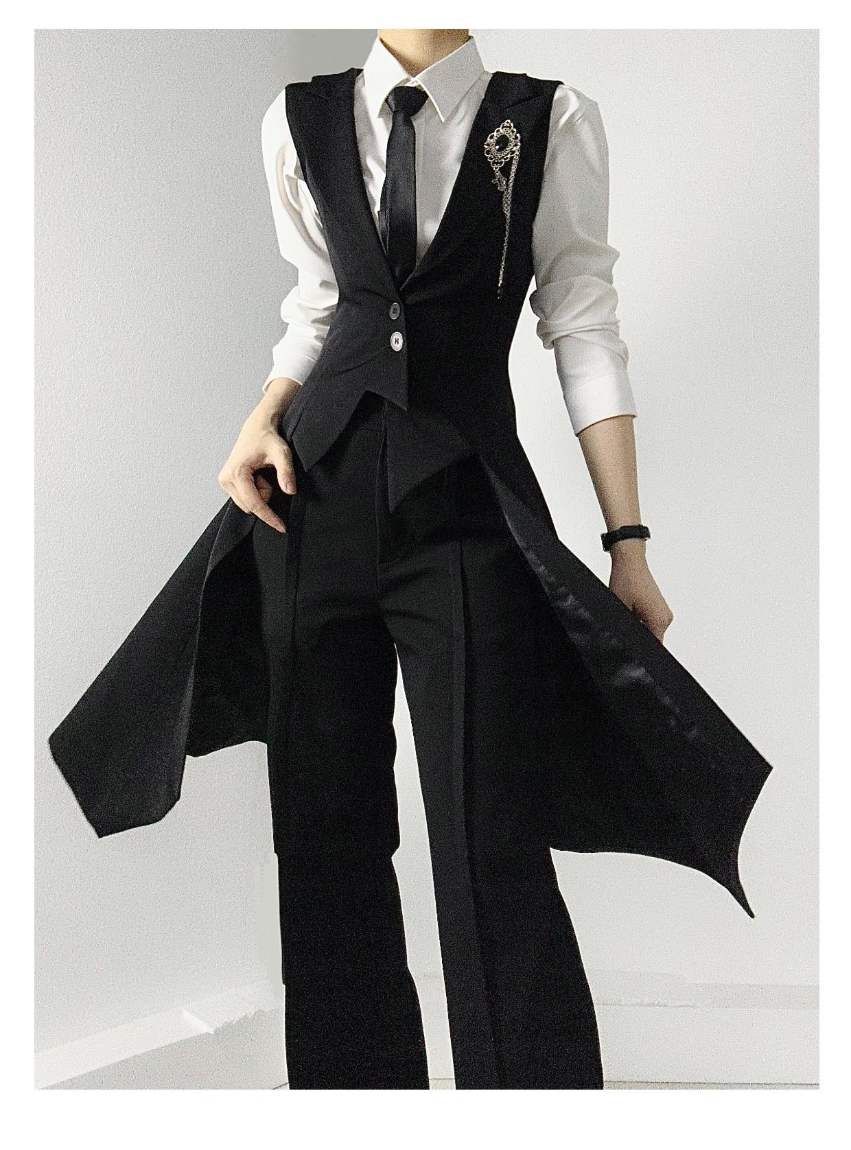 ASAE costume noir gilet long taille mince col à revers queue d'hirondelle costume gilet uniforme