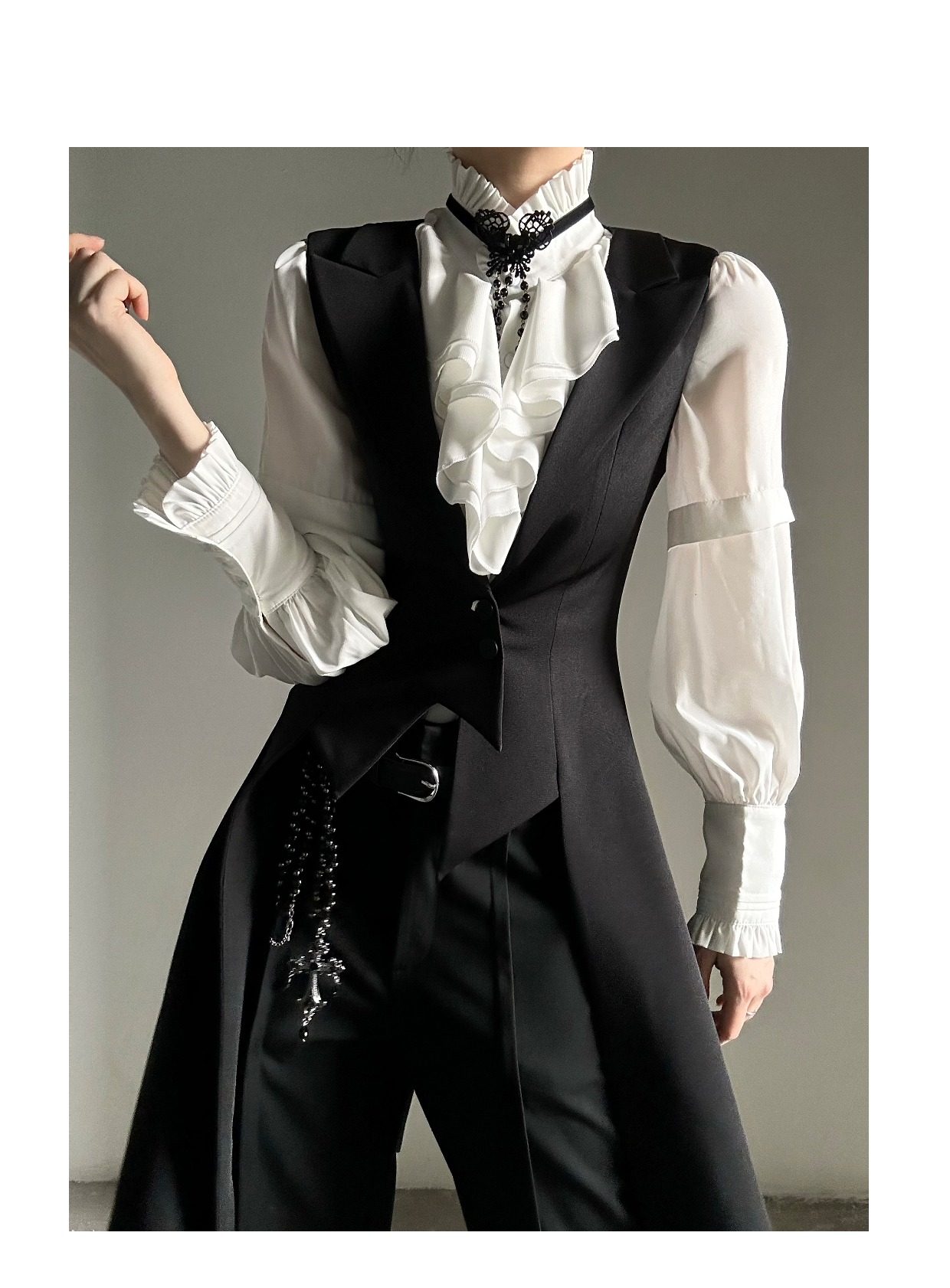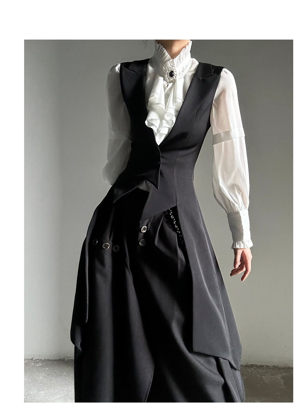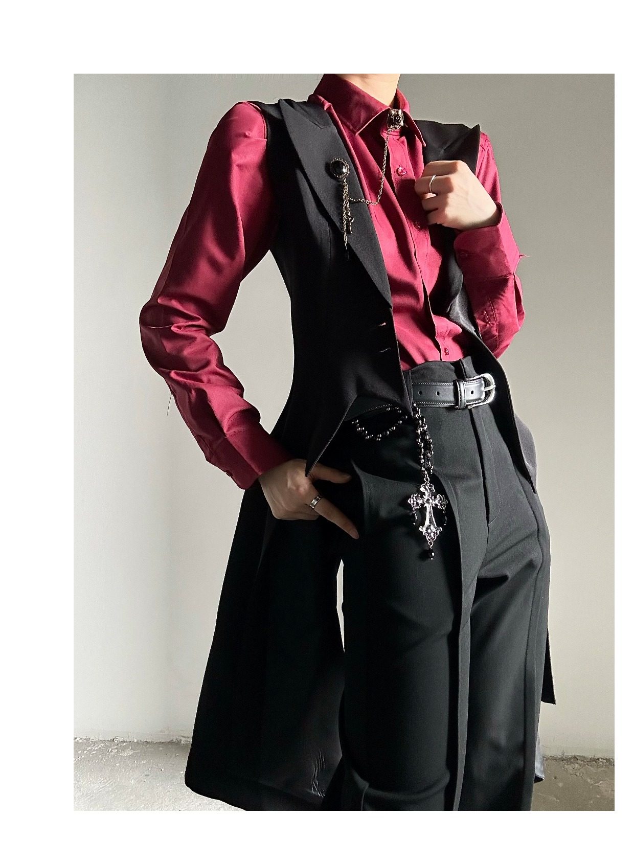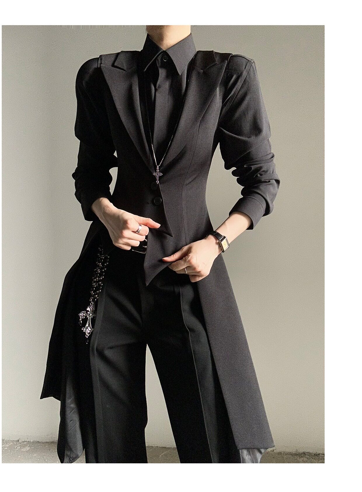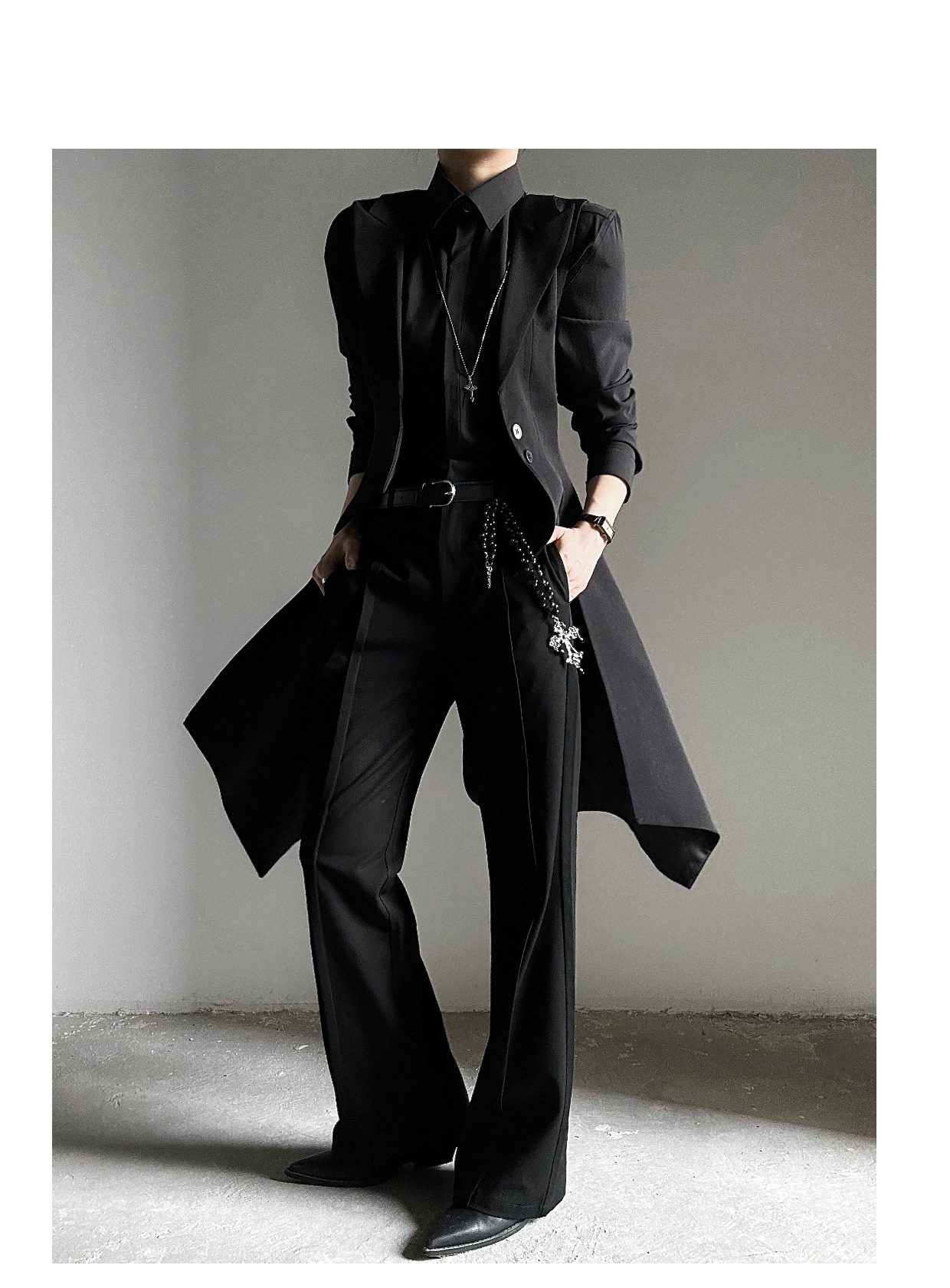 ASAE costume noir gilet long taille mince col à revers queue d'hirondelle costume gilet uniforme