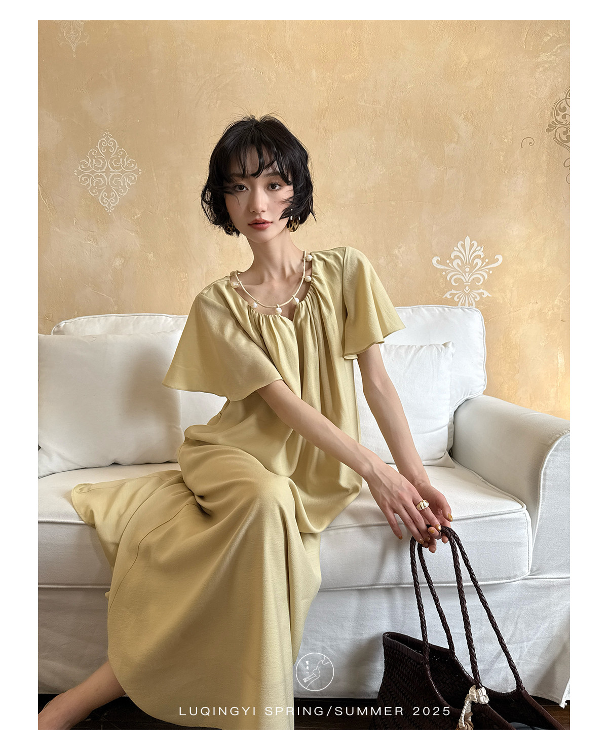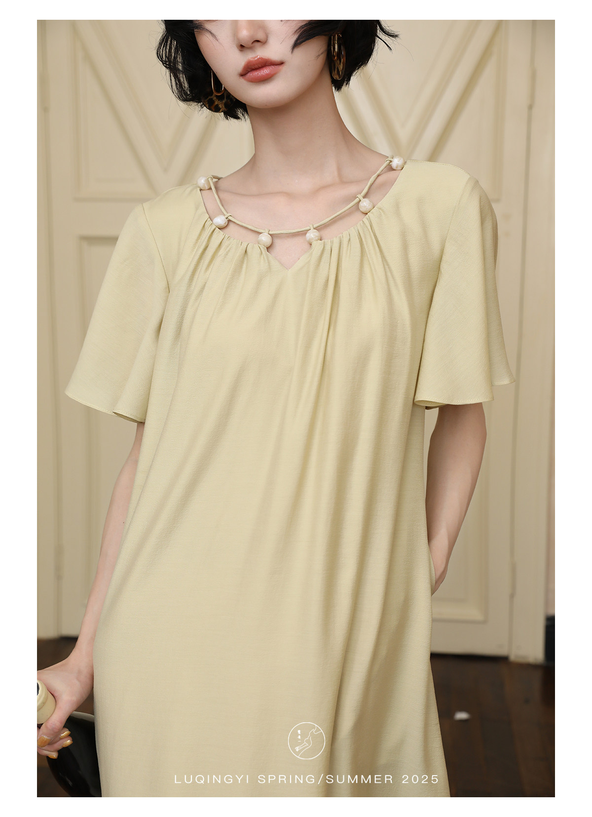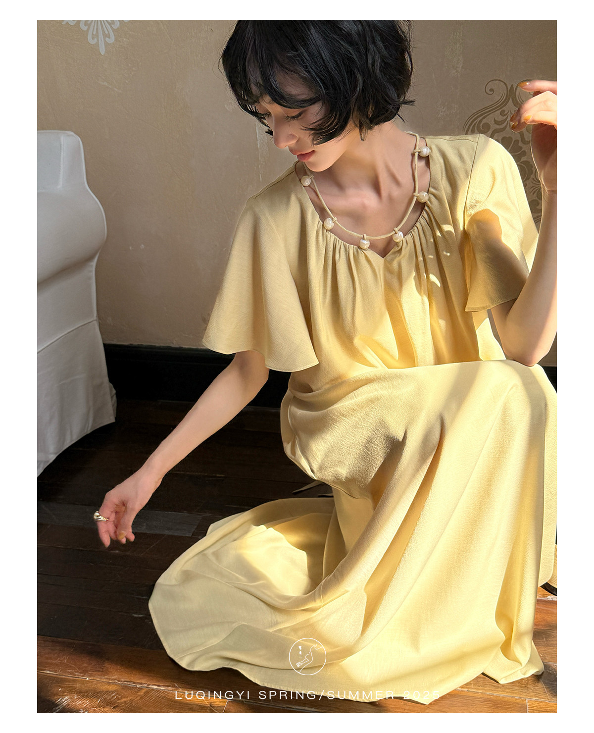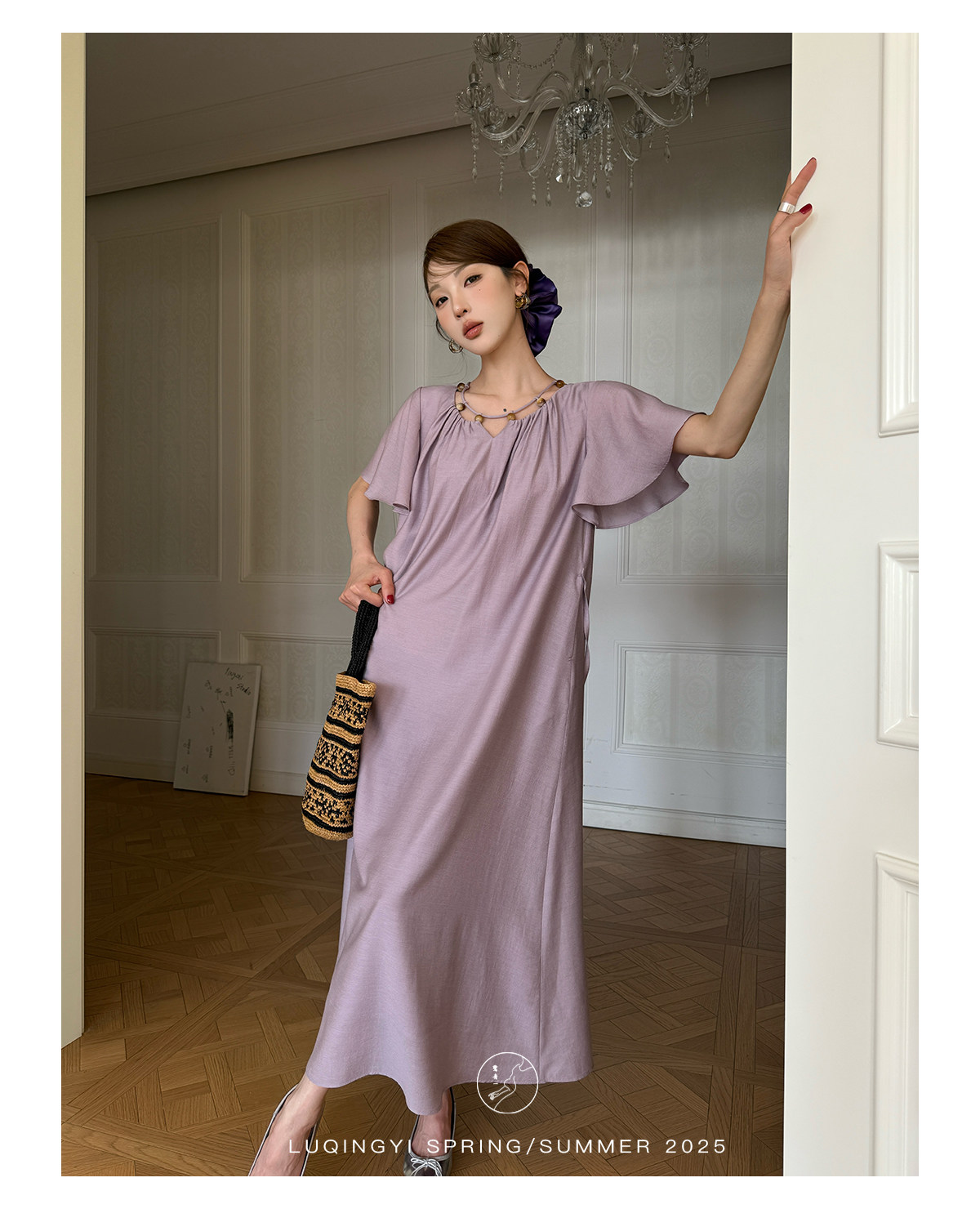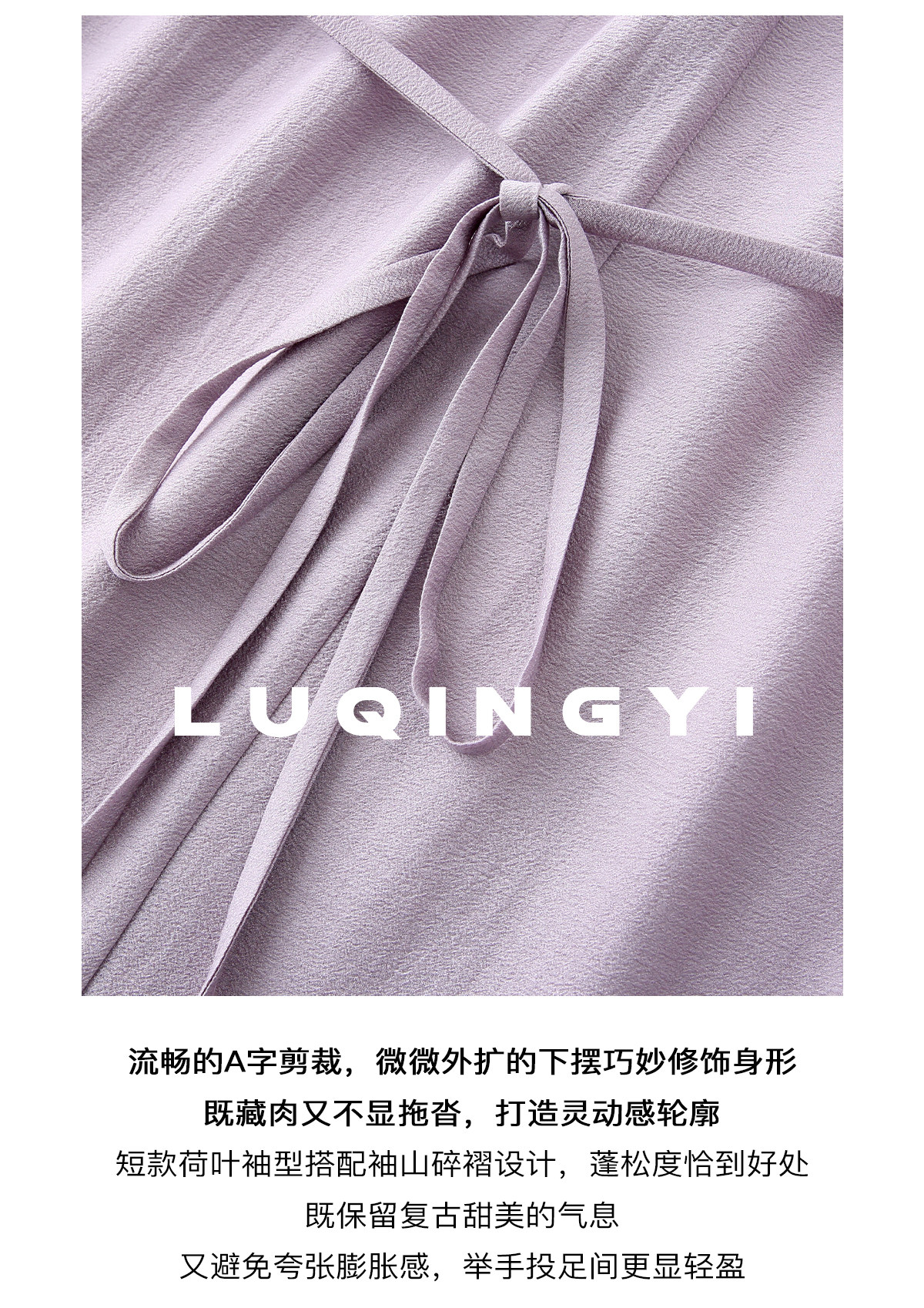 Lu Qingyi's Original [Rosary] French-Style Exquisite Acetate Dress, Summer Design with Ruffle Sleeves, Loose A-Line Skirt