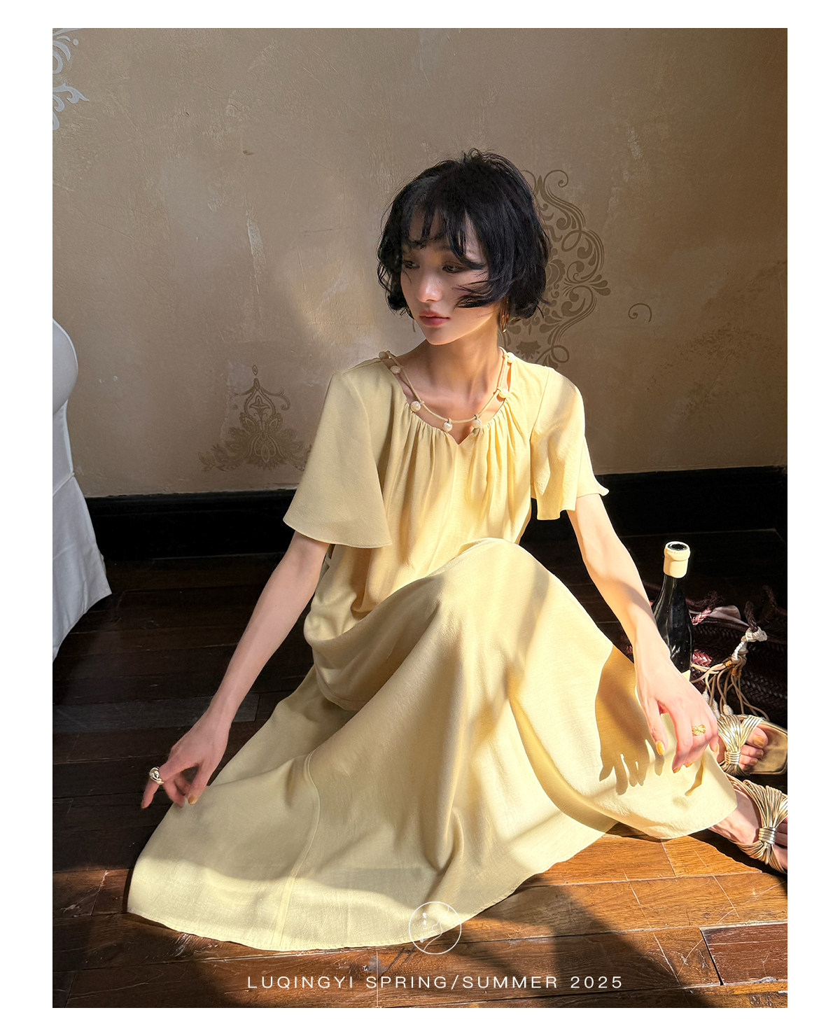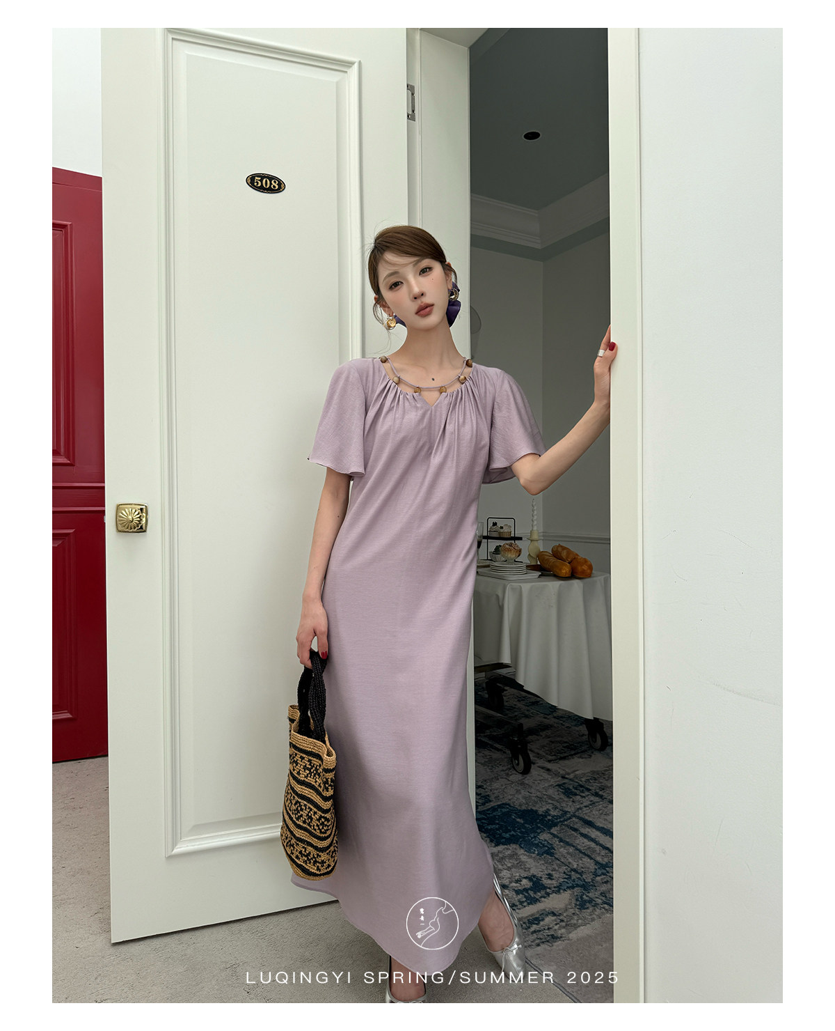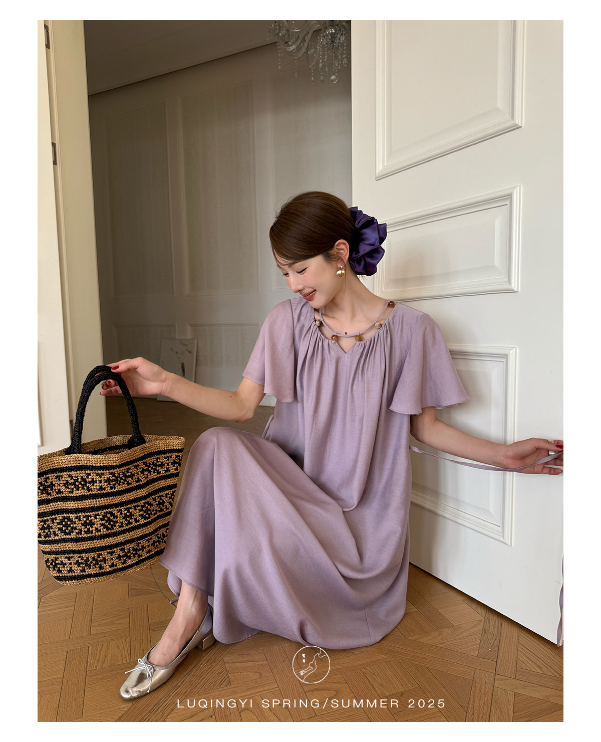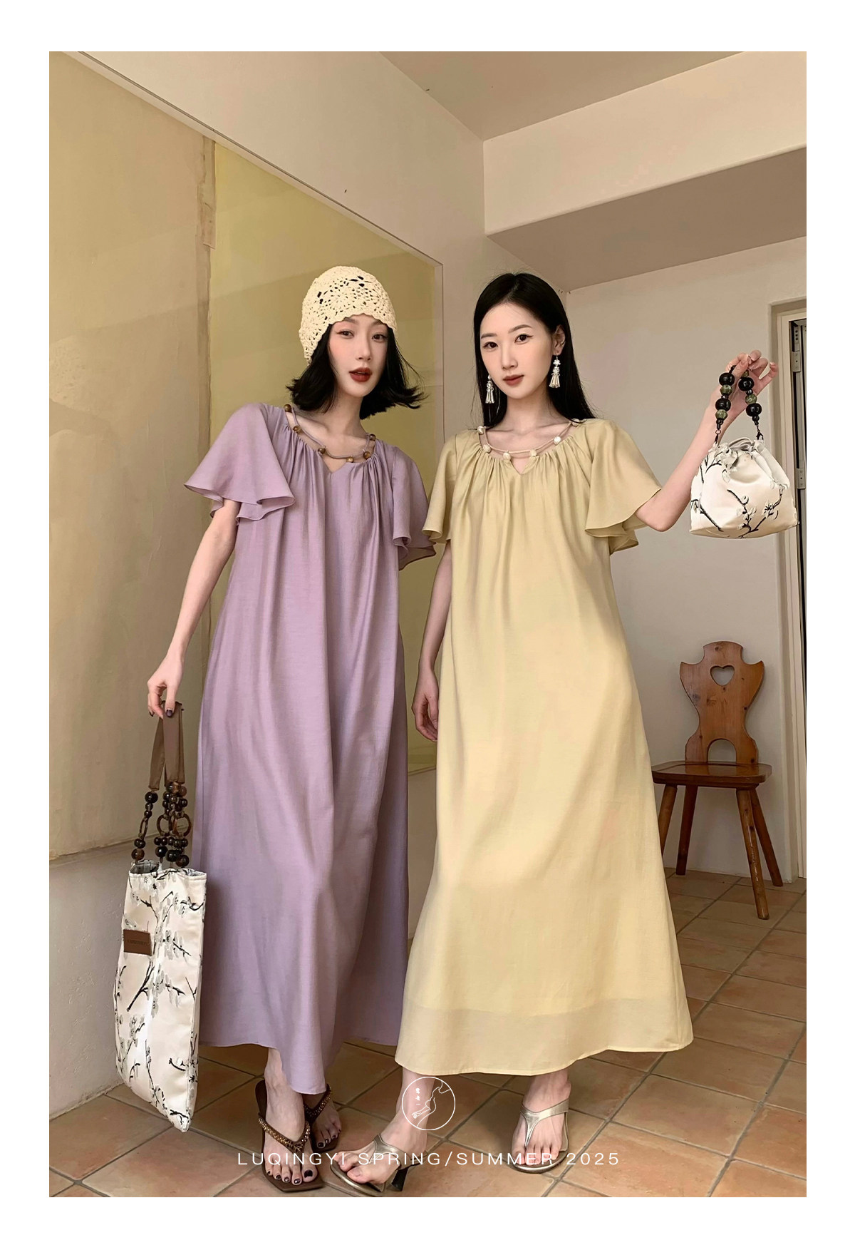 Lu Qingyi's Original [Rosary] French-Style Exquisite Acetate Dress, Summer Design with Ruffle Sleeves, Loose A-Line Skirt