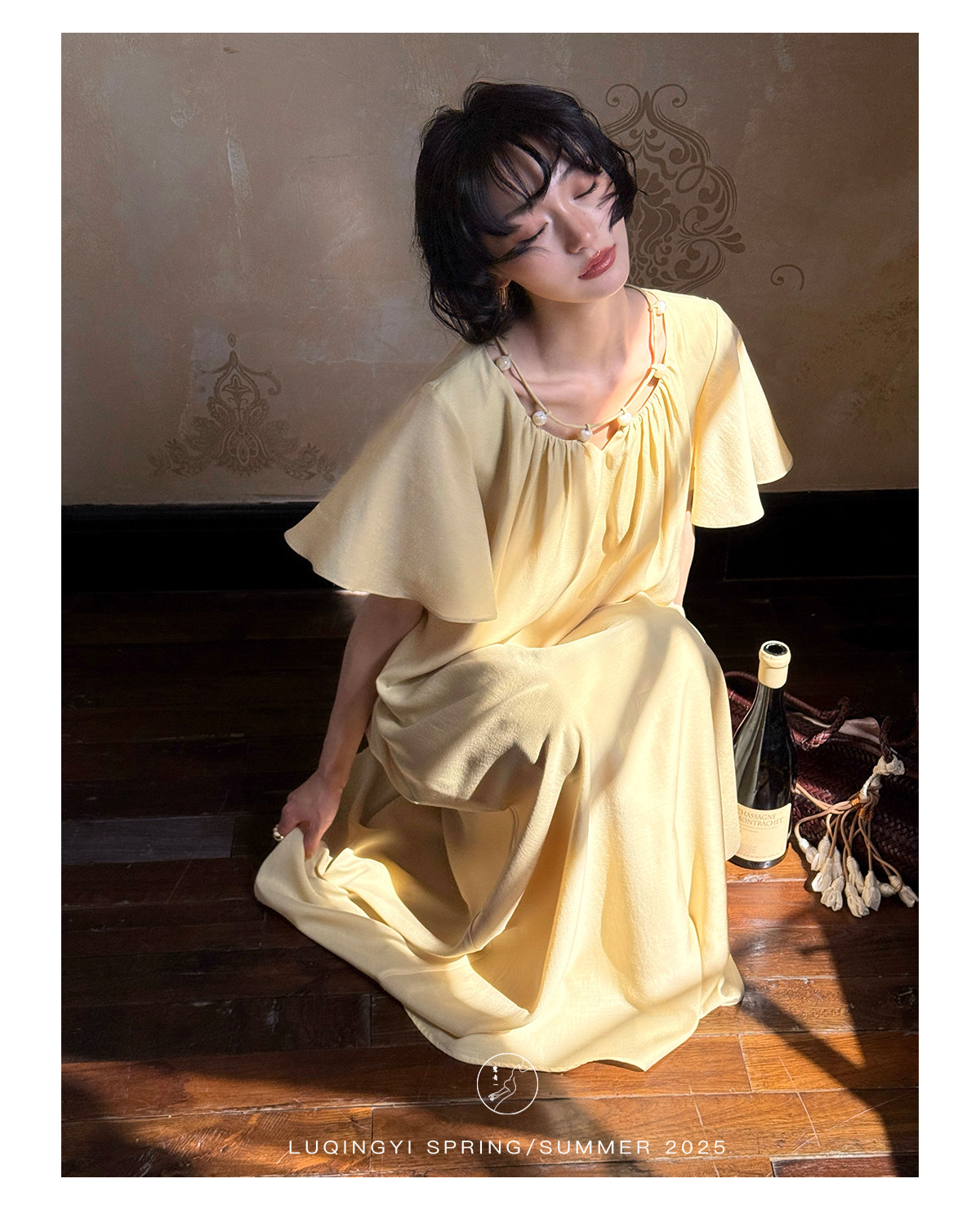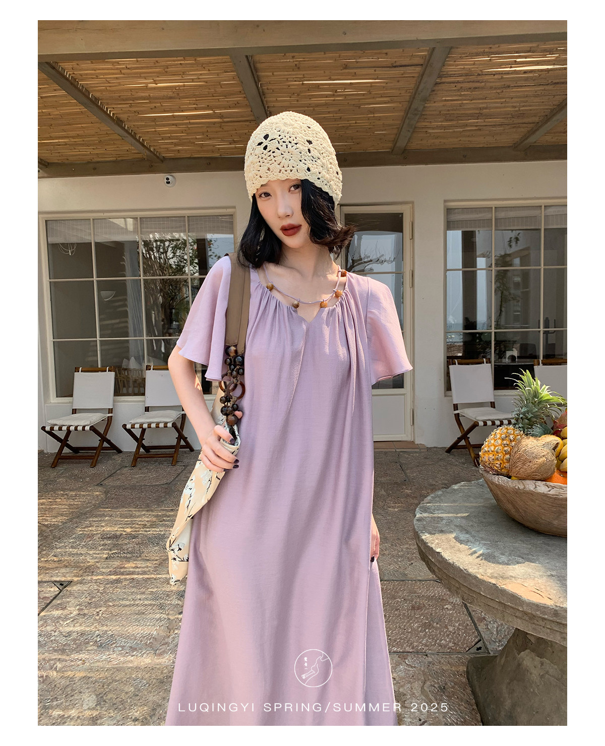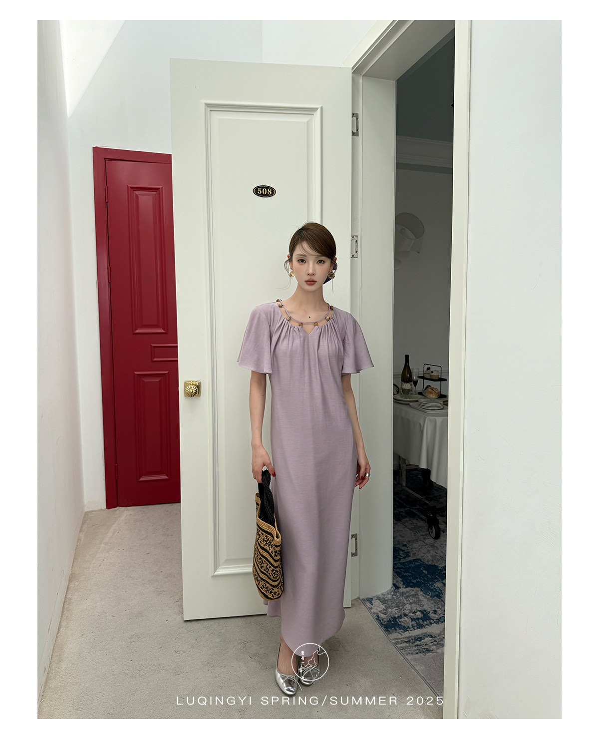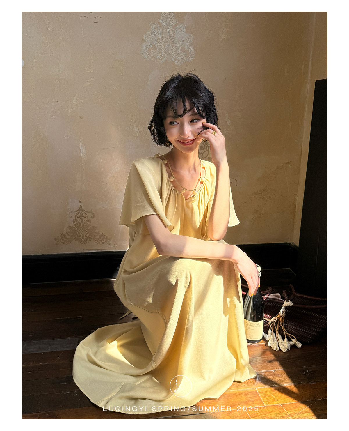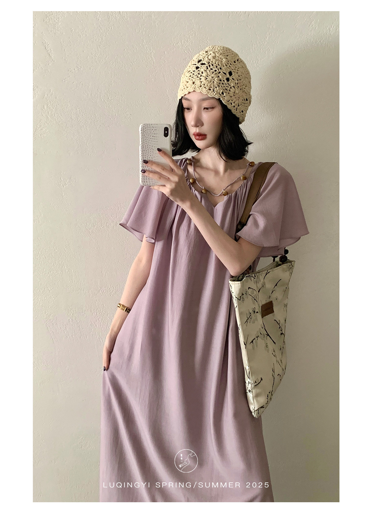 Lu Qingyi's Original [Rosary] French-Style Exquisite Acetate Dress, Summer Design with Ruffle Sleeves, Loose A-Line Skirt